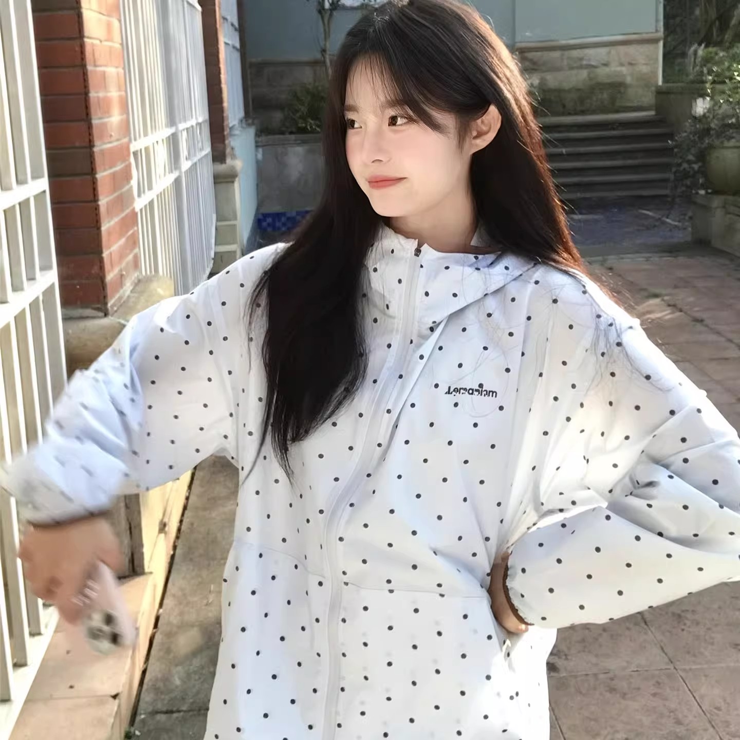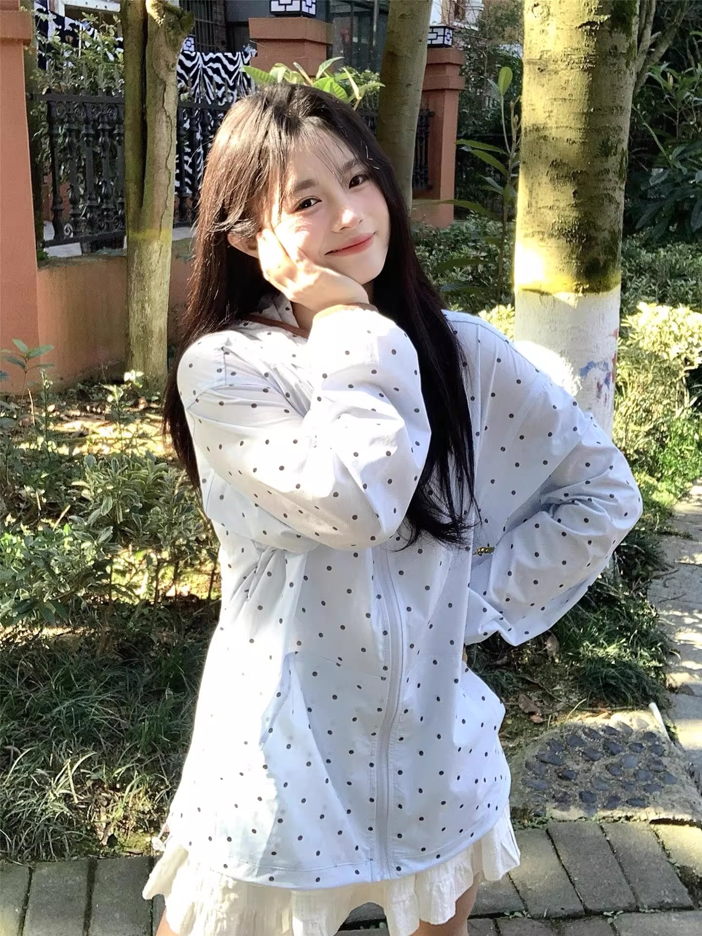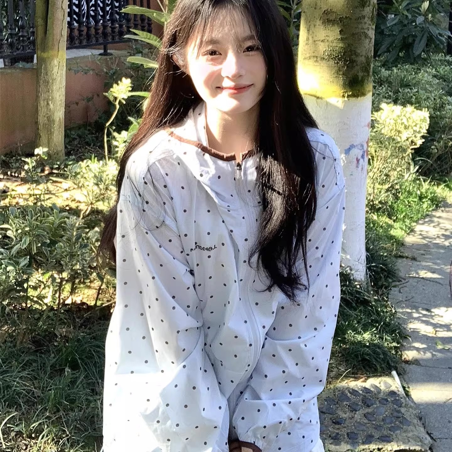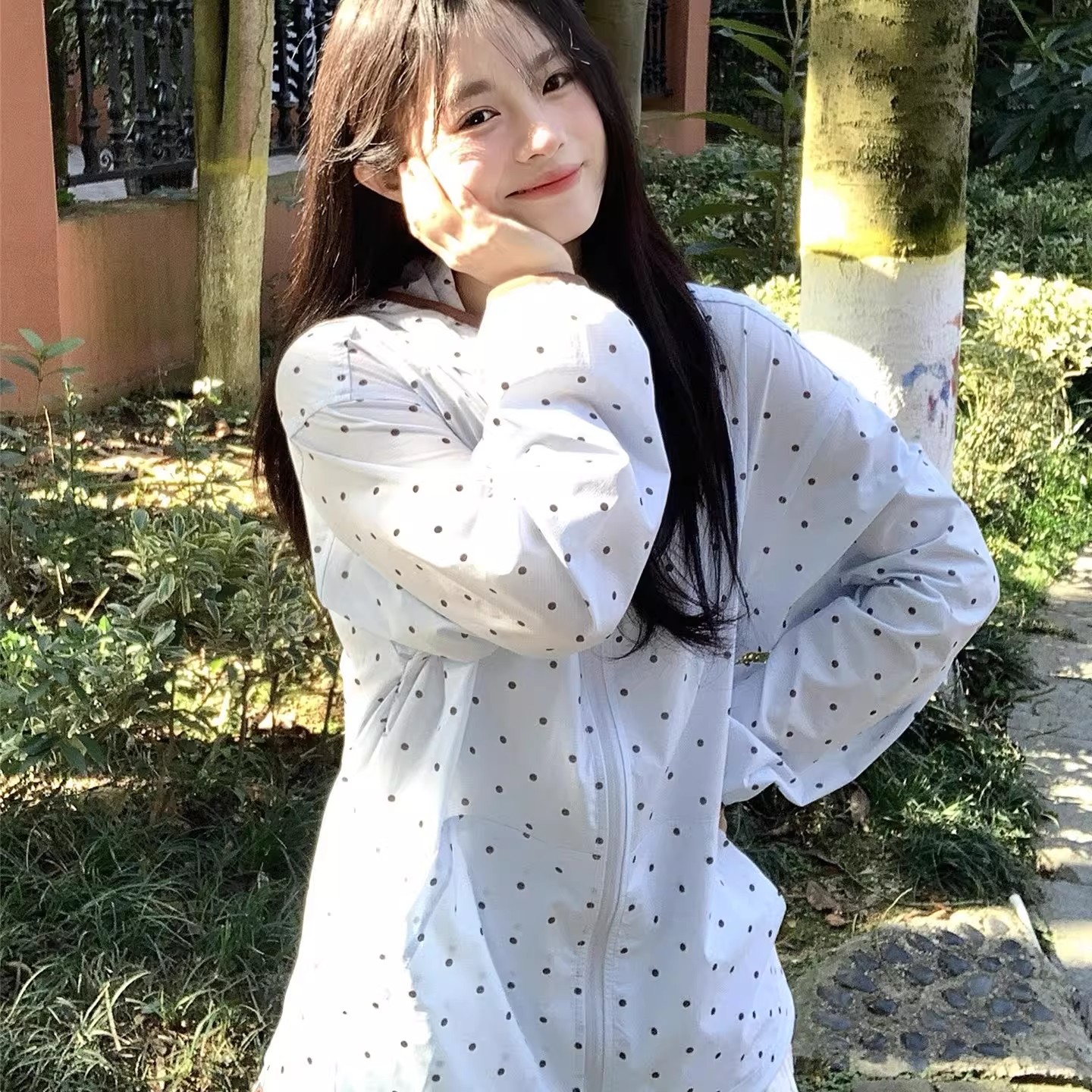 한 부서 캐주얼 도트 무늬 자외선 차단 의류 여성 봄 여름 2026 새로운 운동 오픈 가디건 얇은 코트 배색 패치워크 자외선 차단 복