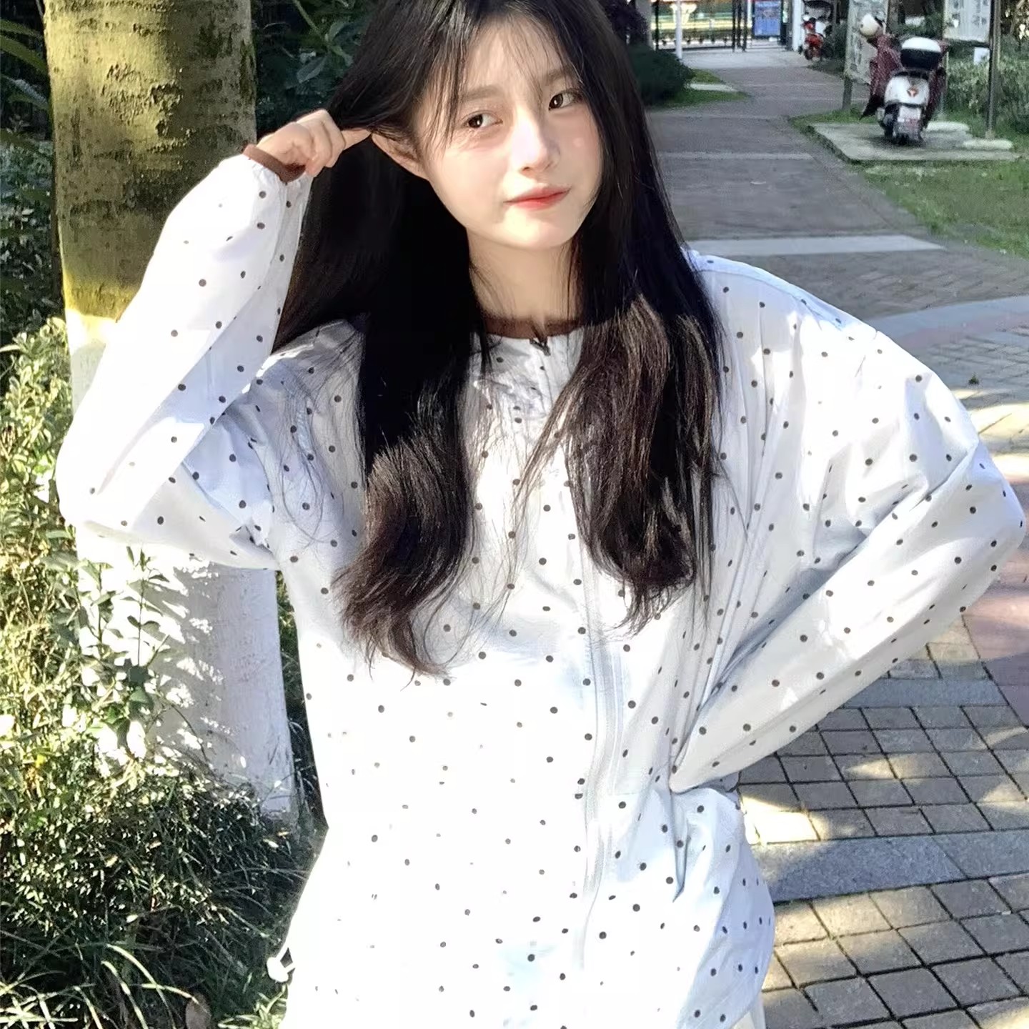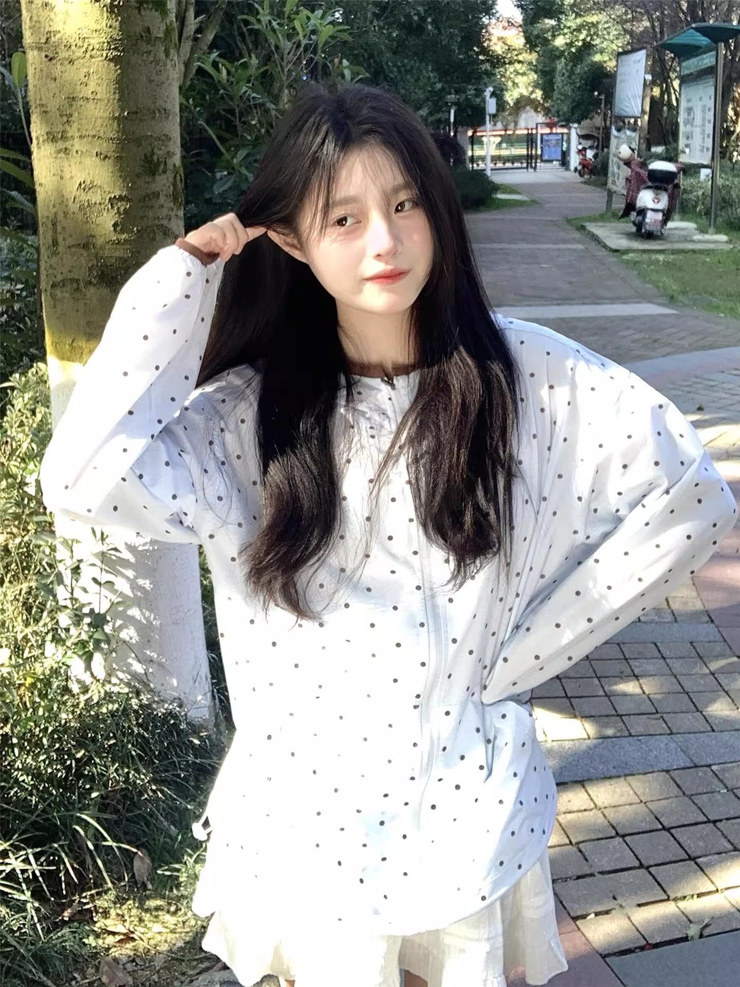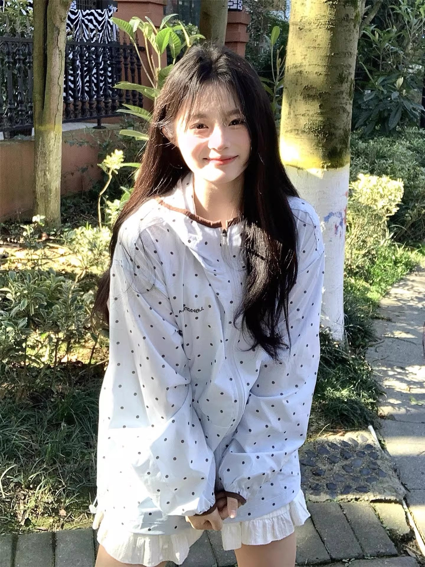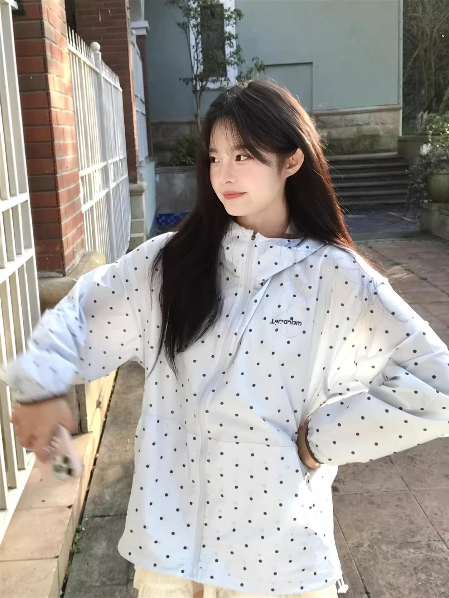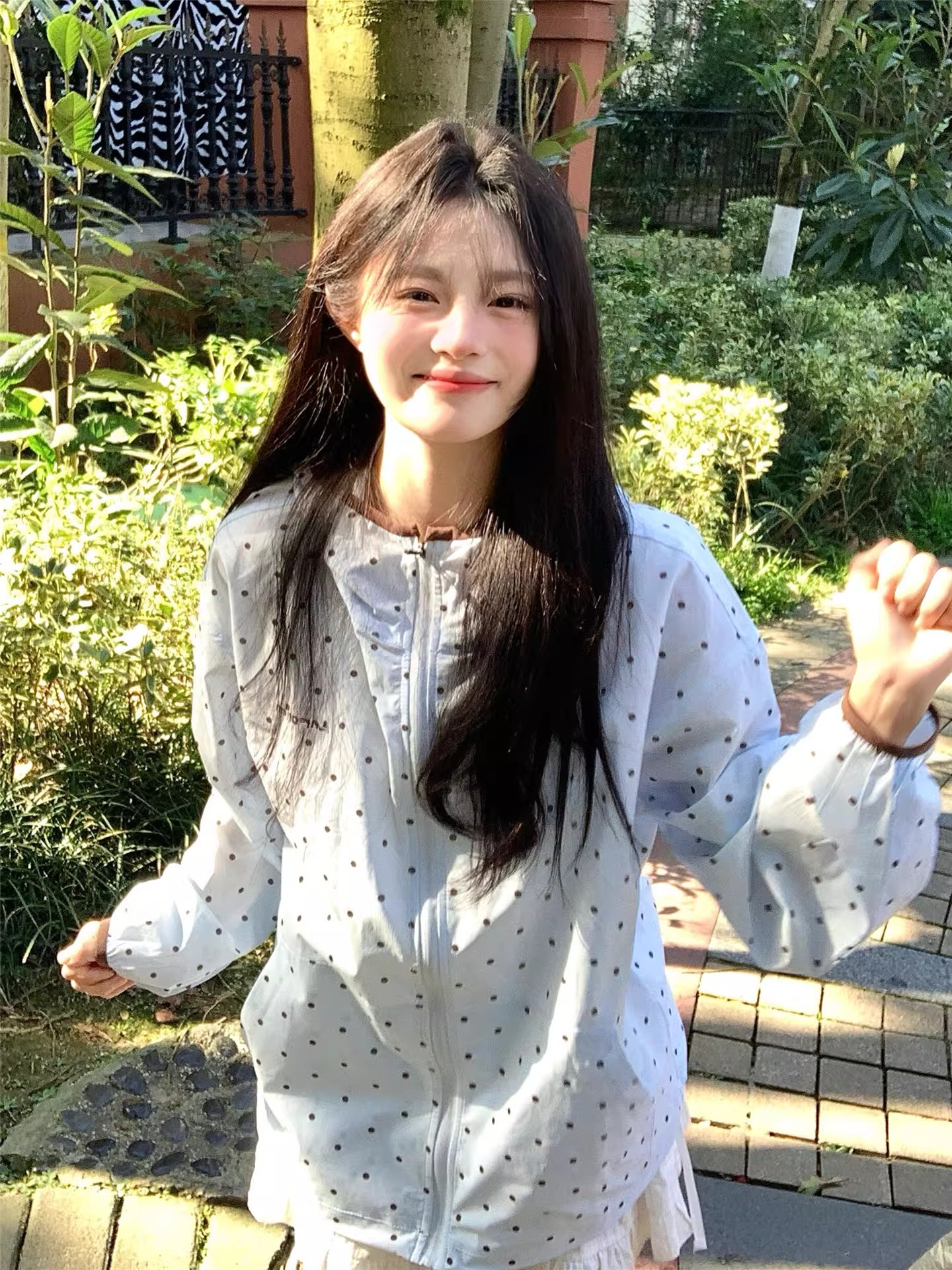 한 부서 캐주얼 도트 무늬 자외선 차단 의류 여성 봄 여름 2026 새로운 운동 오픈 가디건 얇은 코트 배색 패치워크 자외선 차단 복