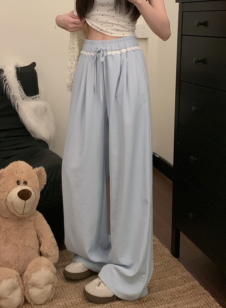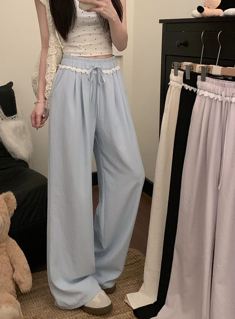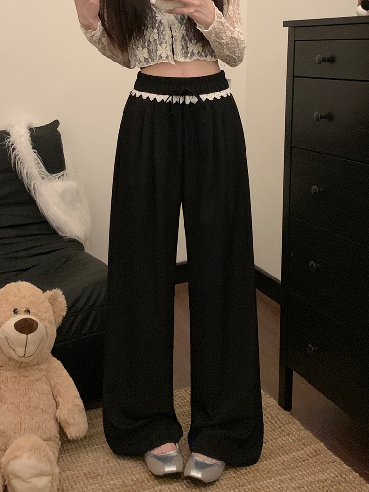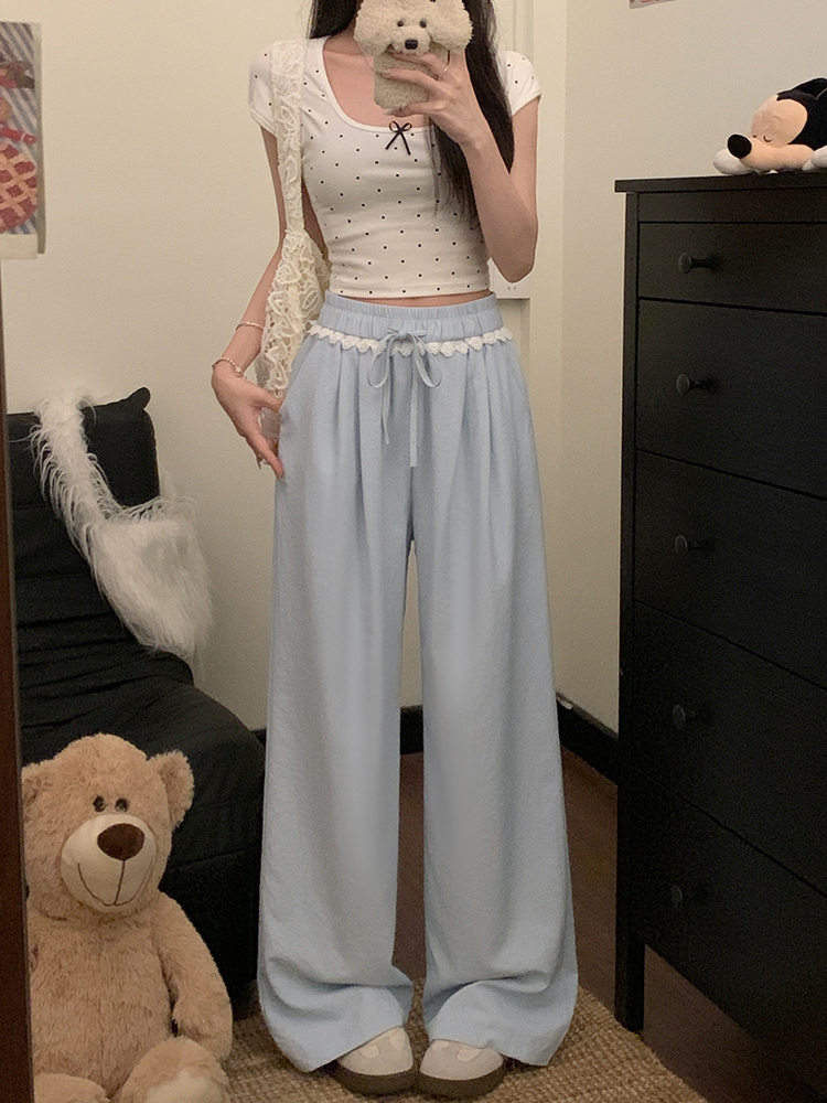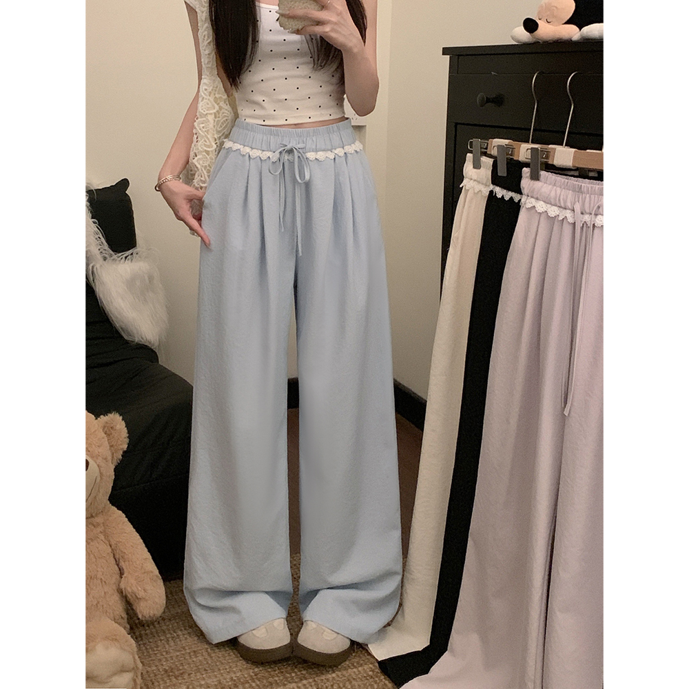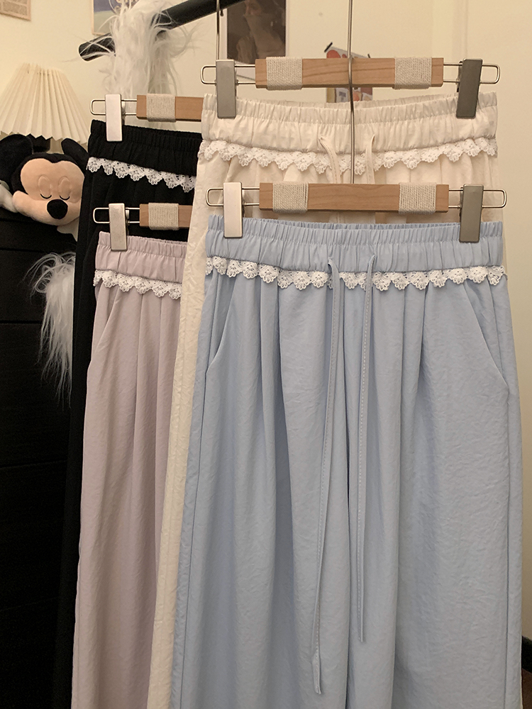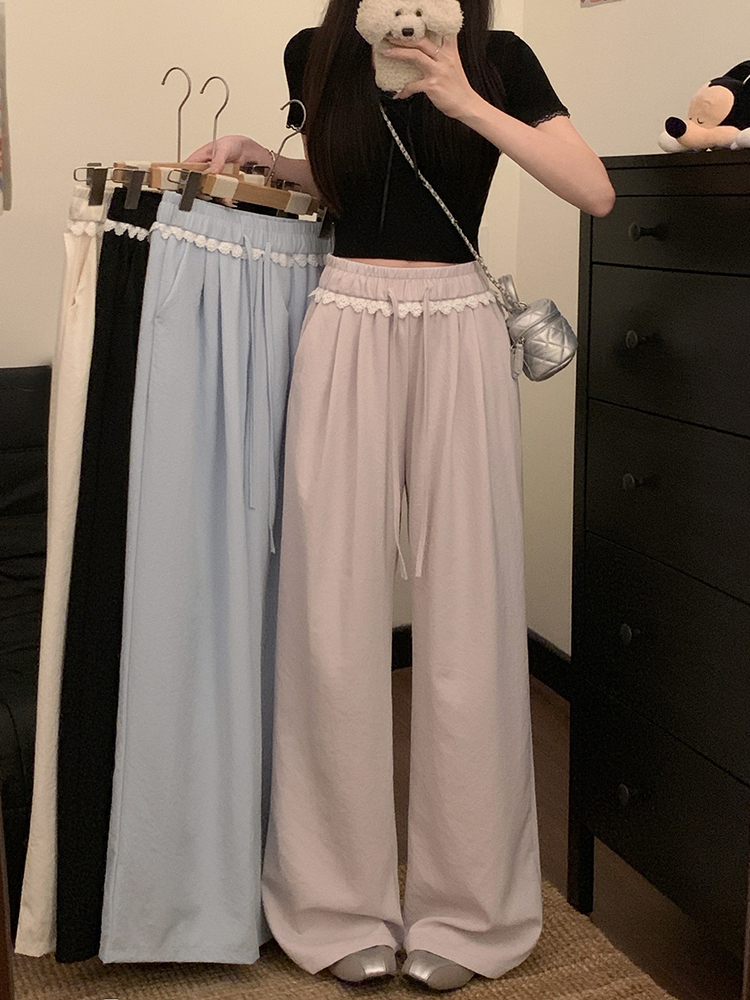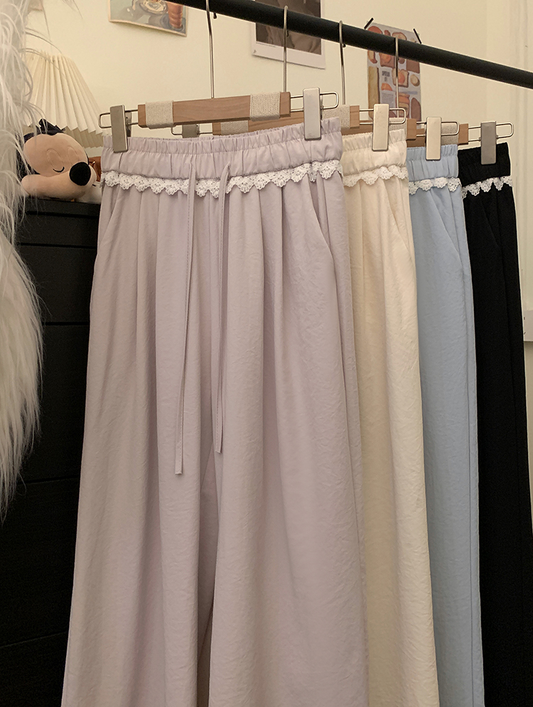 실사 2026 새로운 개성 레이스 와이드 레그 팬츠 펌프 로프 레이스업 허리밴드 캐주얼 루즈핏 바지 여성
