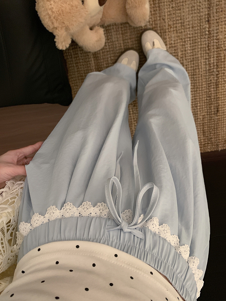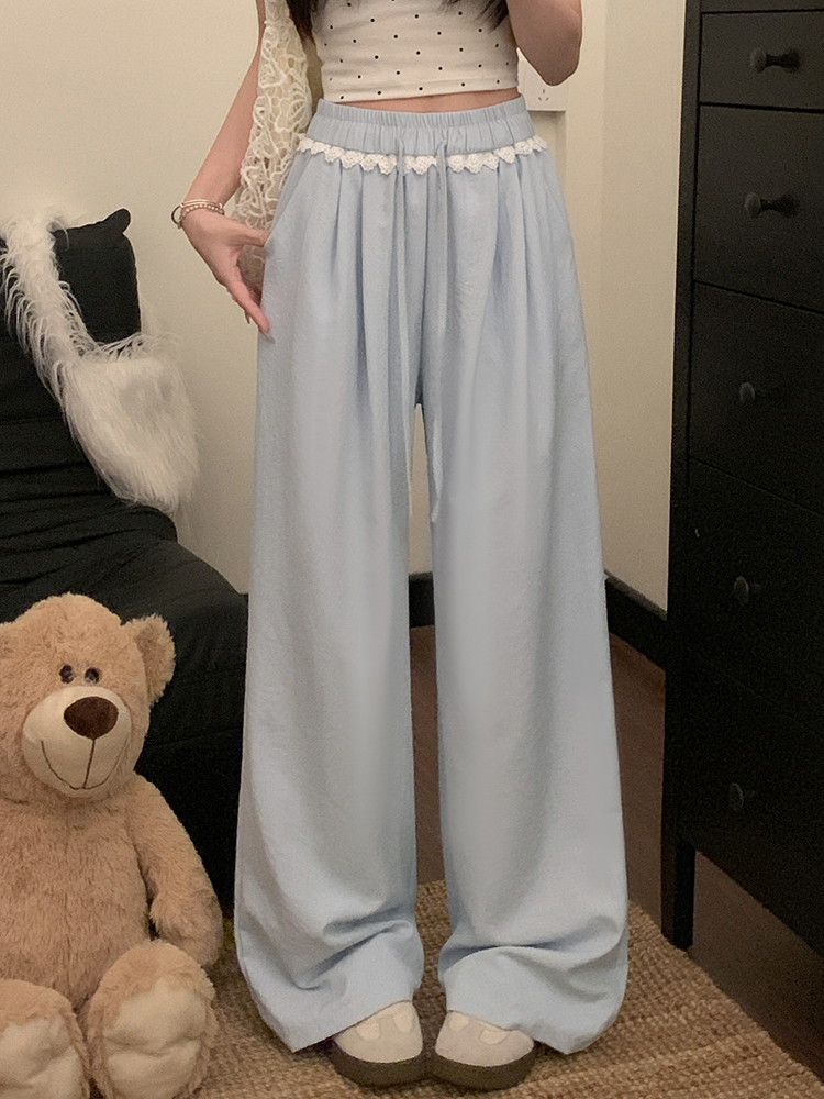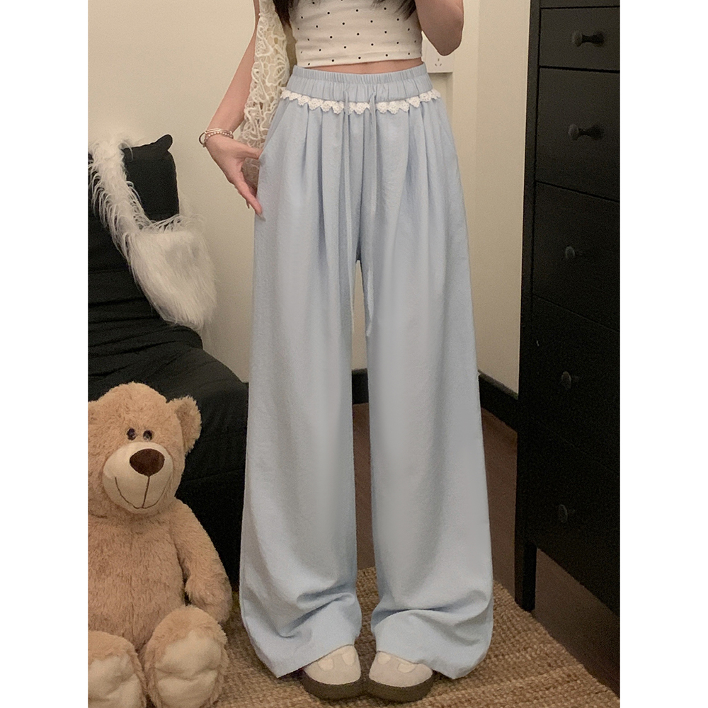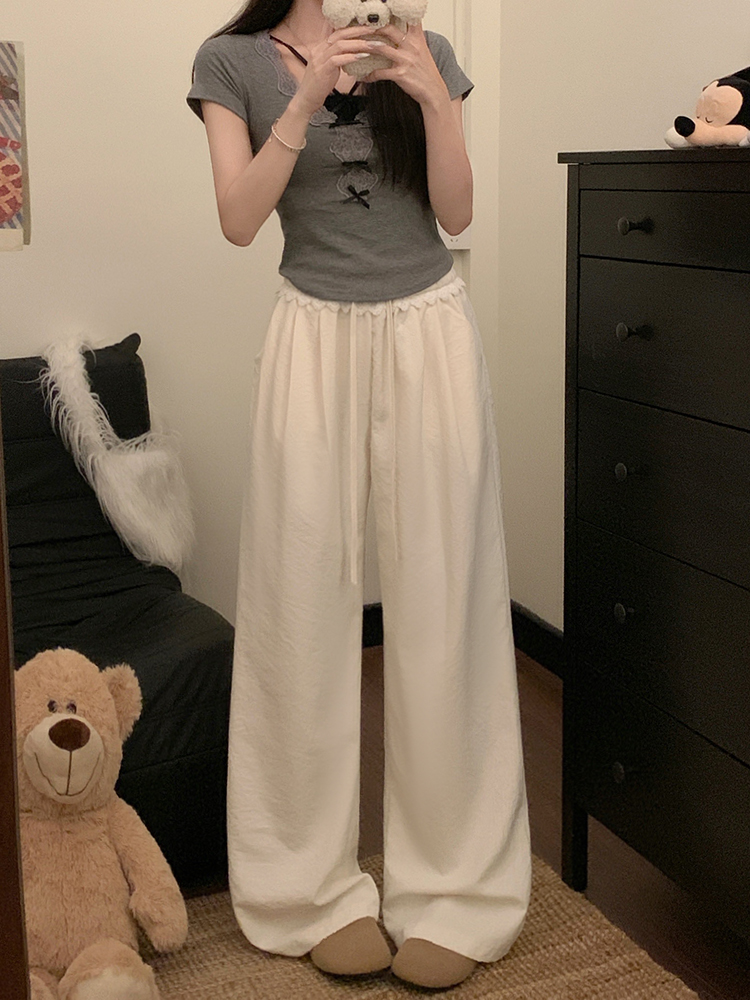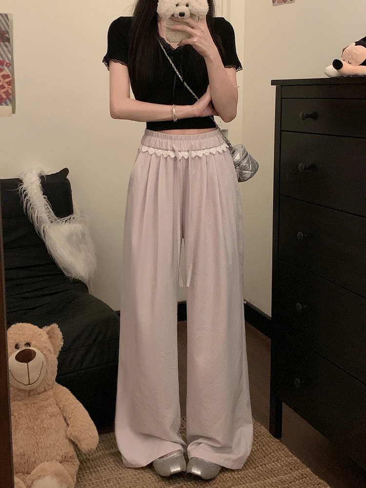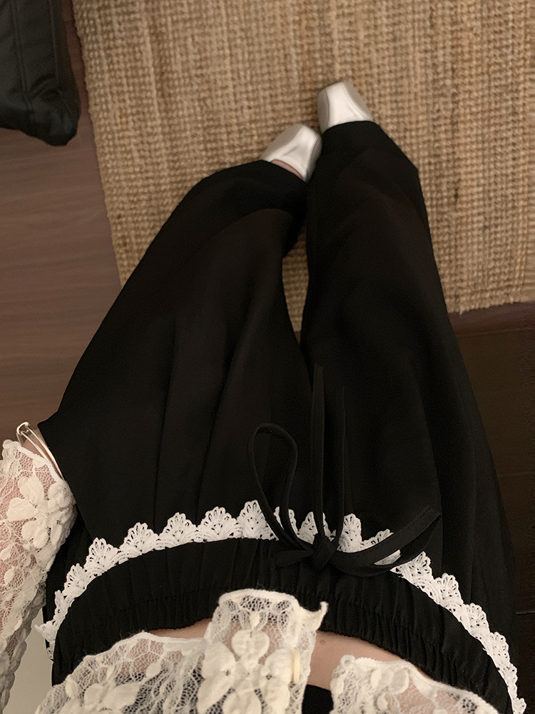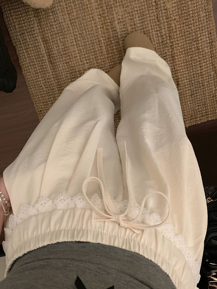 실사 2026 새로운 개성 레이스 와이드 레그 팬츠 펌프 로프 레이스업 허리밴드 캐주얼 루즈핏 바지 여성