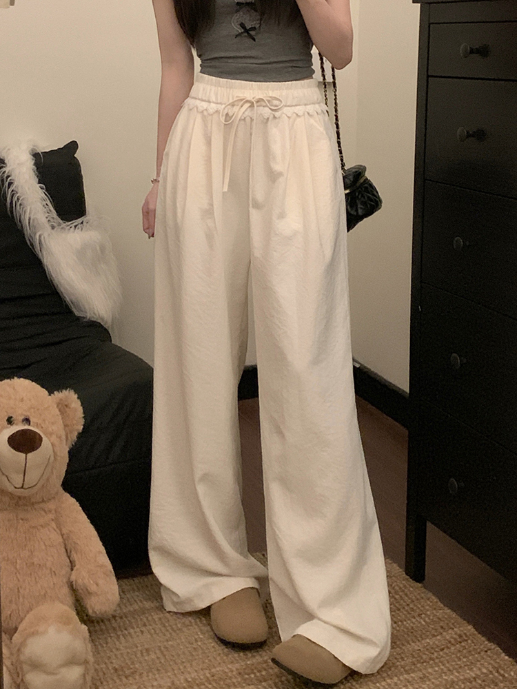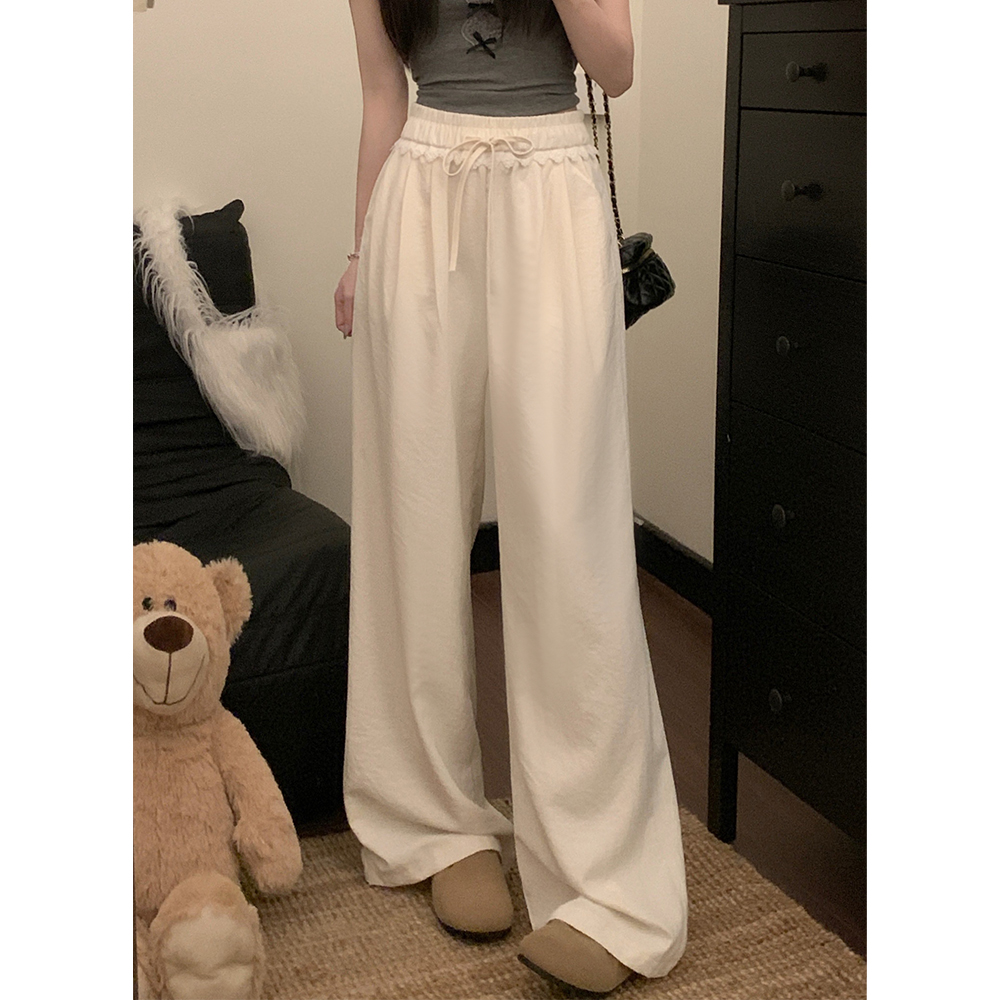 실사 새로운 허리밴드 슬림해 보이는 캐주얼 바지 여성 루즈핏 와이드 레그 팬츠