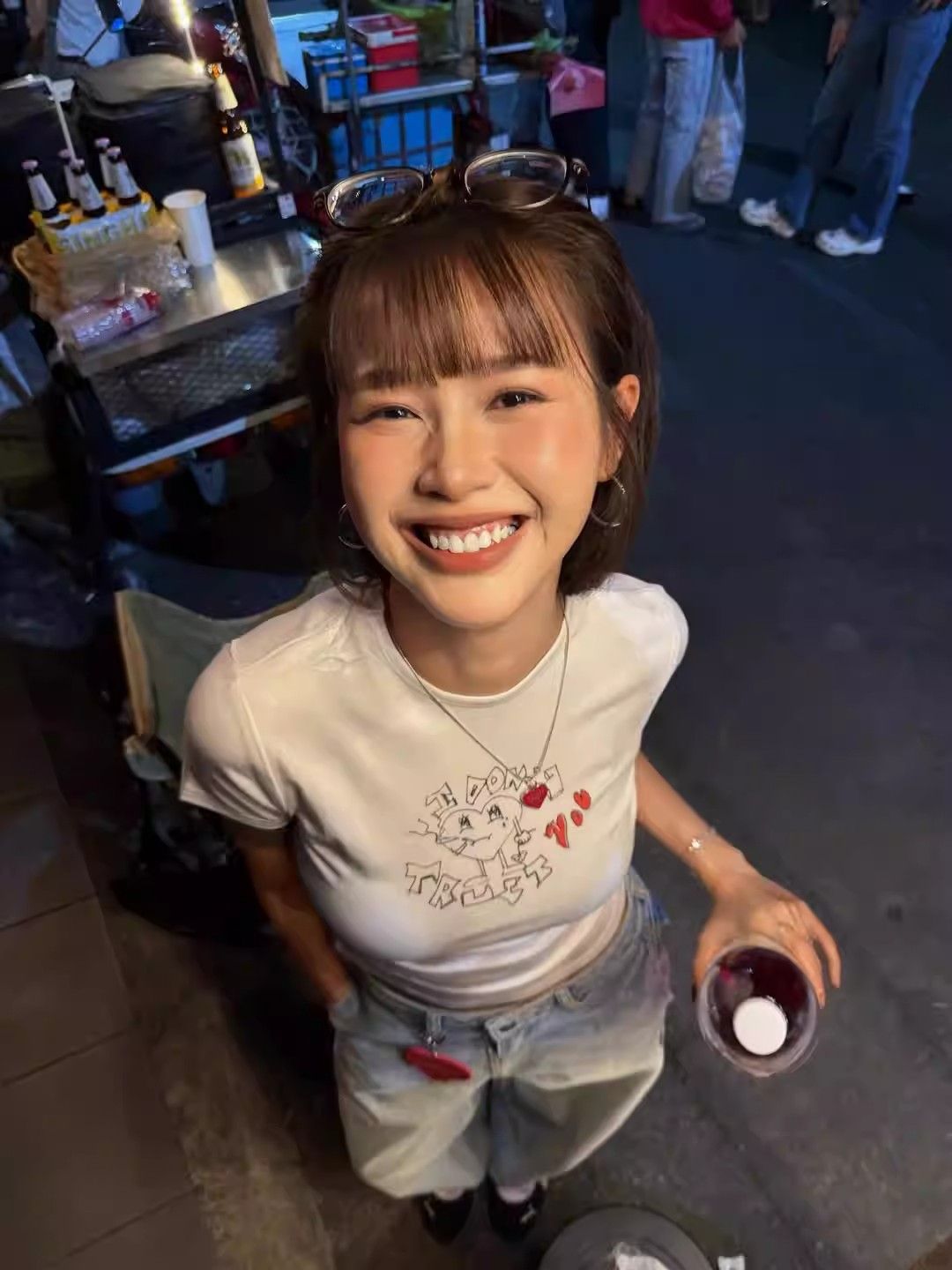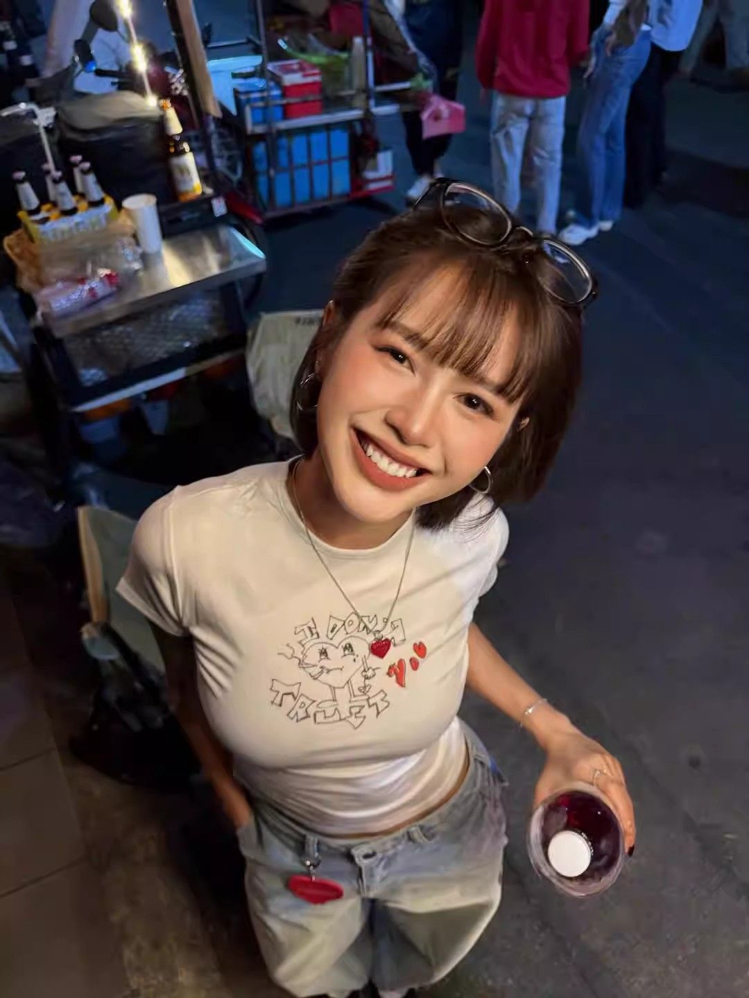 화이트 만화 프린트 반팔 티셔츠 여성 짧은 디자인 센스 아름다운 자이언트 잘 생긴 ~ 중 작은 맨위