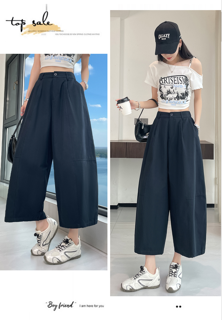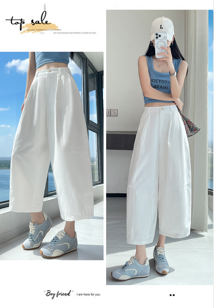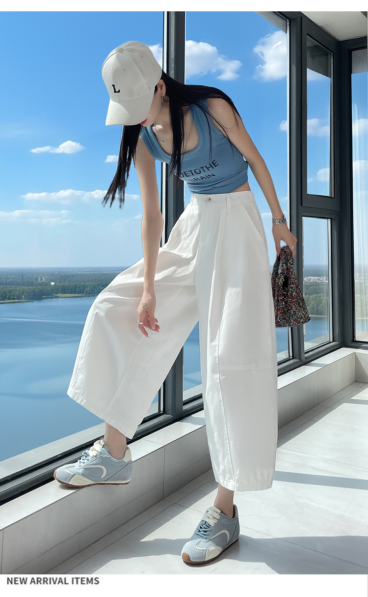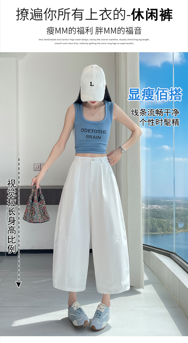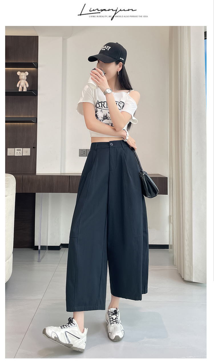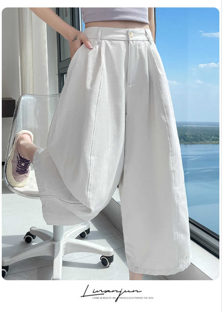 실사 풍선 스트레이트 낫 캐주얼 바지 여성 여름 새로운 하이웨이스트 슬림해 보이는 루즈핏 넓은 다리 9 포인트 바지