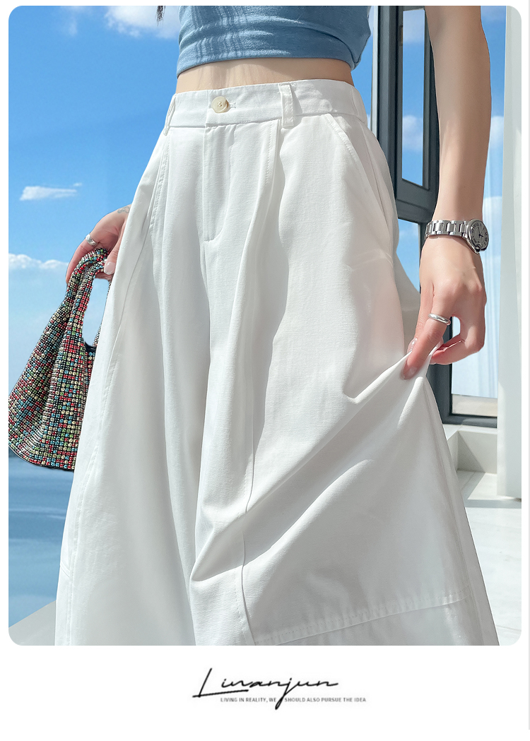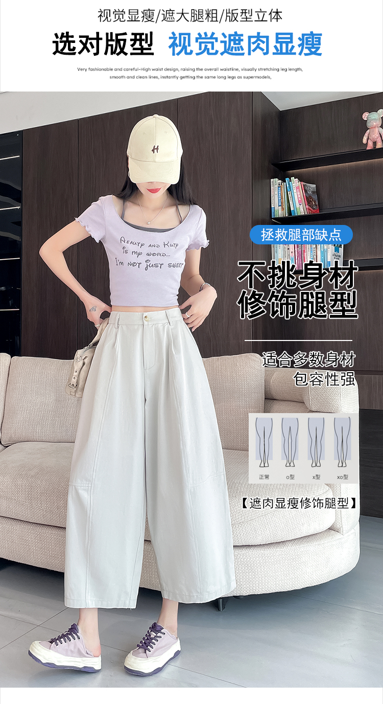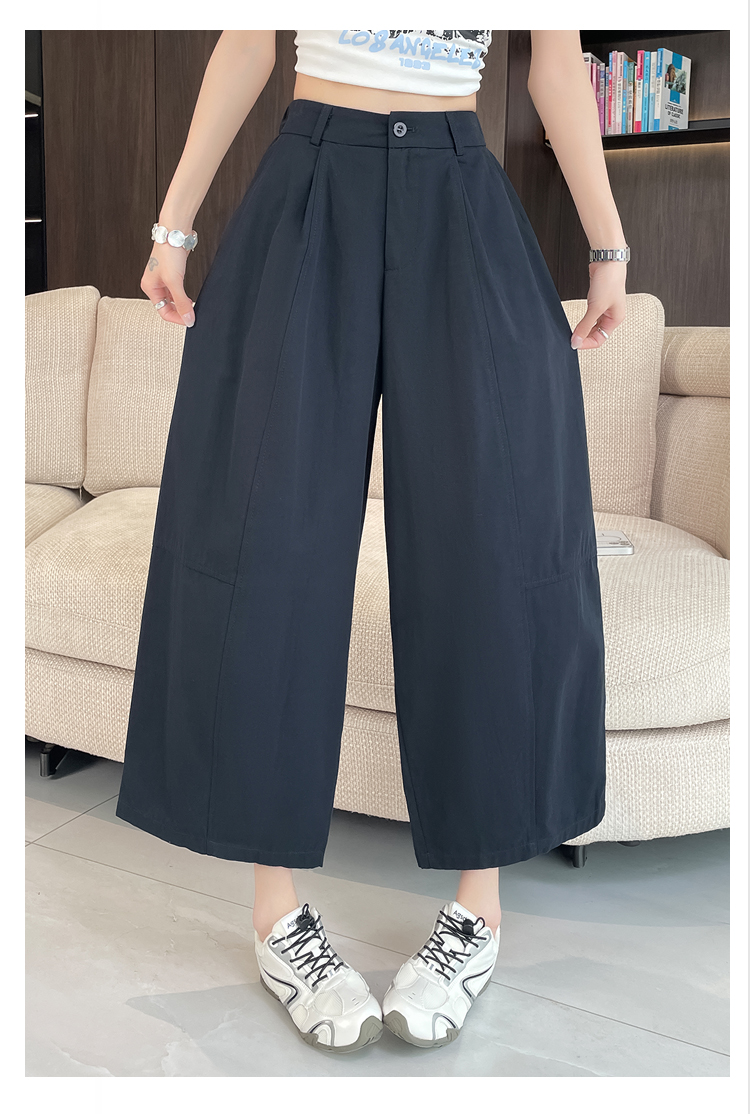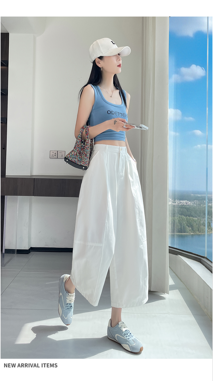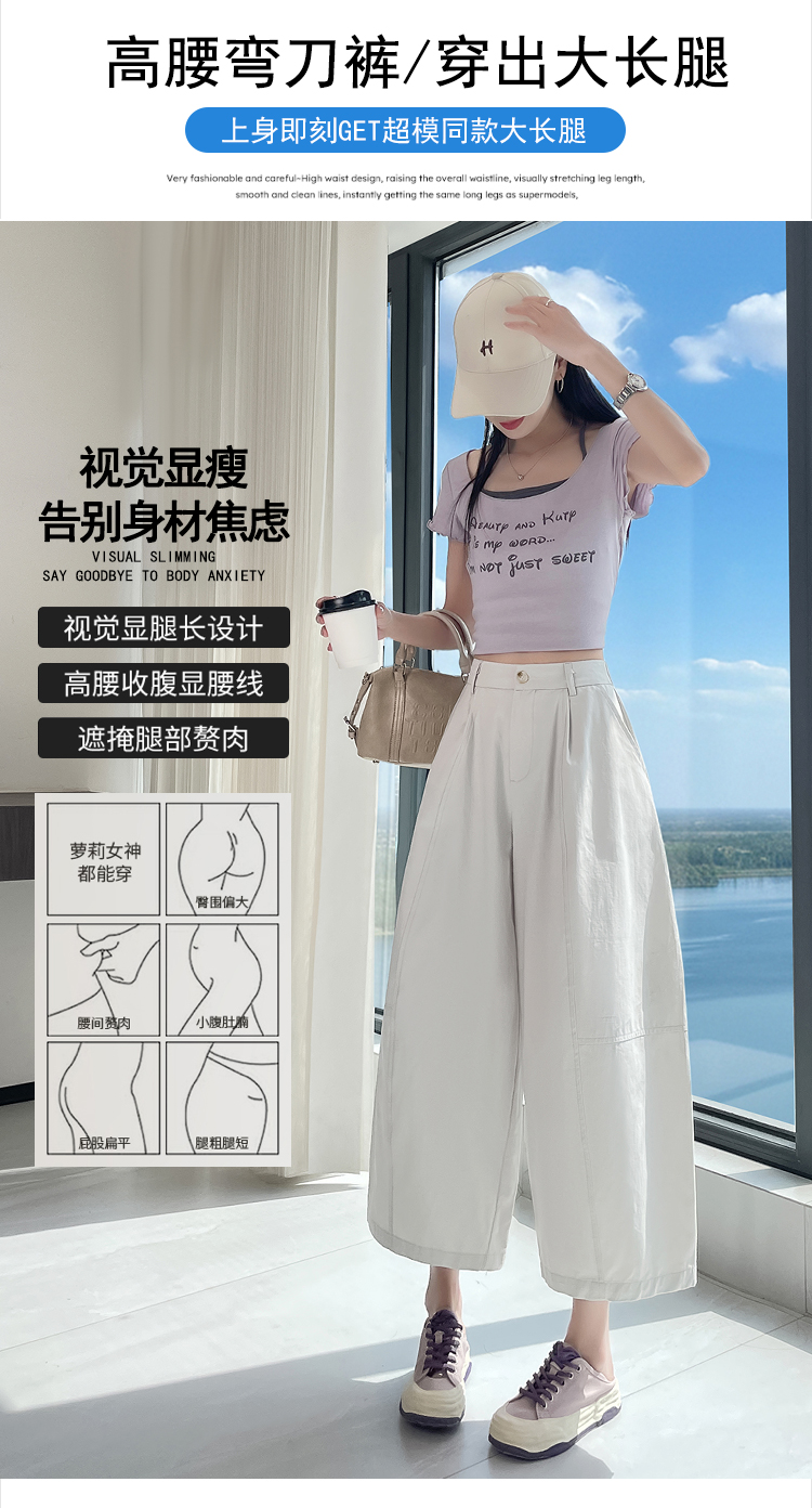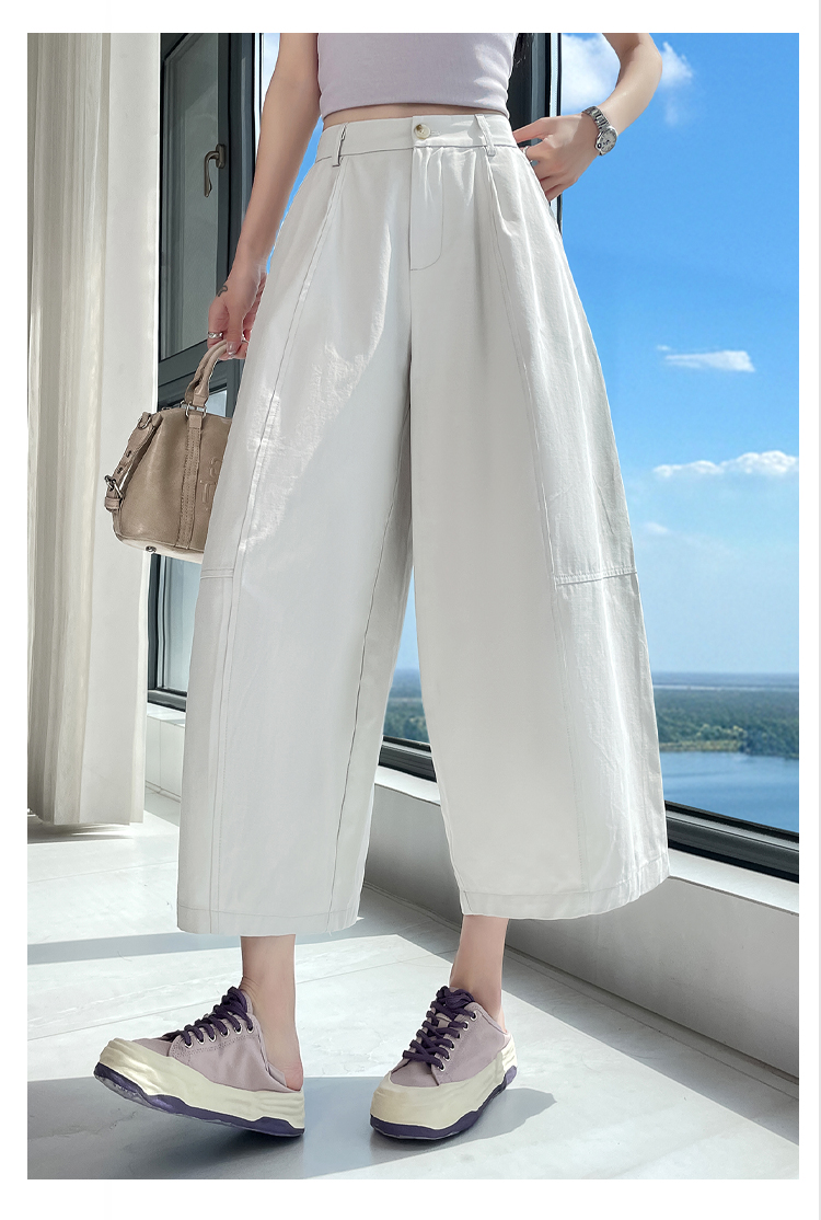 실사 풍선 스트레이트 낫 캐주얼 바지 여성 여름 새로운 하이웨이스트 슬림해 보이는 루즈핏 넓은 다리 9 포인트 바지
