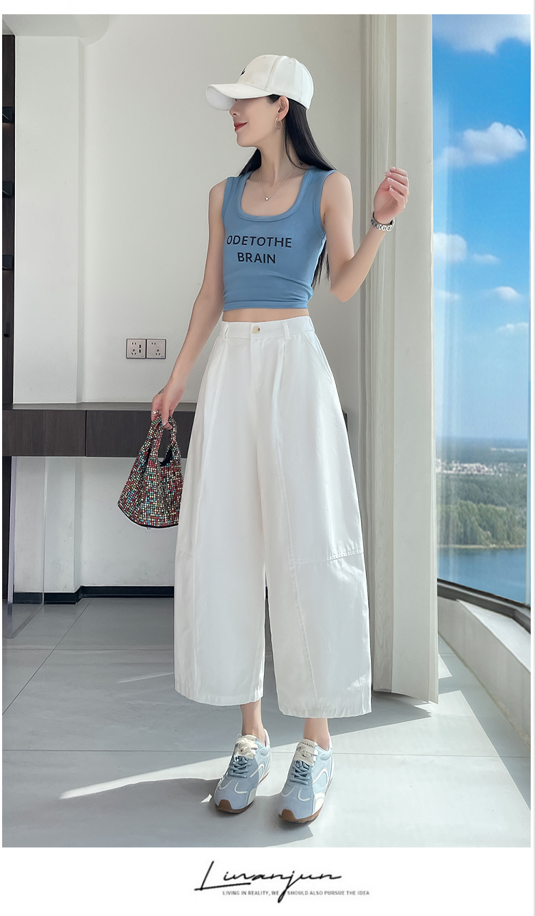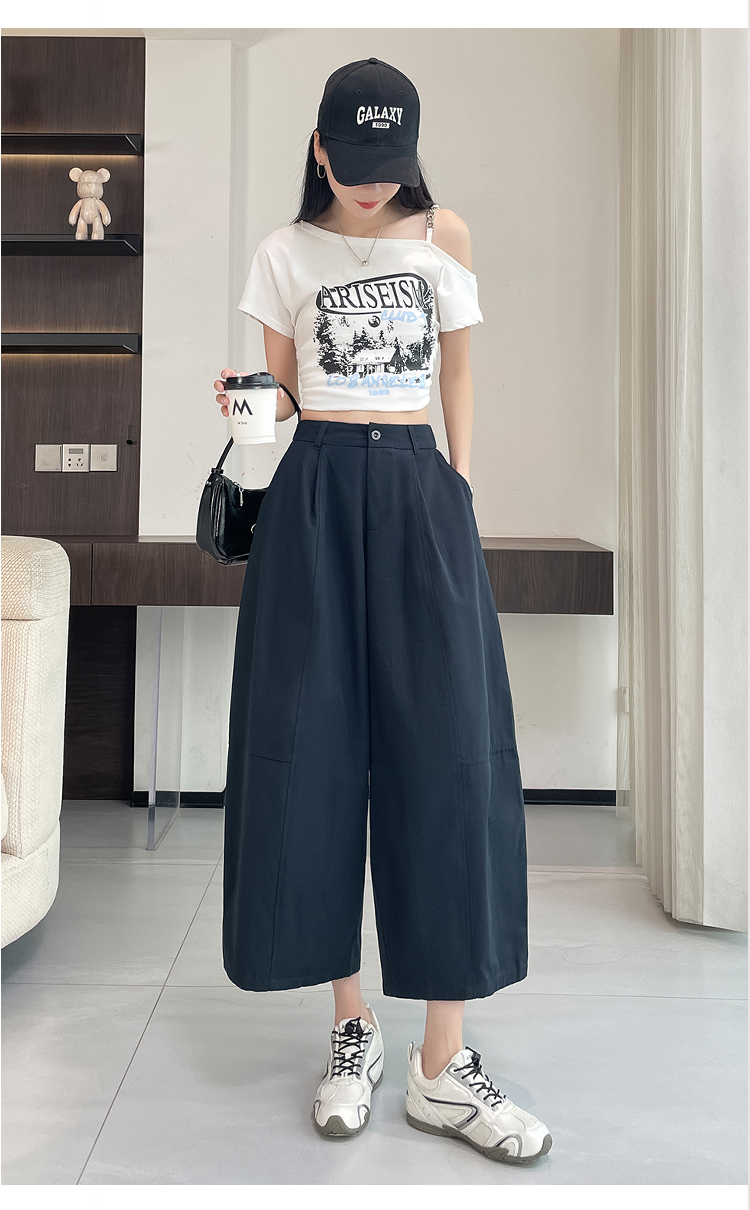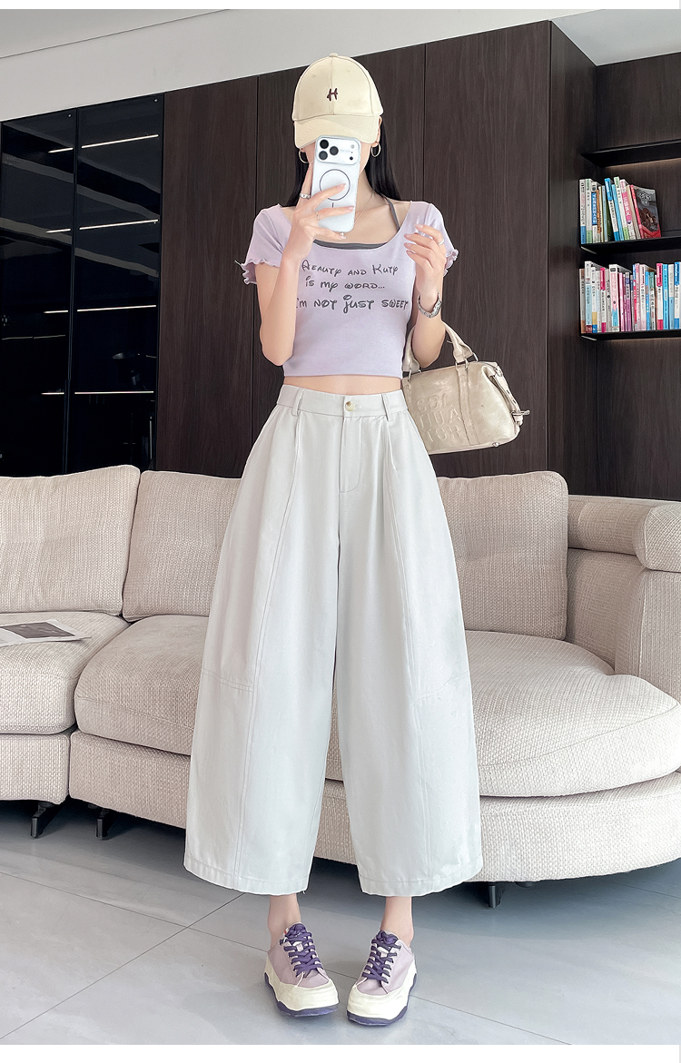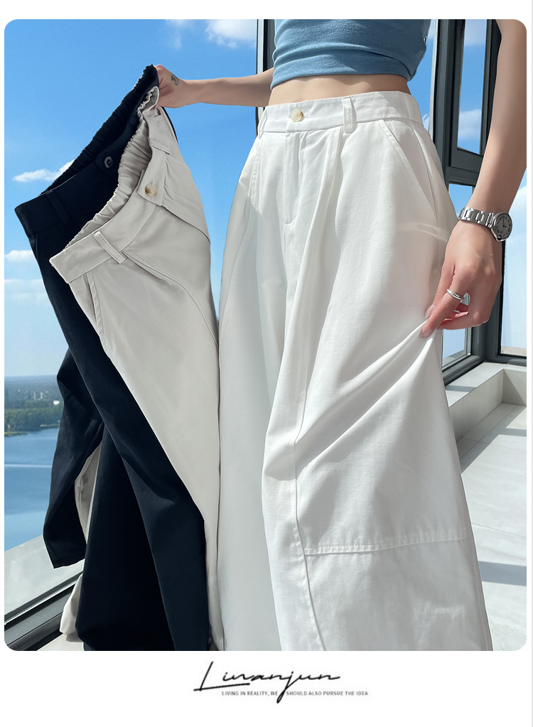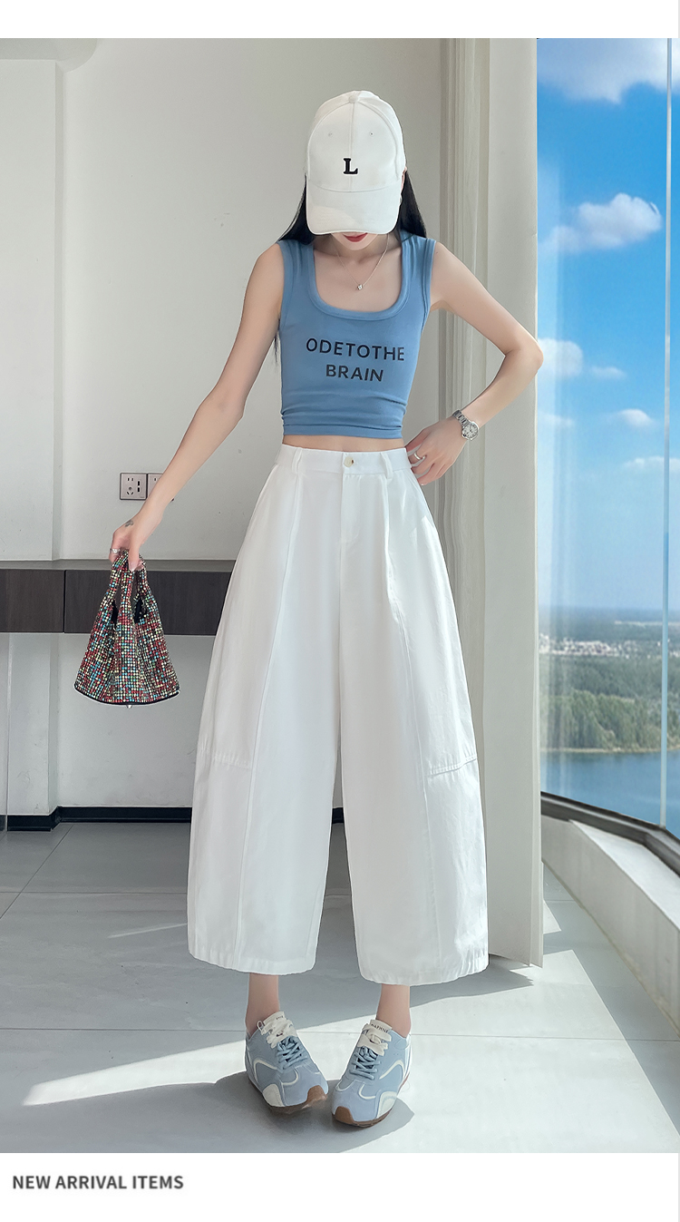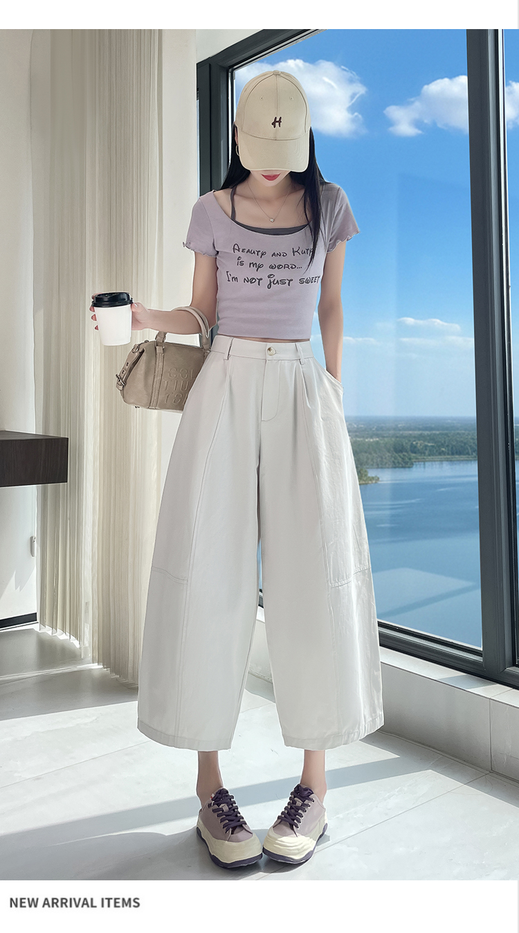 실사 풍선 스트레이트 낫 캐주얼 바지 여성 여름 새로운 하이웨이스트 슬림해 보이는 루즈핏 넓은 다리 9 포인트 바지
