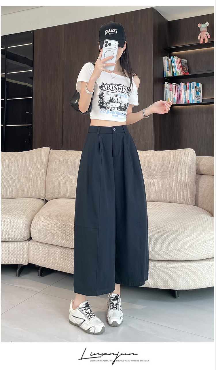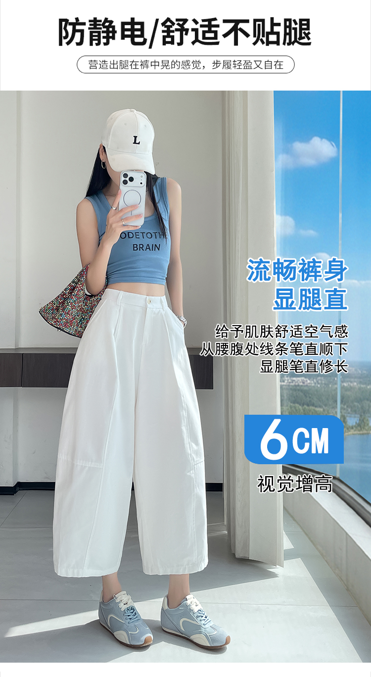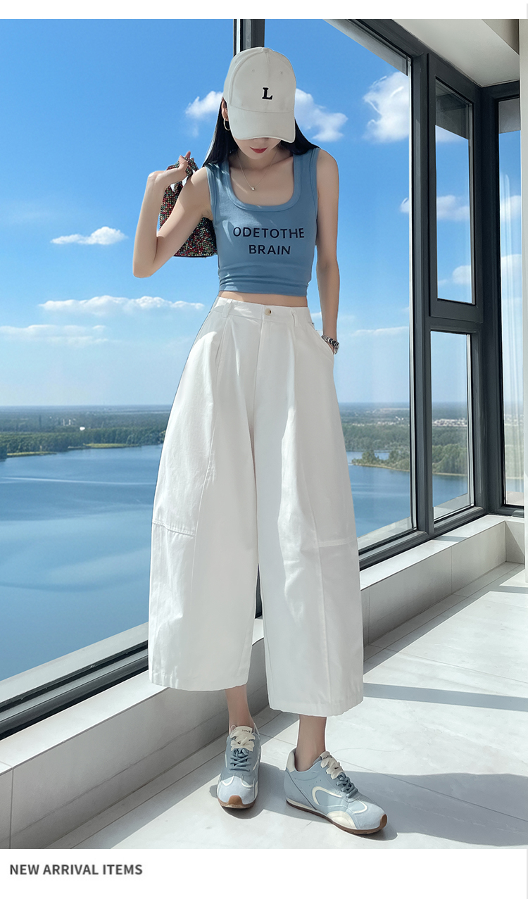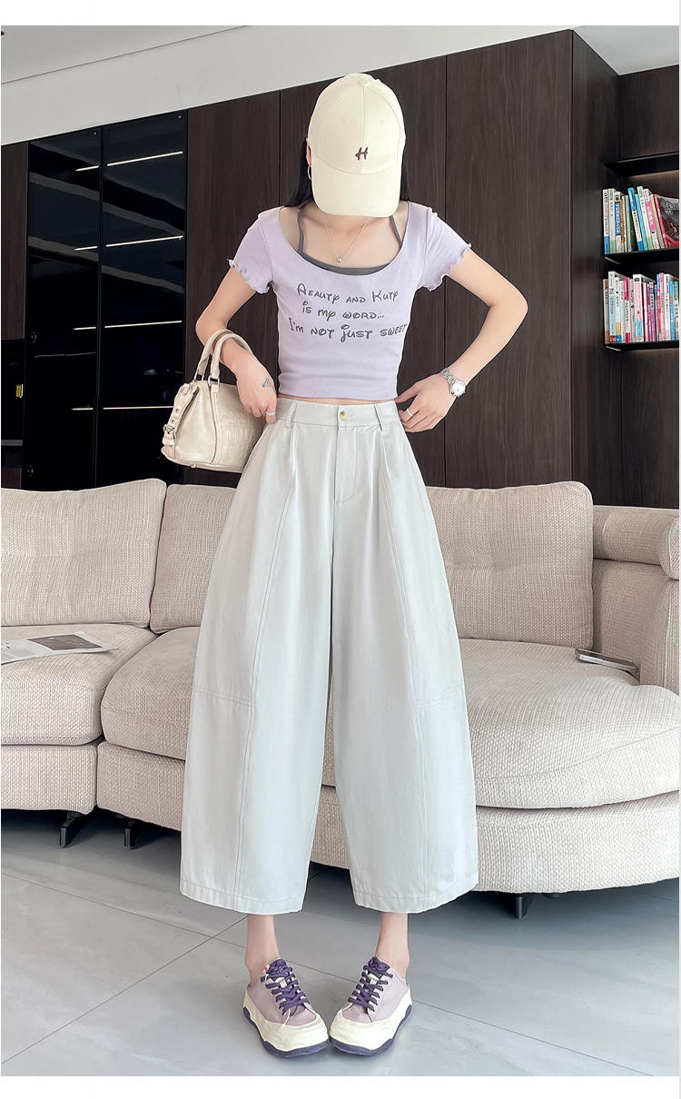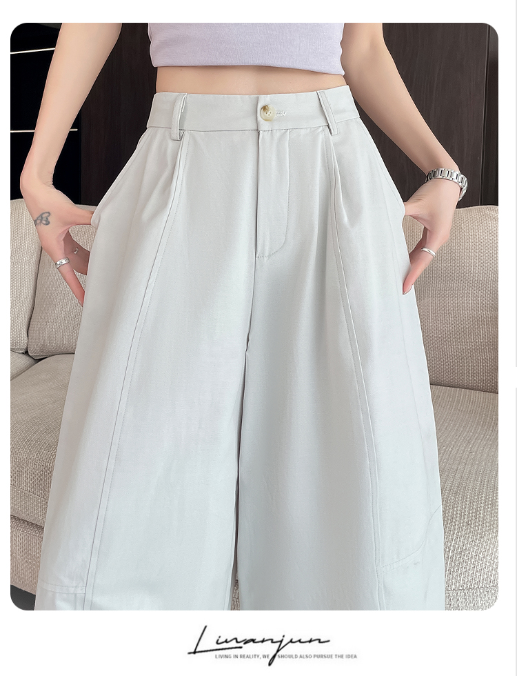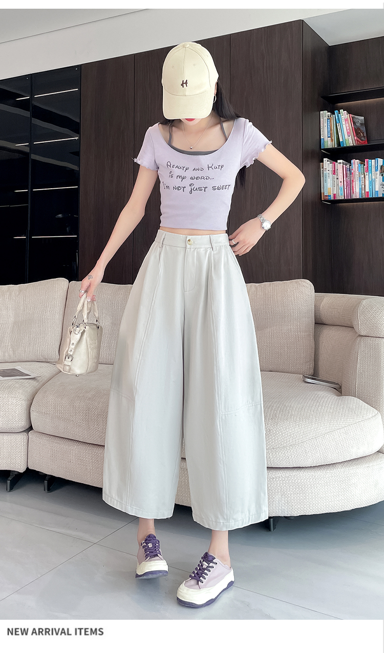 실사 풍선 스트레이트 낫 캐주얼 바지 여성 여름 새로운 하이웨이스트 슬림해 보이는 루즈핏 넓은 다리 9 포인트 바지
