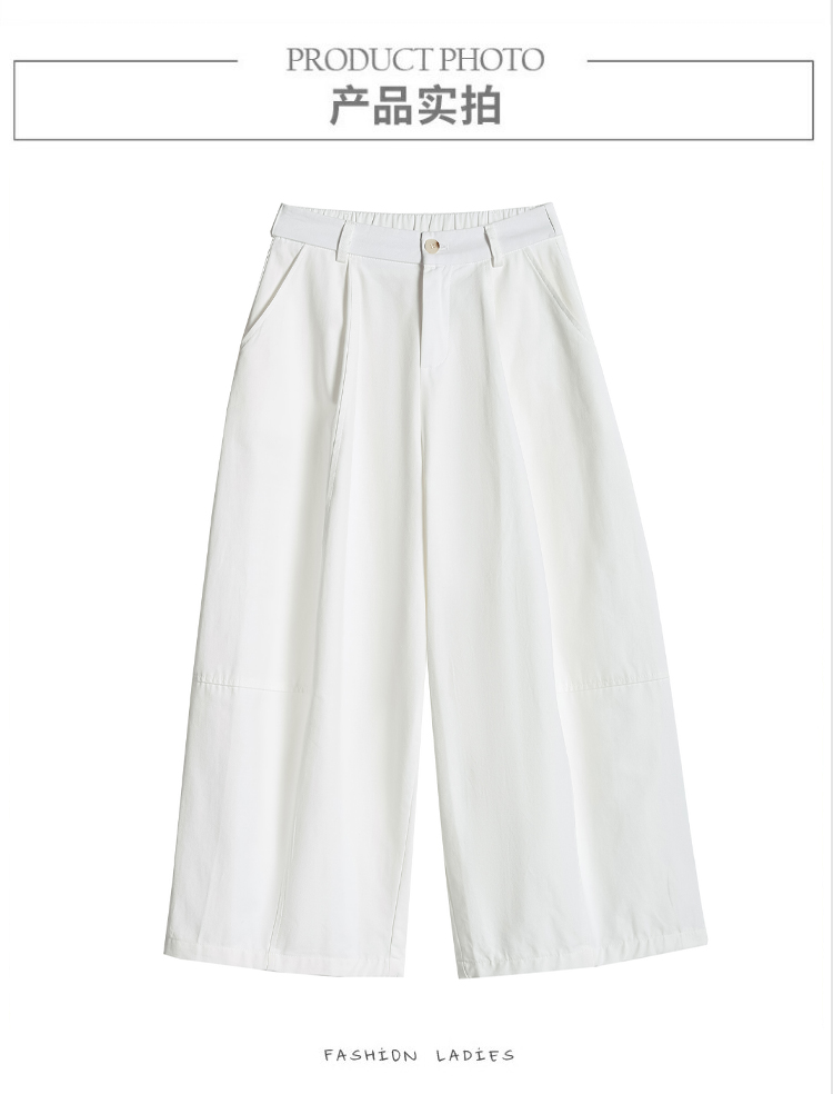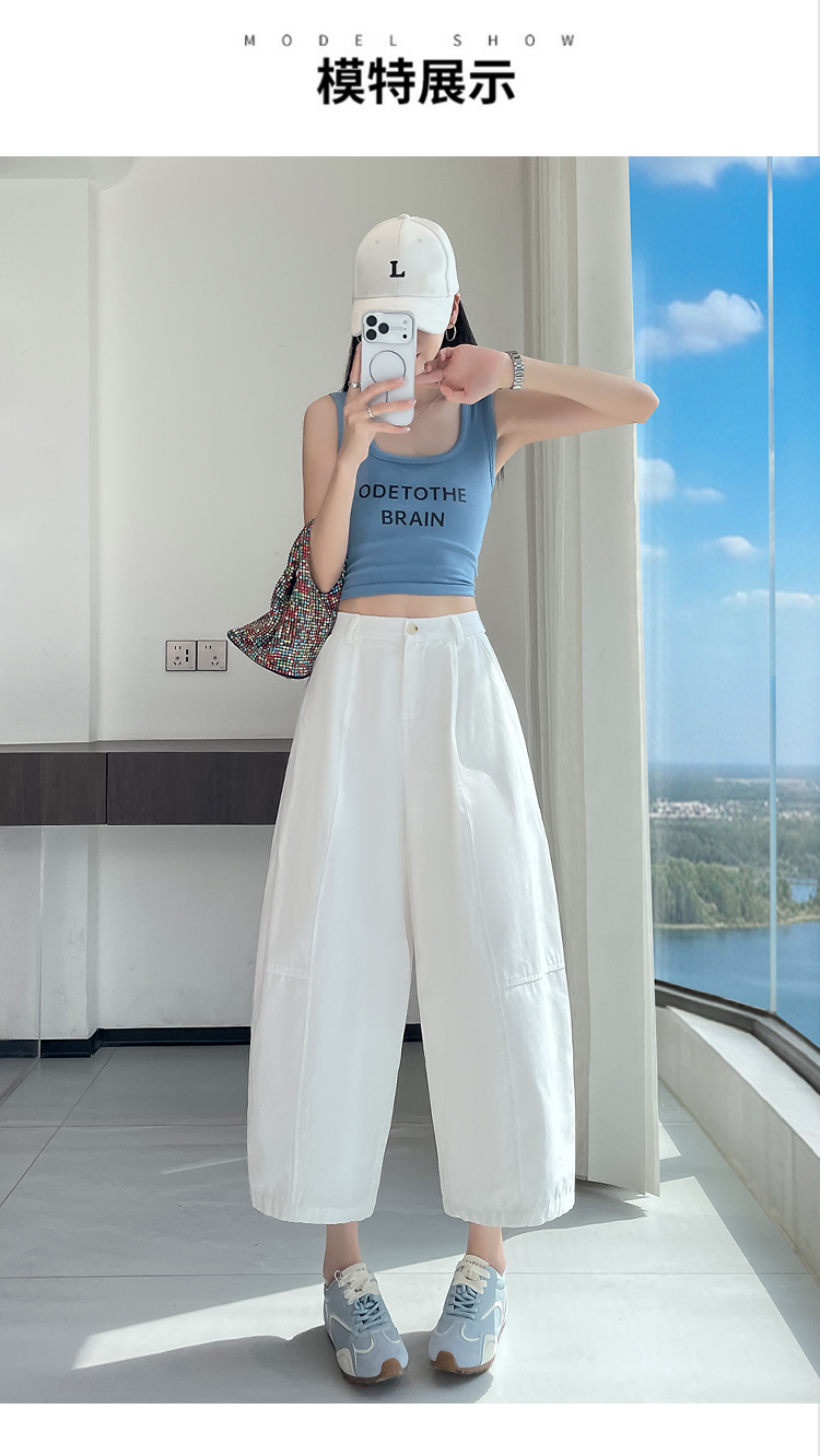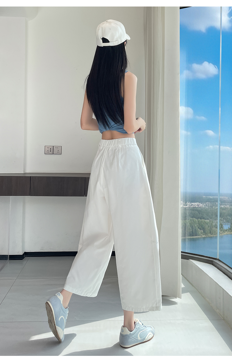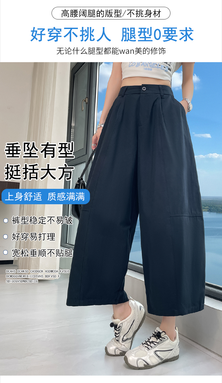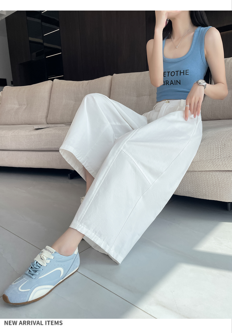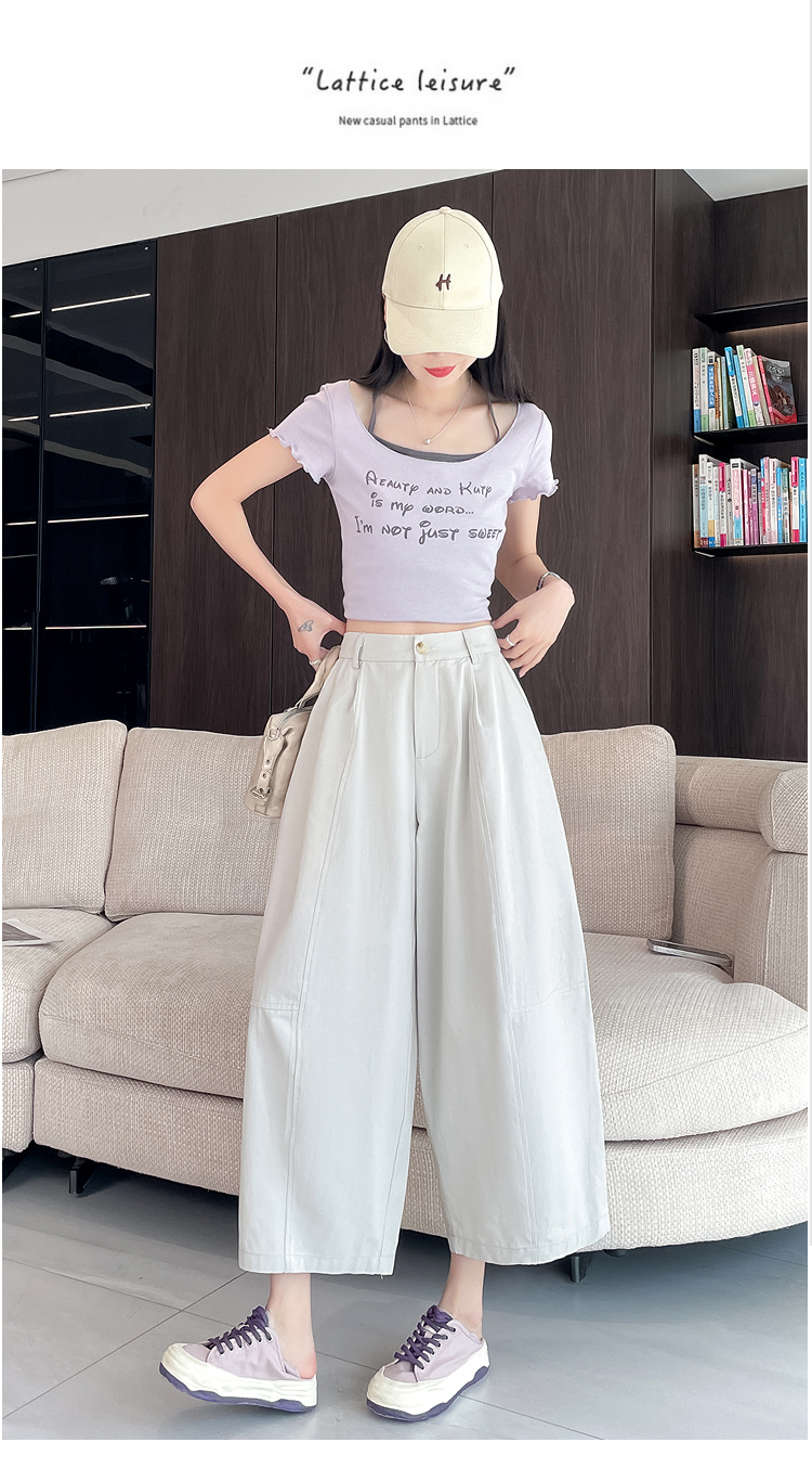 실사 풍선 스트레이트 낫 캐주얼 바지 여성 여름 새로운 하이웨이스트 슬림해 보이는 루즈핏 넓은 다리 9 포인트 바지