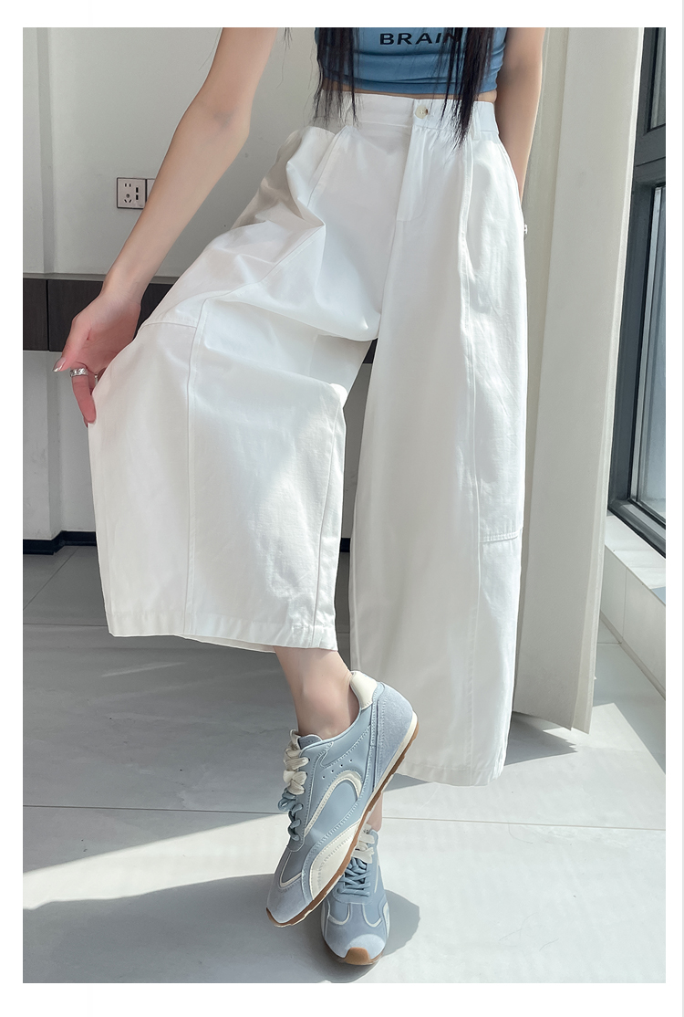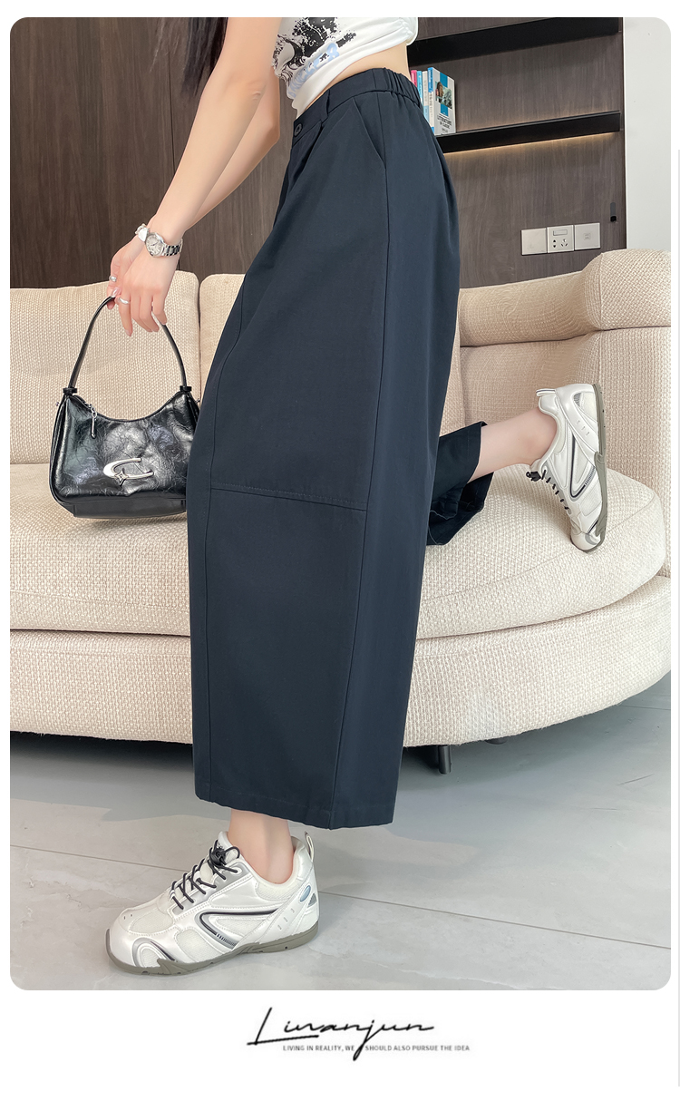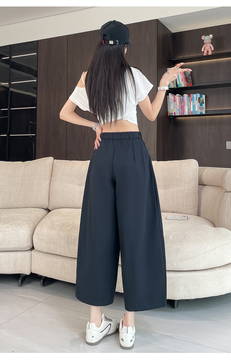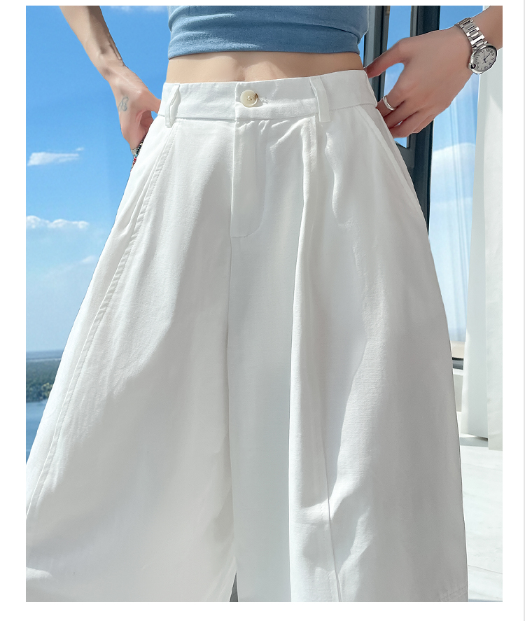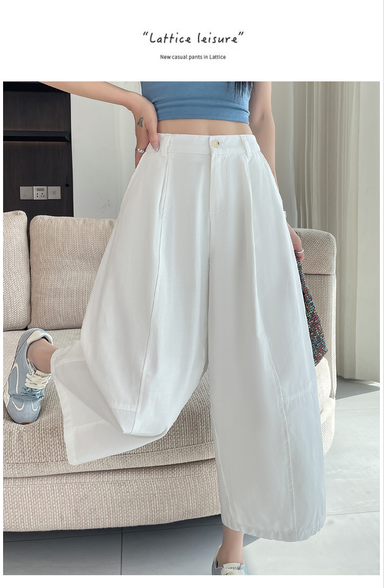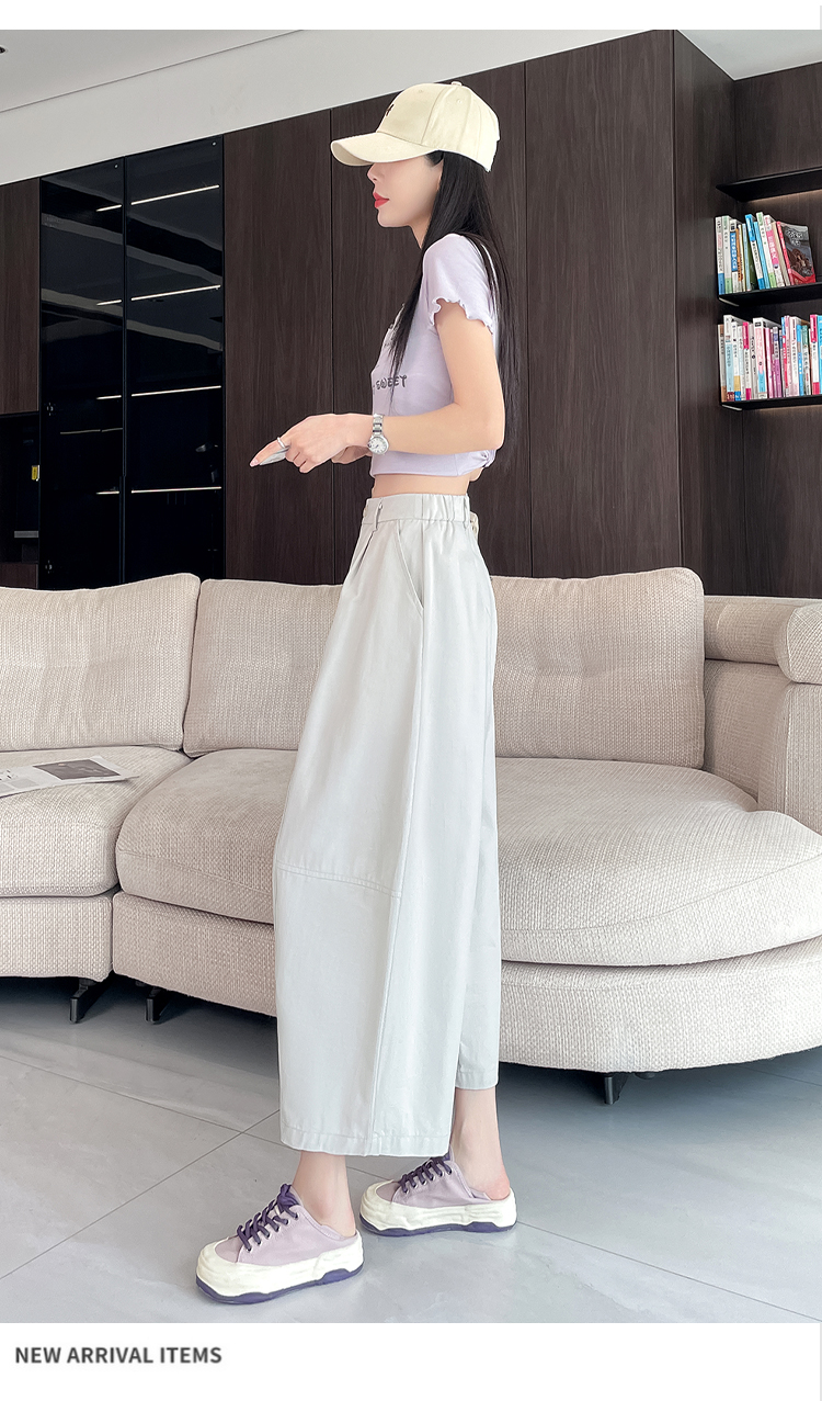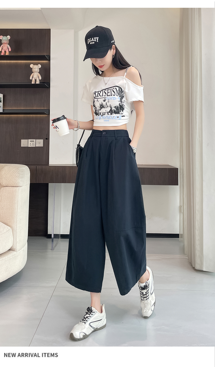실사 풍선 스트레이트 낫 캐주얼 바지 여성 여름 새로운 하이웨이스트 슬림해 보이는 루즈핏 넓은 다리 9 포인트 바지
