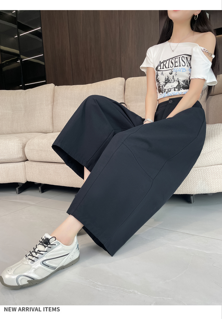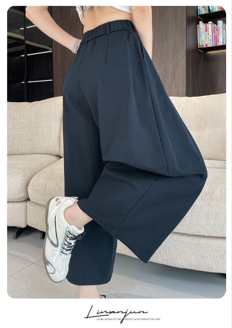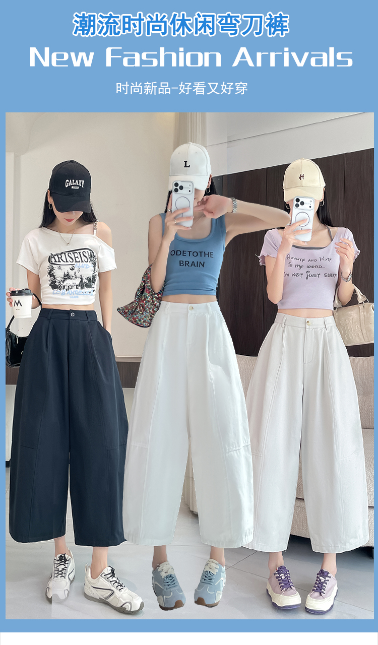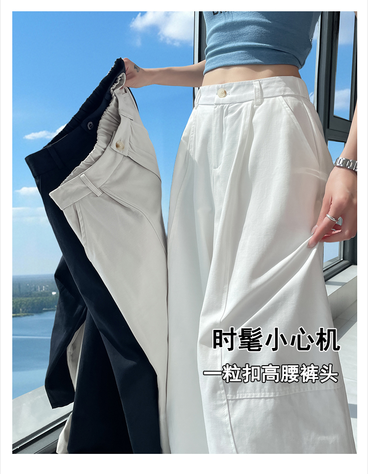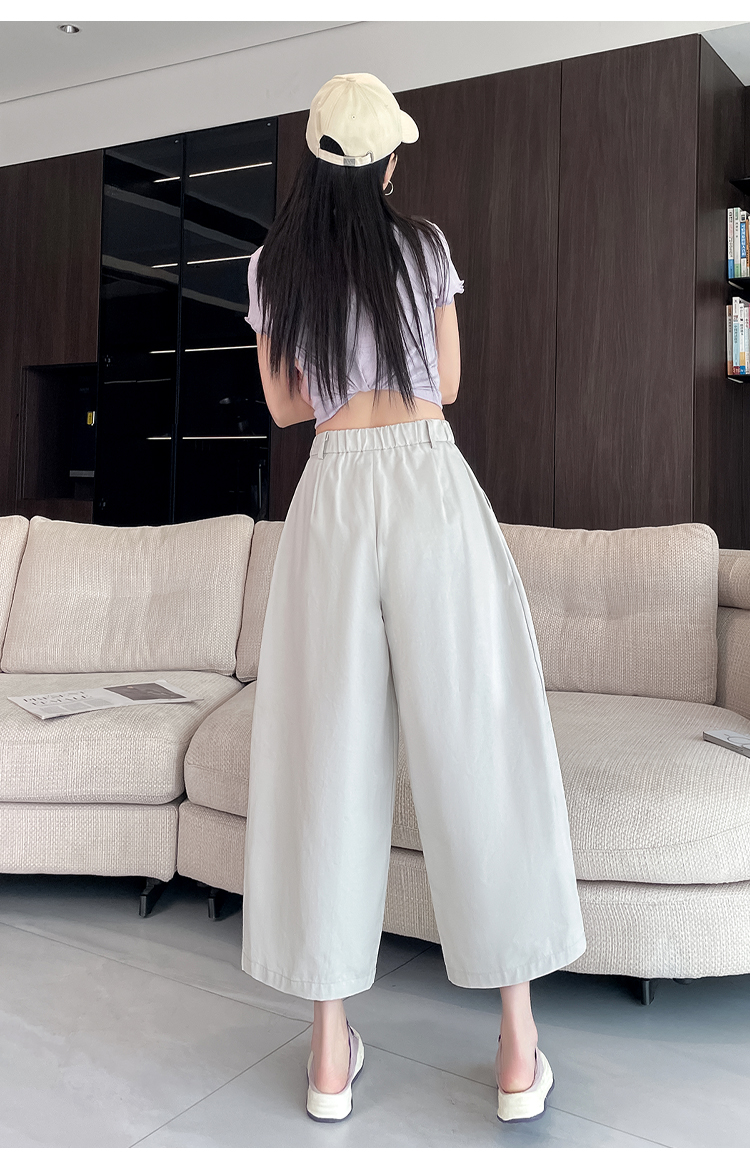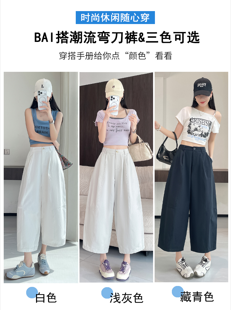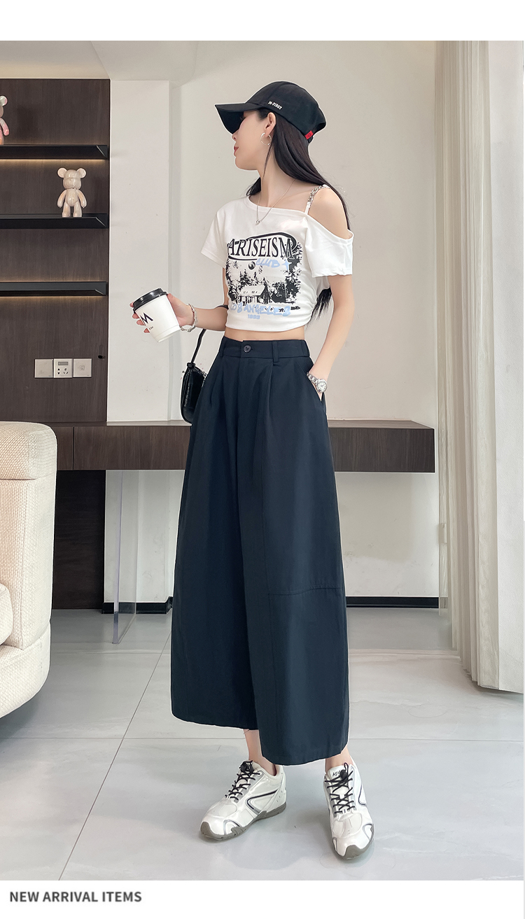 실사 풍선 스트레이트 낫 캐주얼 바지 여성 여름 새로운 하이웨이스트 슬림해 보이는 루즈핏 넓은 다리 9 포인트 바지
