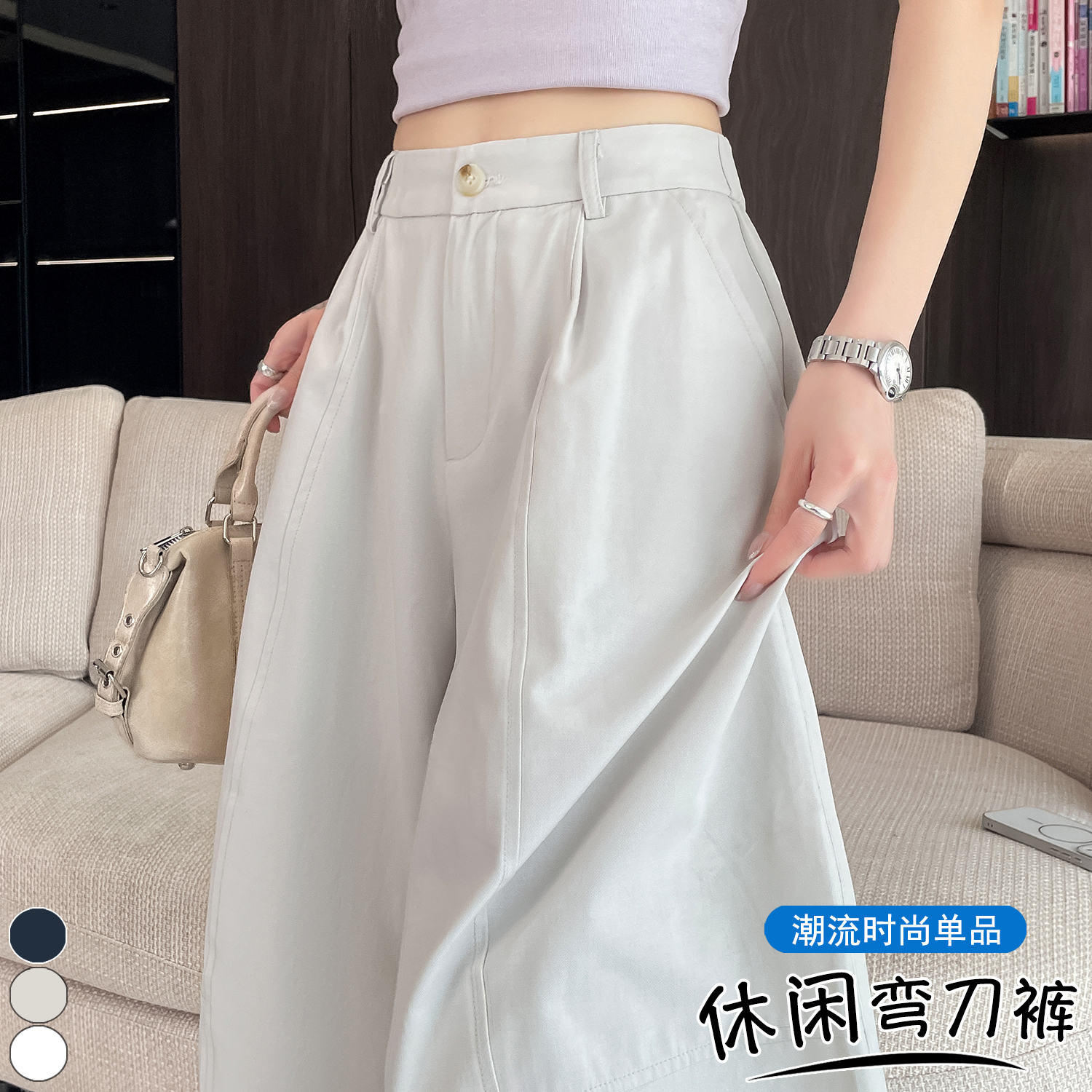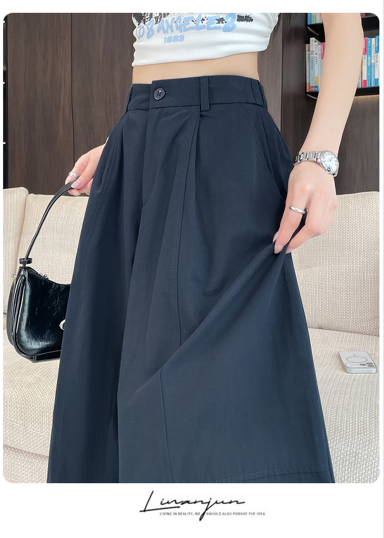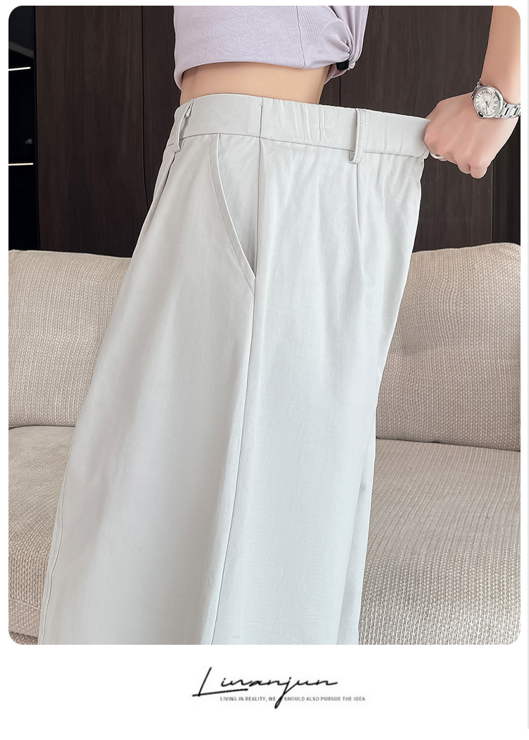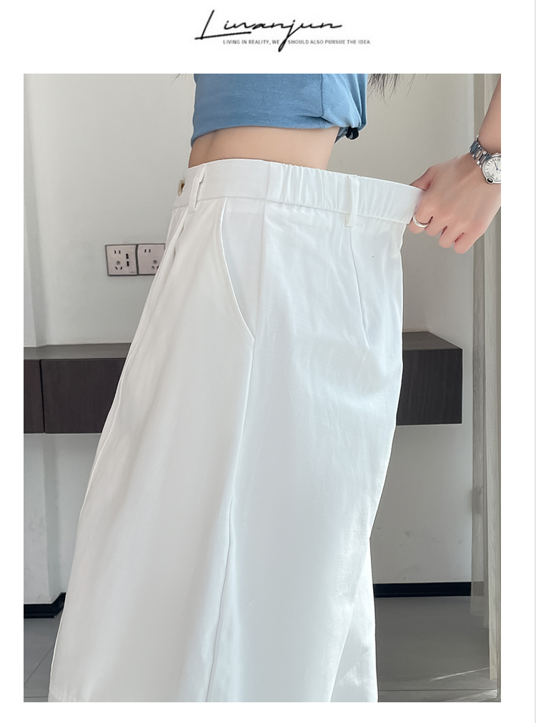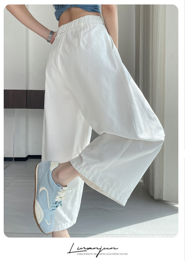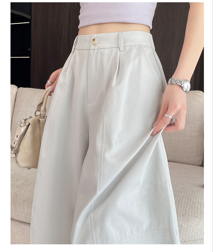 실사 풍선 스트레이트 낫 캐주얼 바지 여성 여름 새로운 하이웨이스트 슬림해 보이는 루즈핏 넓은 다리 9 포인트 바지