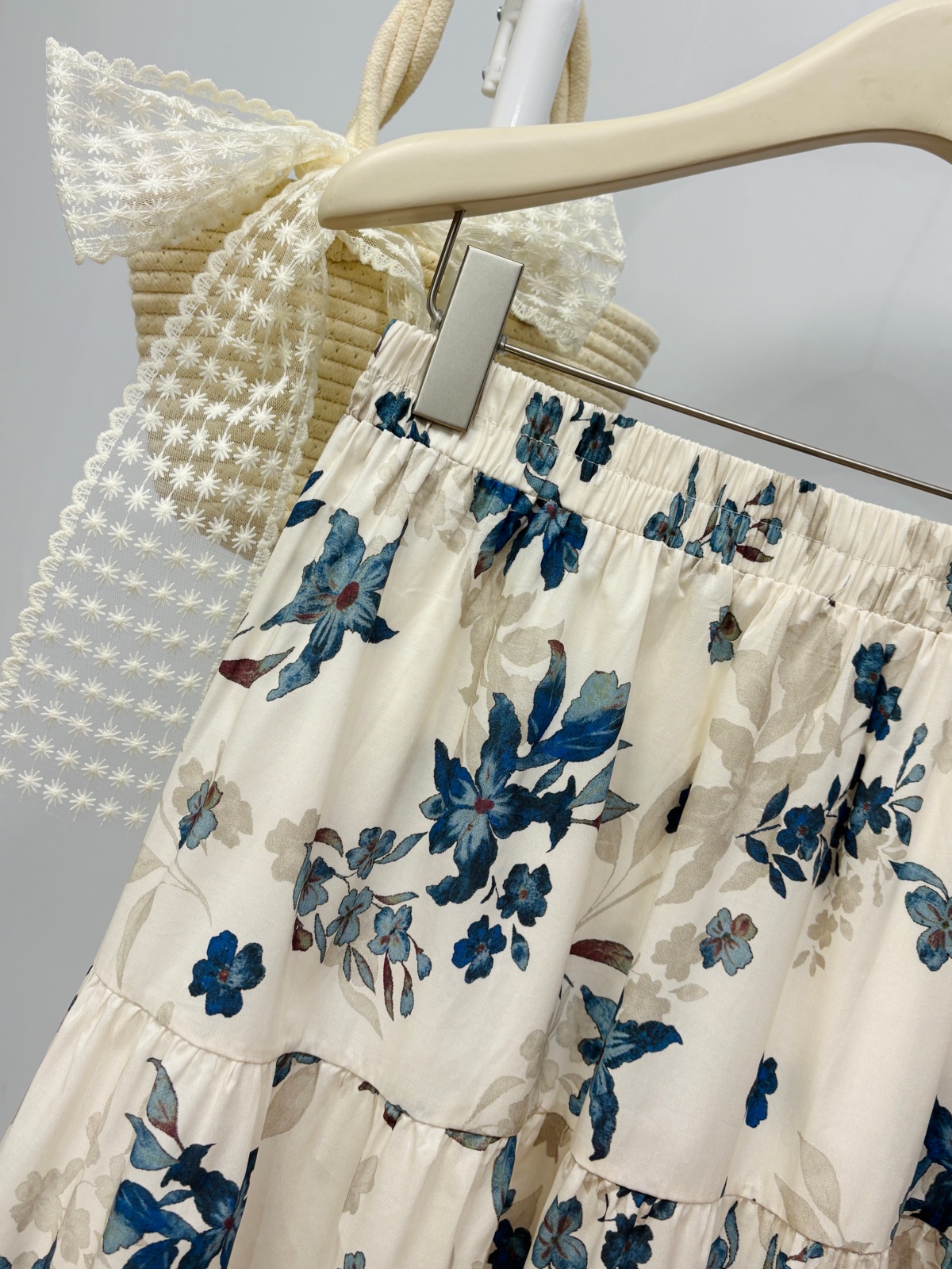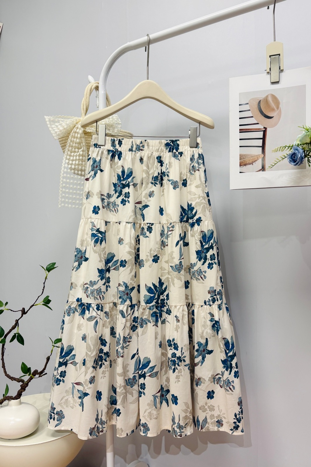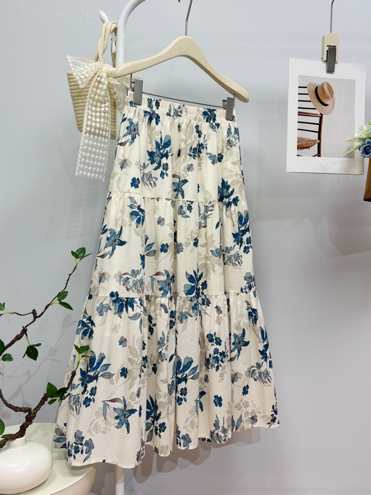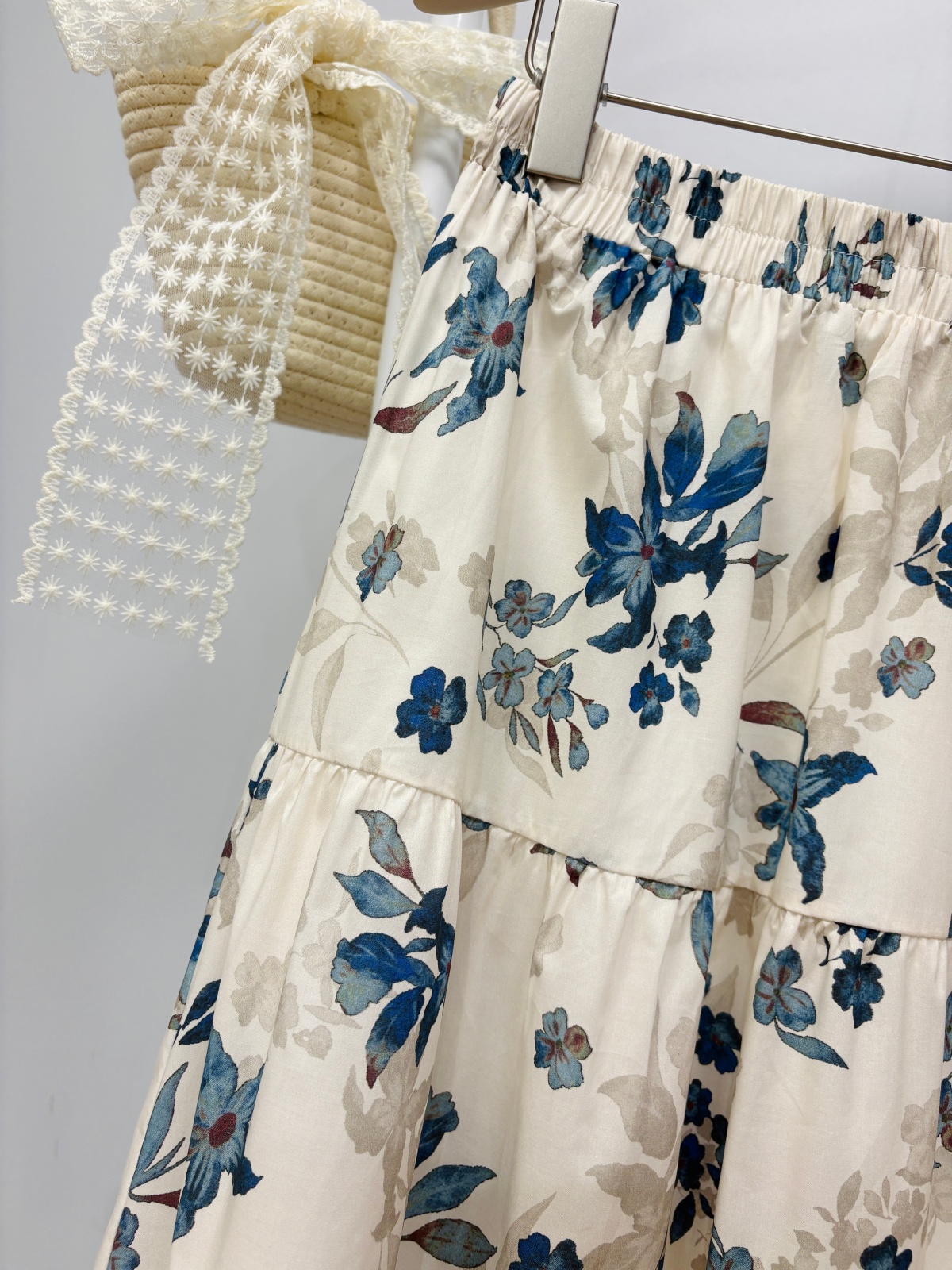 실사 봄 여름 새로운 2026 꽃무늬 면 소재 반신 스커트 여성 한 부서 부드러운 바람 작은 청신 중간 길이 A라인 스커트