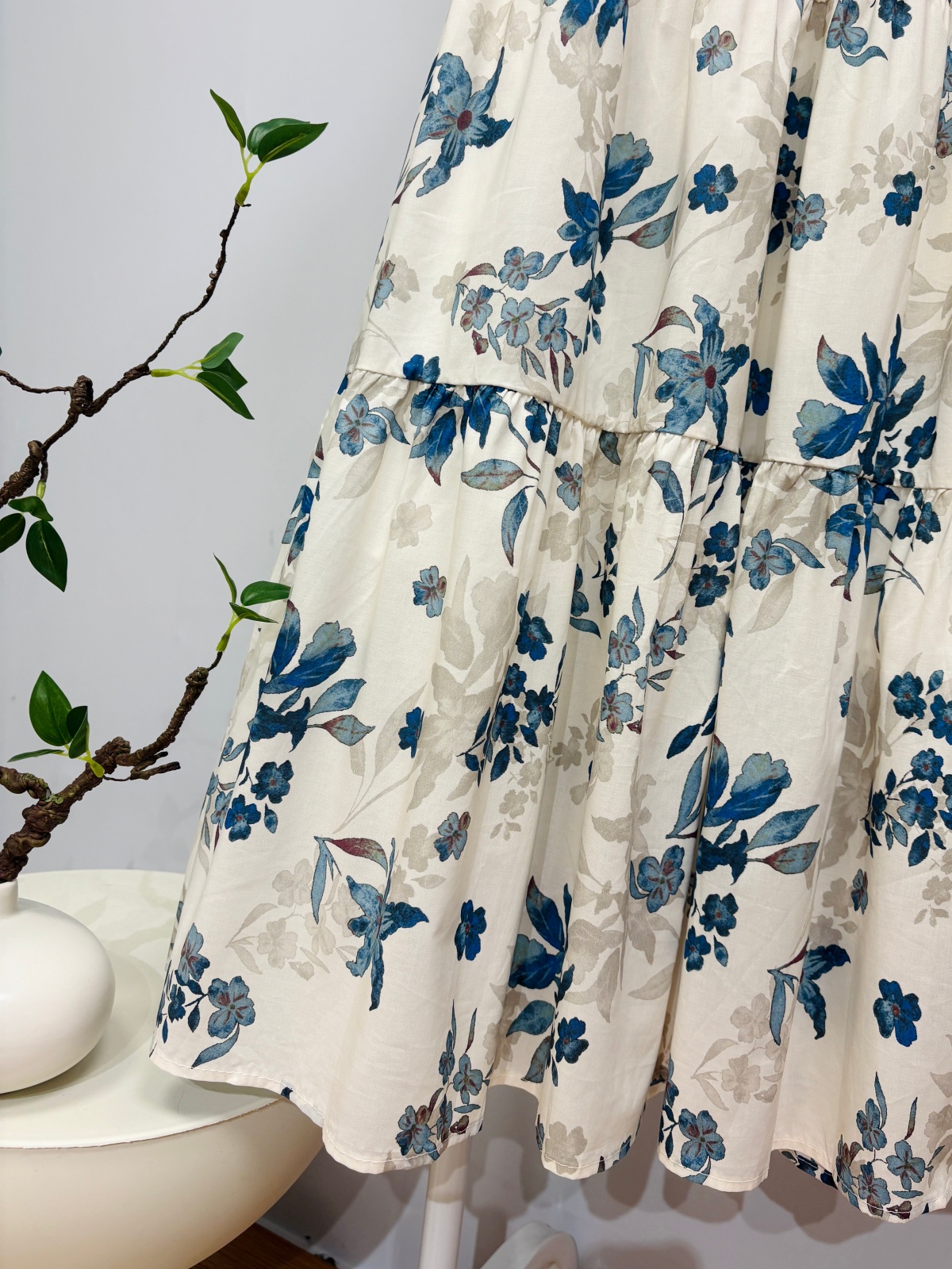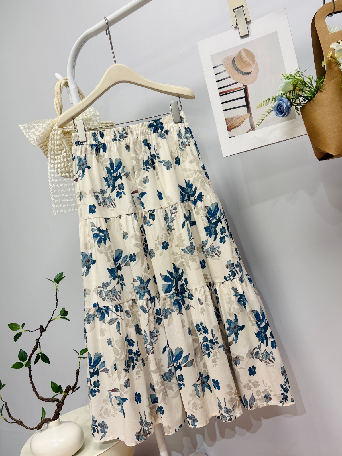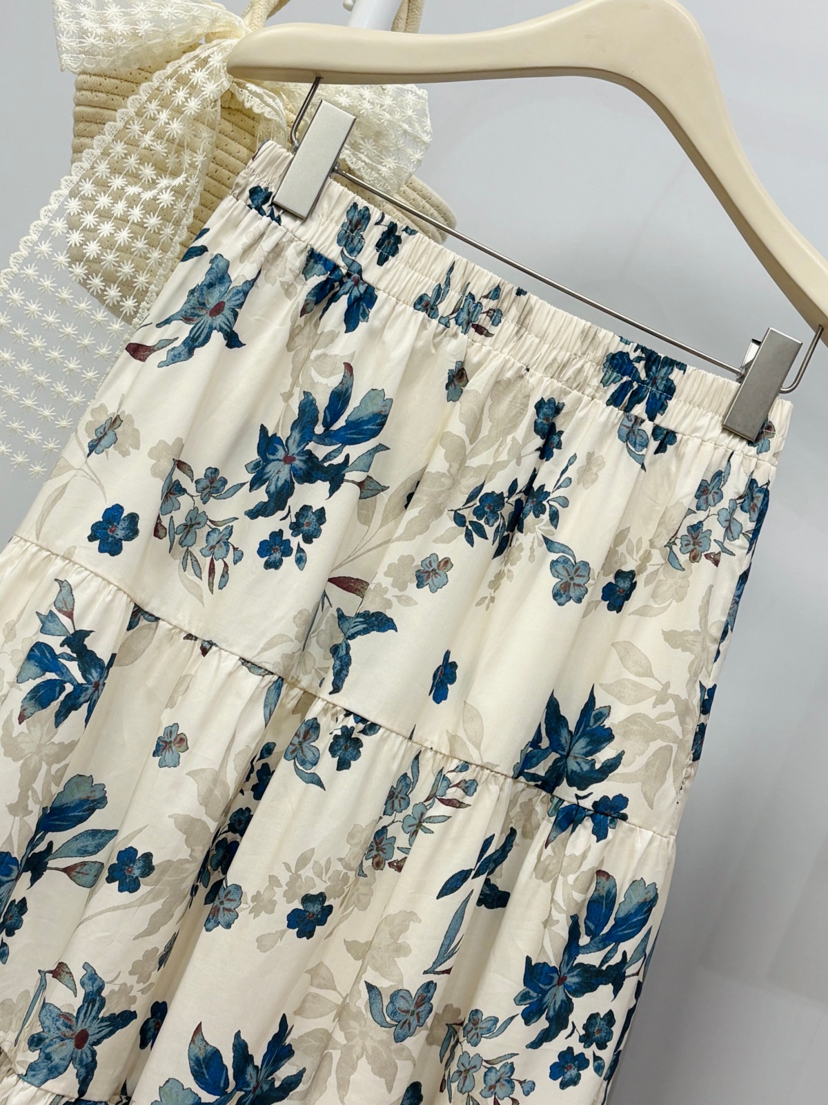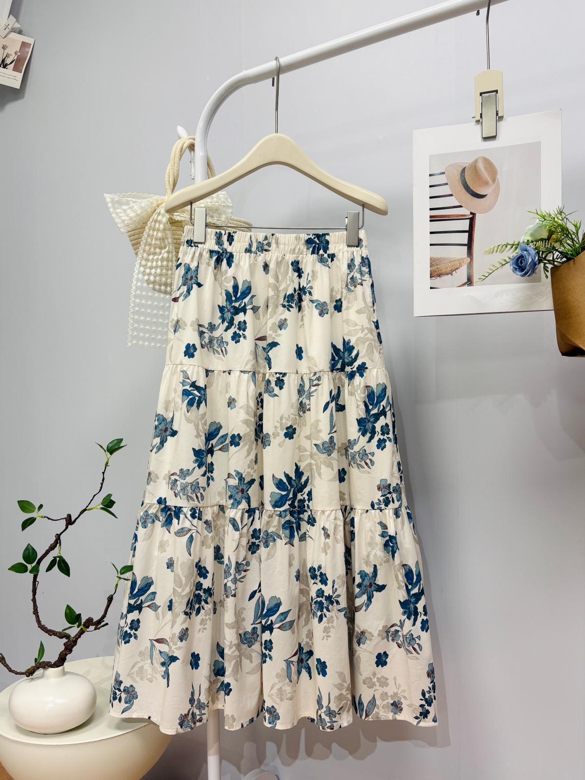 실사 봄 여름 새로운 2026 꽃무늬 면 소재 반신 스커트 여성 한 부서 부드러운 바람 작은 청신 중간 길이 A라인 스커트