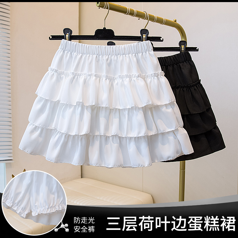 빅 사이즈 프릴 케이크 반신 스커트 여성 여름 발레 바람 하이웨이스트 한 마디 퍼프 짧은 치마 노출 방지 치마바지