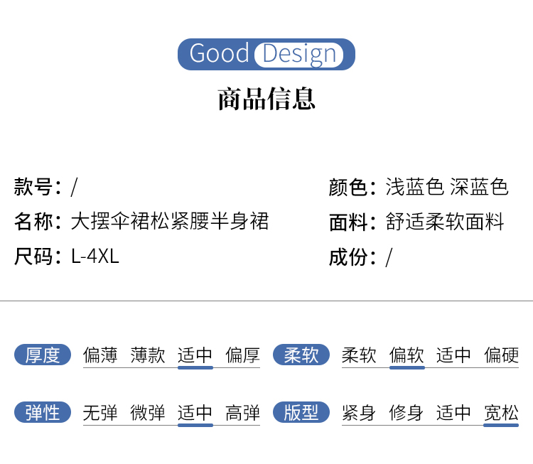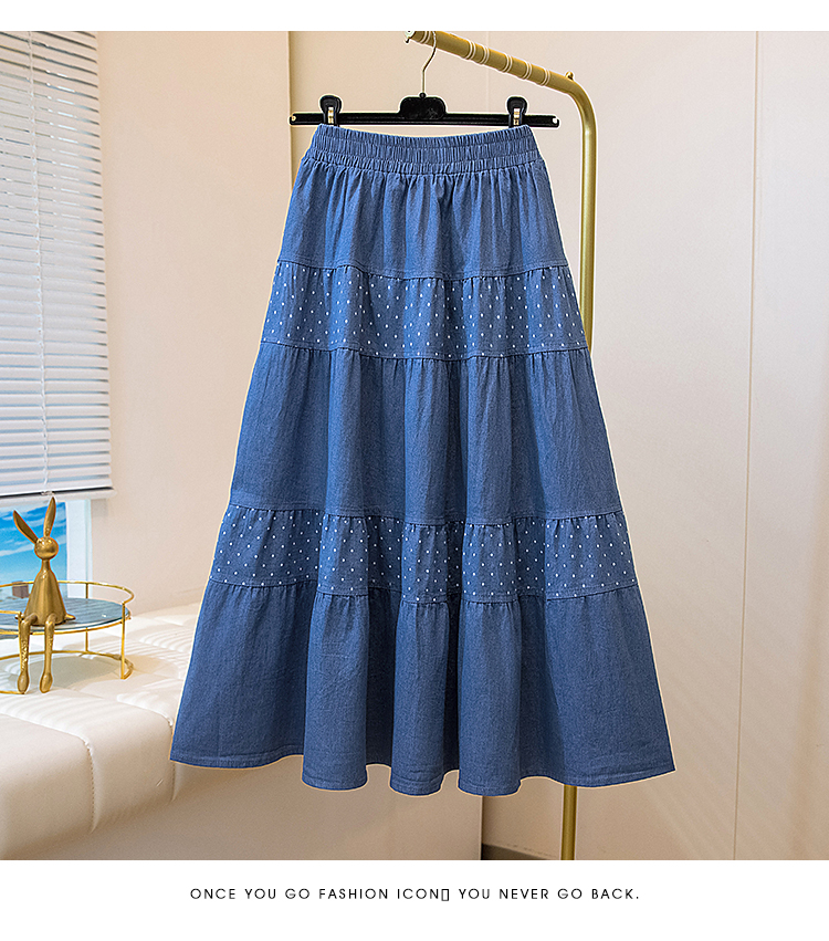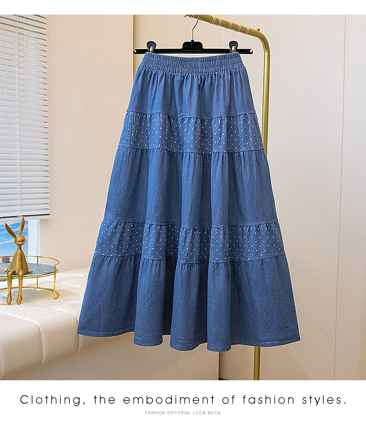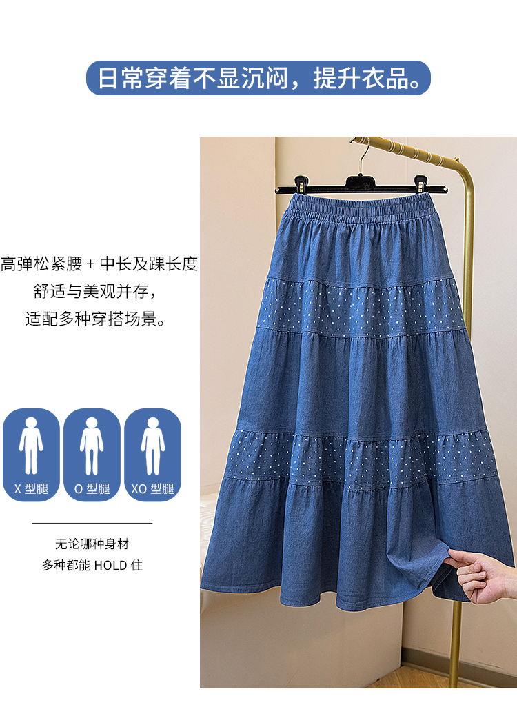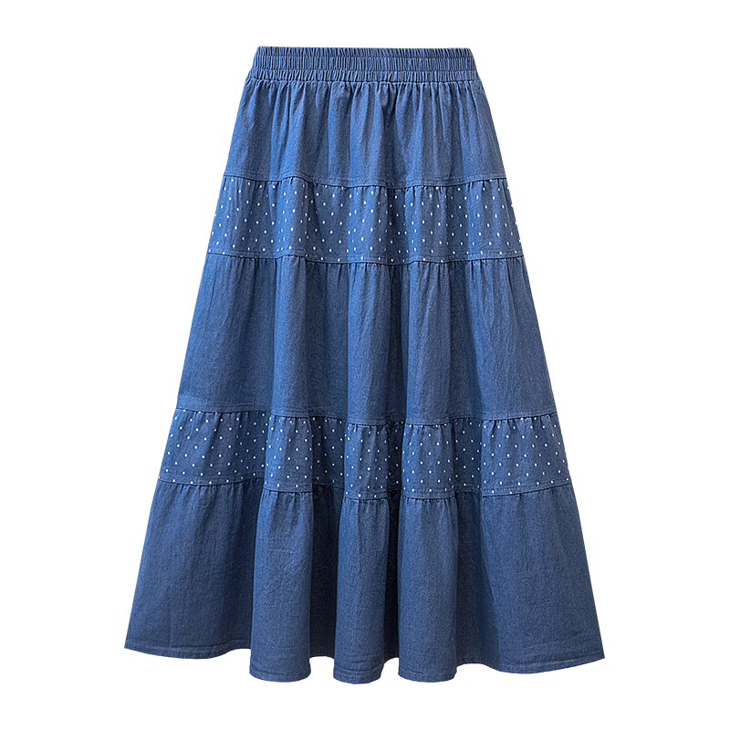 봄 여름 데님 반신 치마 한 마디 우산 치마 중간 길이 무릎 아래 루즈핏 하이웨이스트 XL 여성 의류 200 kg 지방 mm