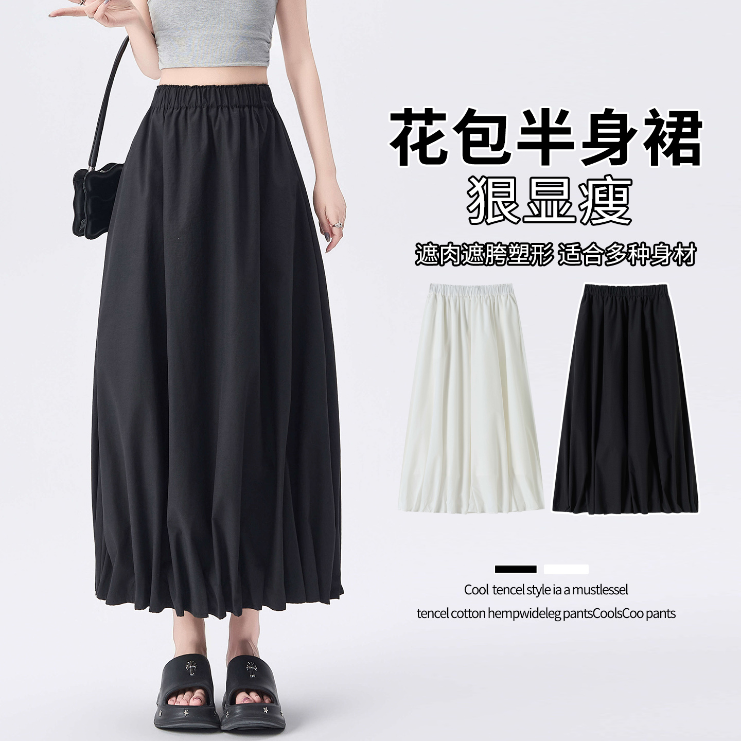 실사 2026 봄 여름 새로운 단색 다용도 중간 스커트 여성 하이웨이스트 슬림해 보이는 큰 진자 한 마디 롱 코트 우산 치마 반신 스커트