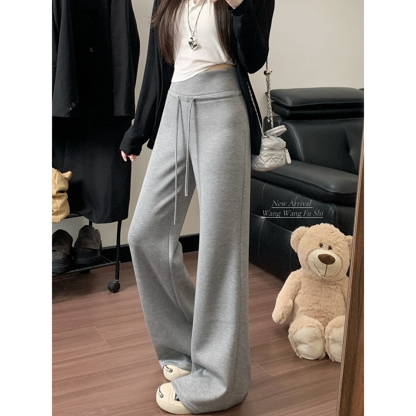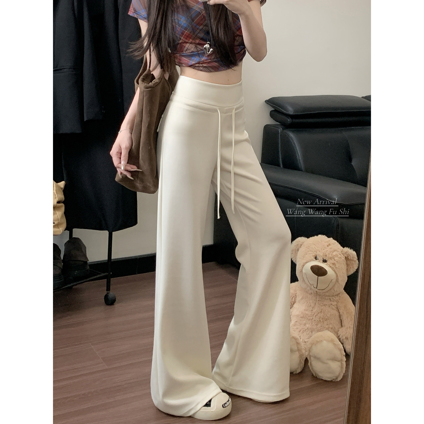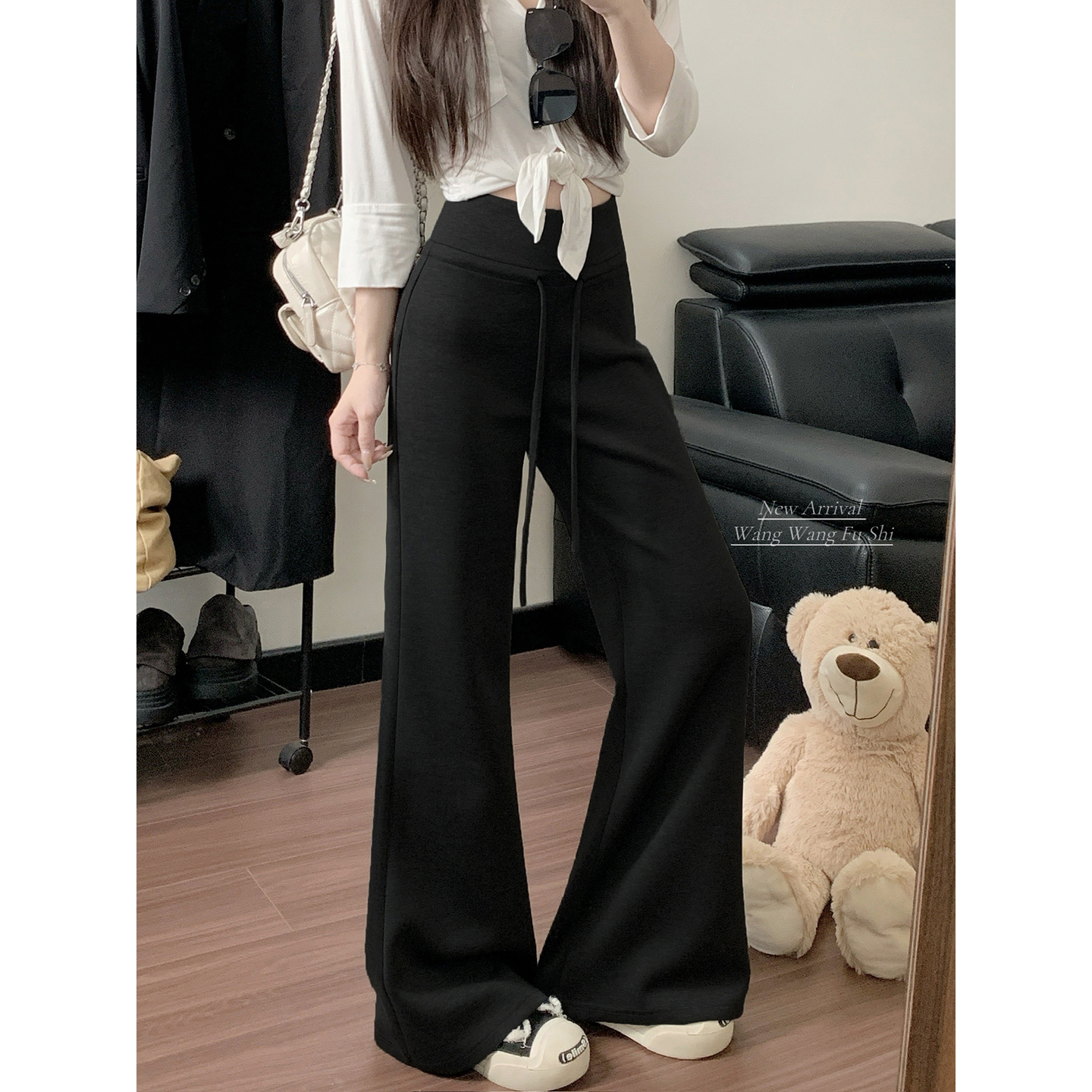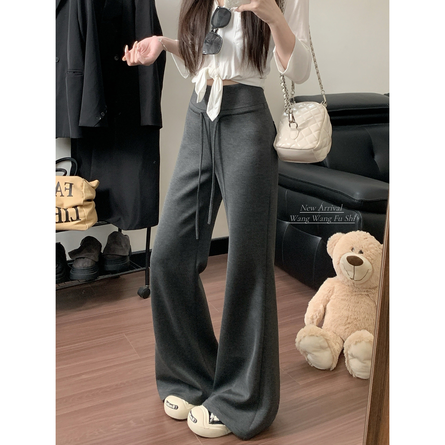 실사 2026 루즈핏 개성 정장 바지 캐주얼 바지 여성 와이드 레그 팬츠 하이웨이스트 도루 센스 바닥 청소 바지