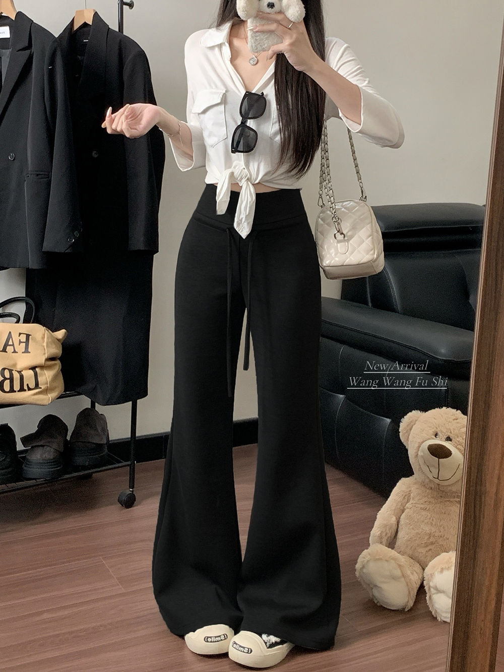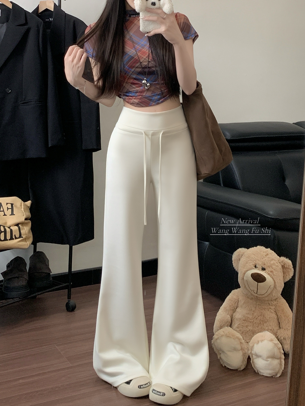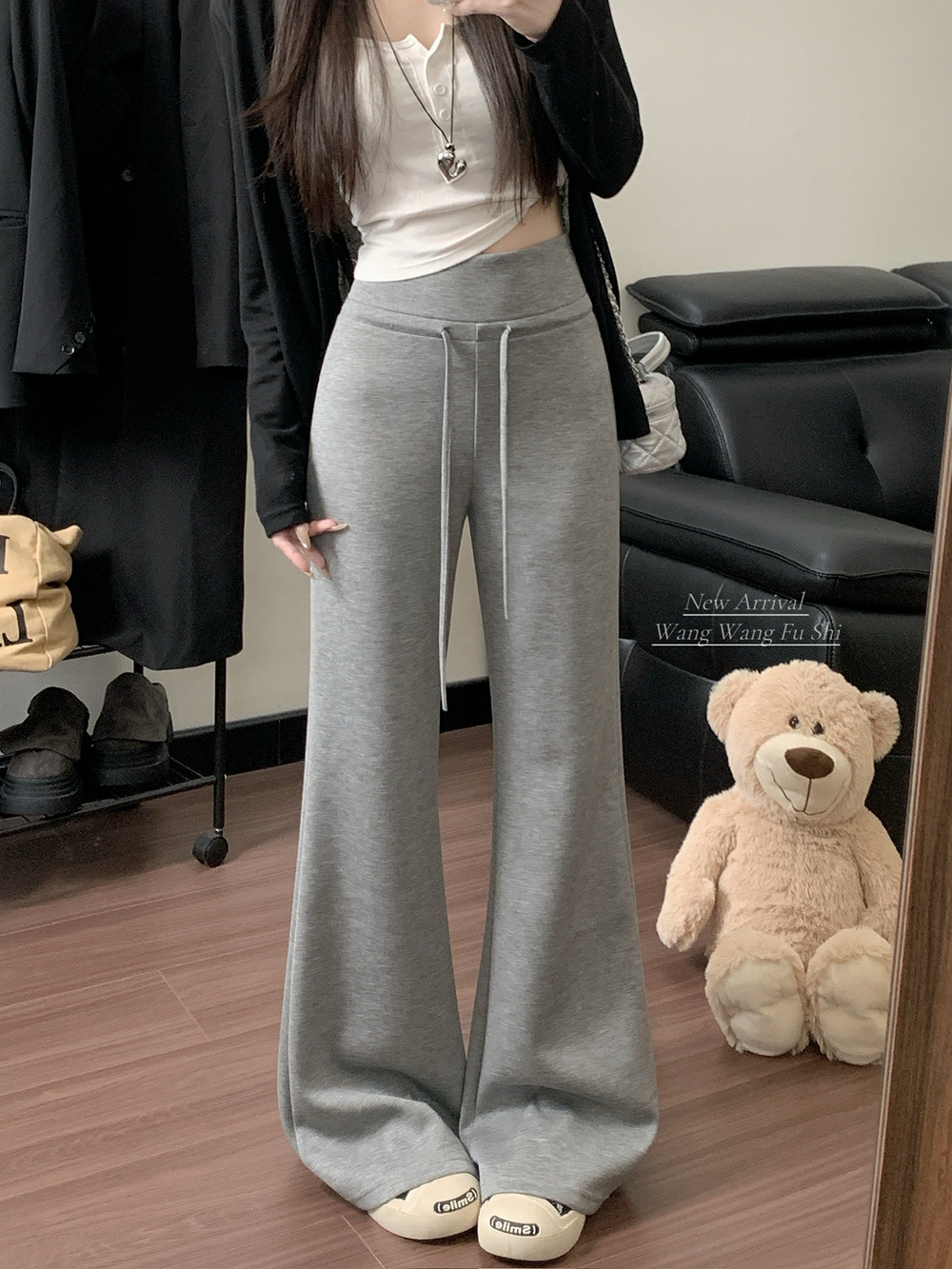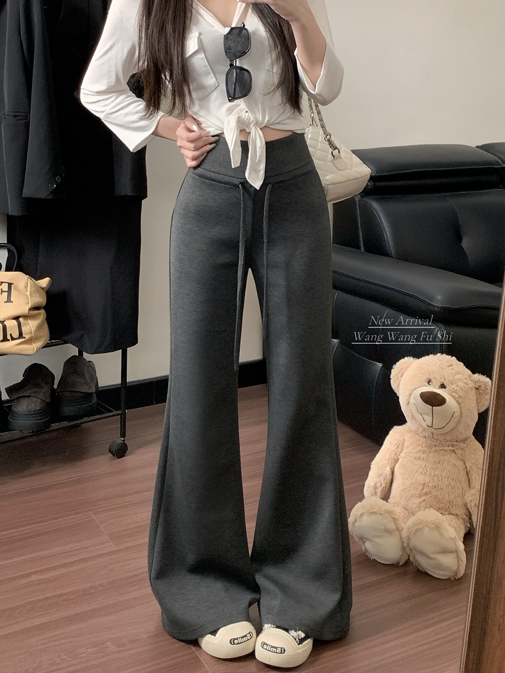 실사 2026 루즈핏 개성 정장 바지 캐주얼 바지 여성 와이드 레그 팬츠 하이웨이스트 도루 센스 바닥 청소 바지