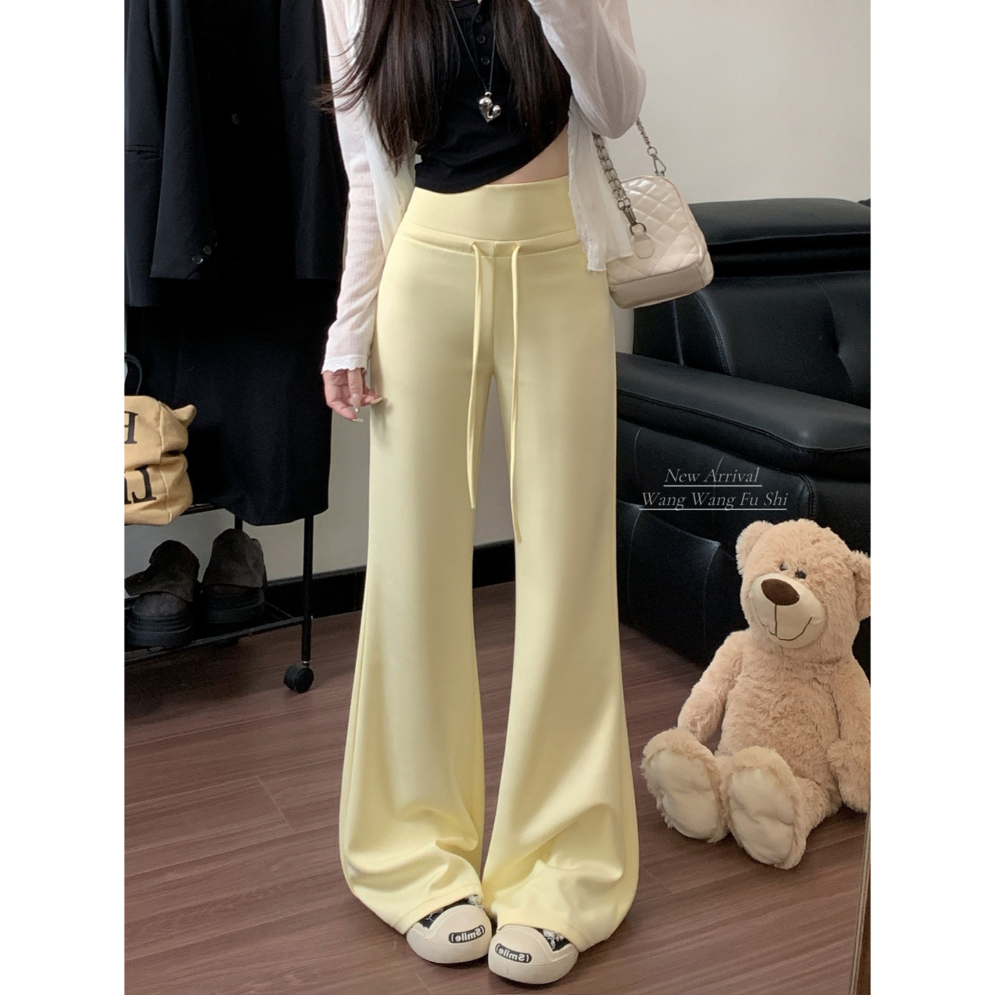 실사 2026 새로운 와이드 레그 팬츠 펌프 로프 레이스업 허리밴드 캐주얼 루즈핏 웨이 바지 여성