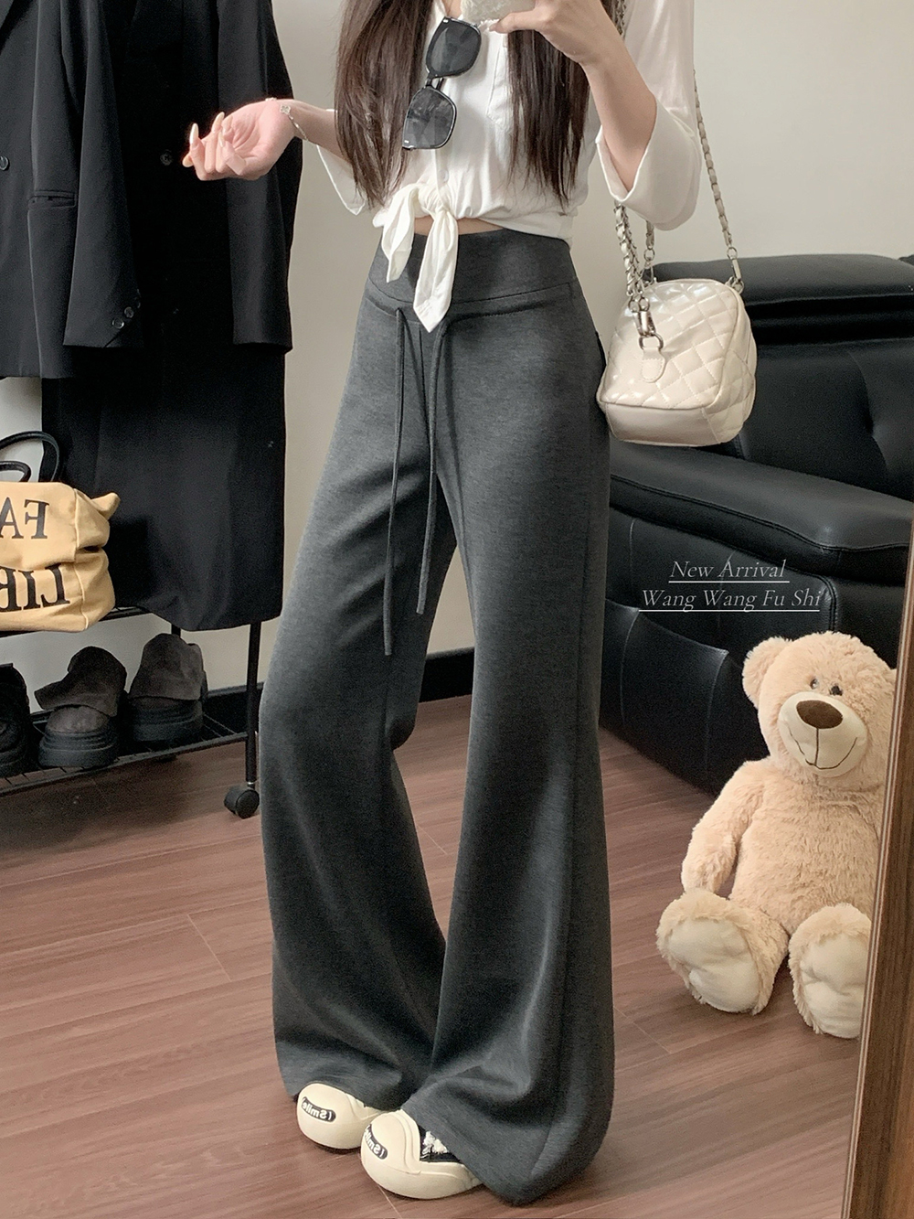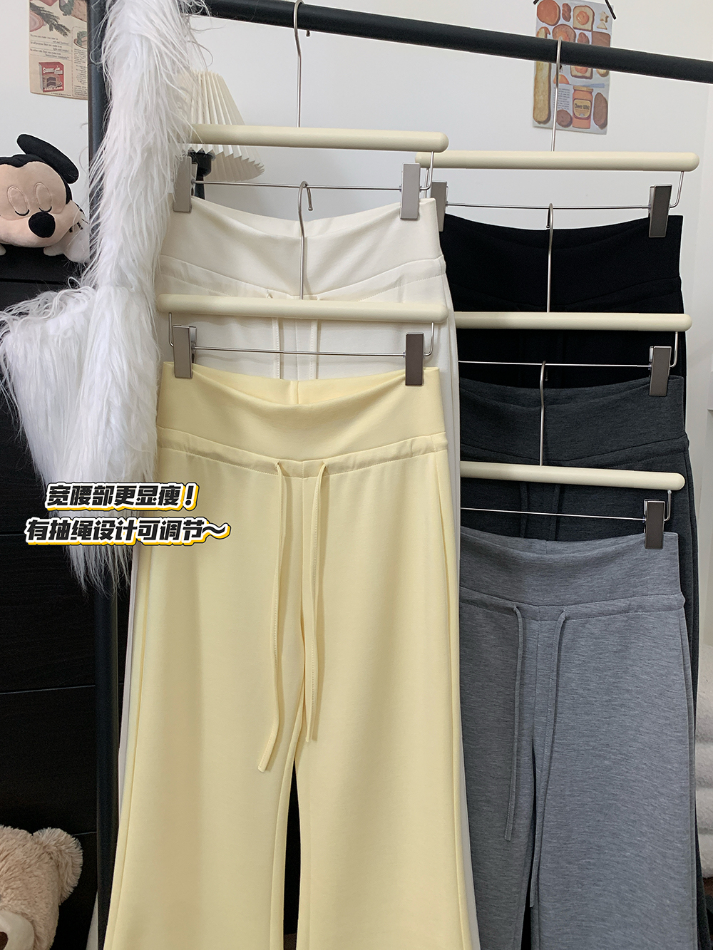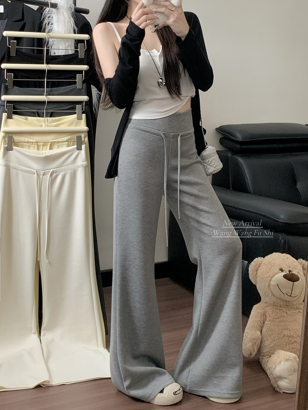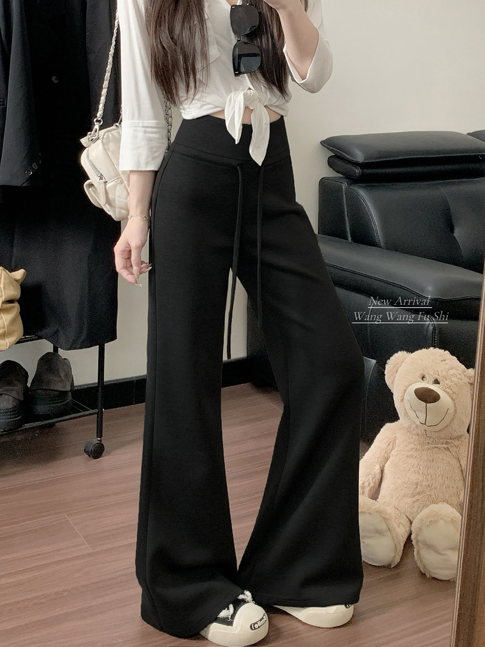 실사 새로운 허리밴드 슬림해 보이는 캐주얼 바지 여성 루즈핏 와이드 레그 팬츠