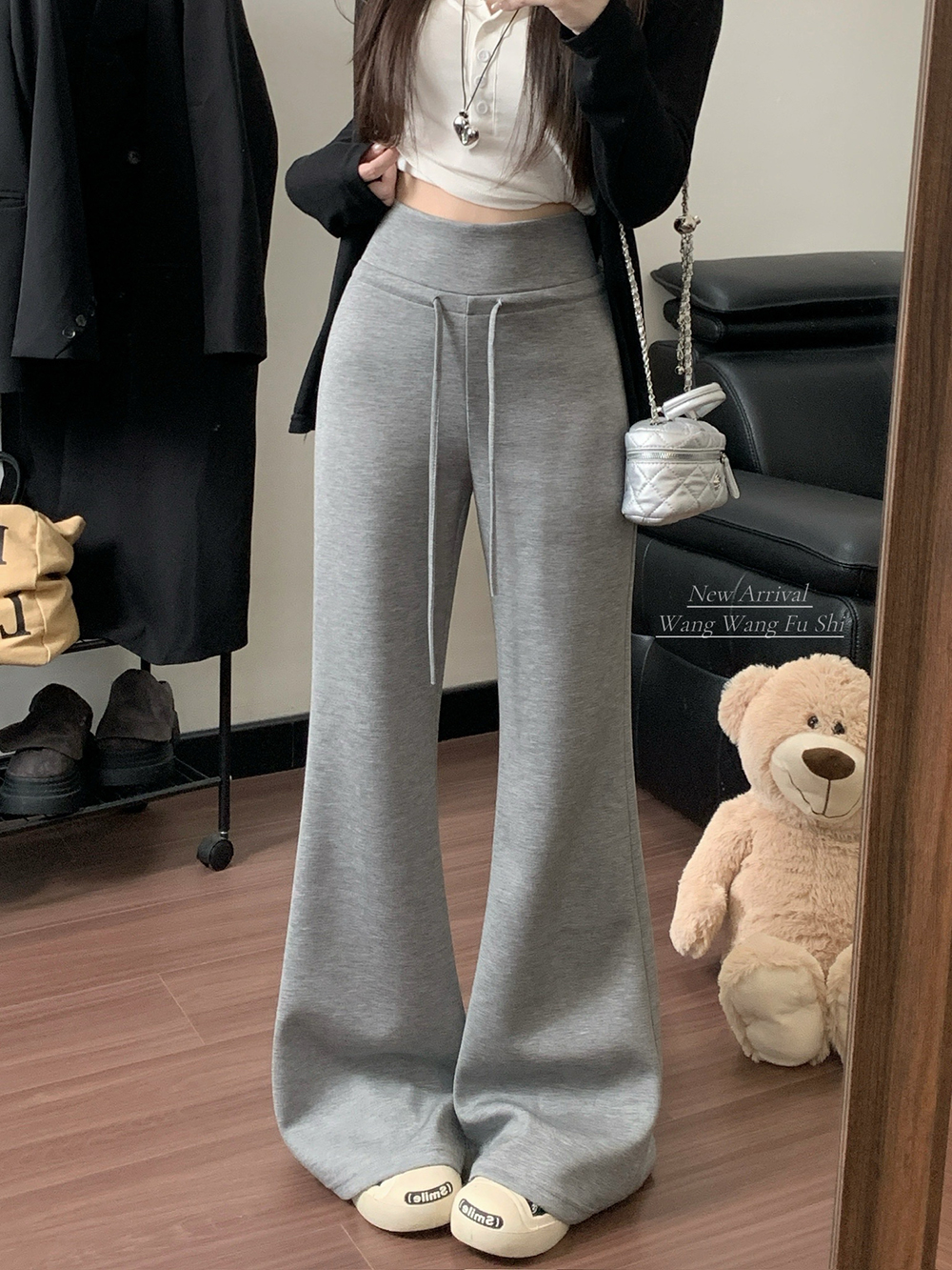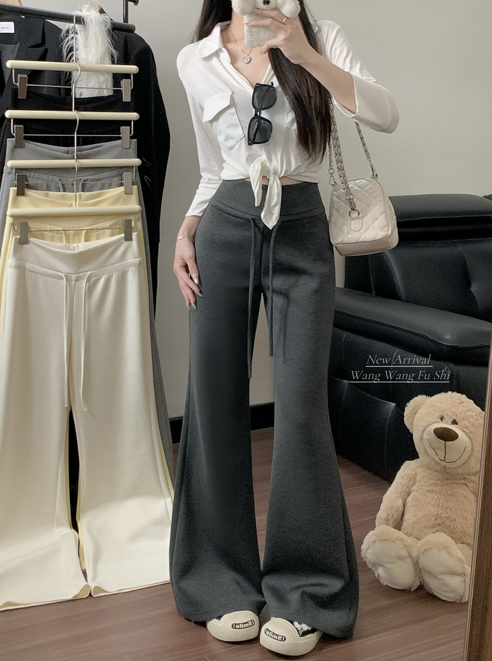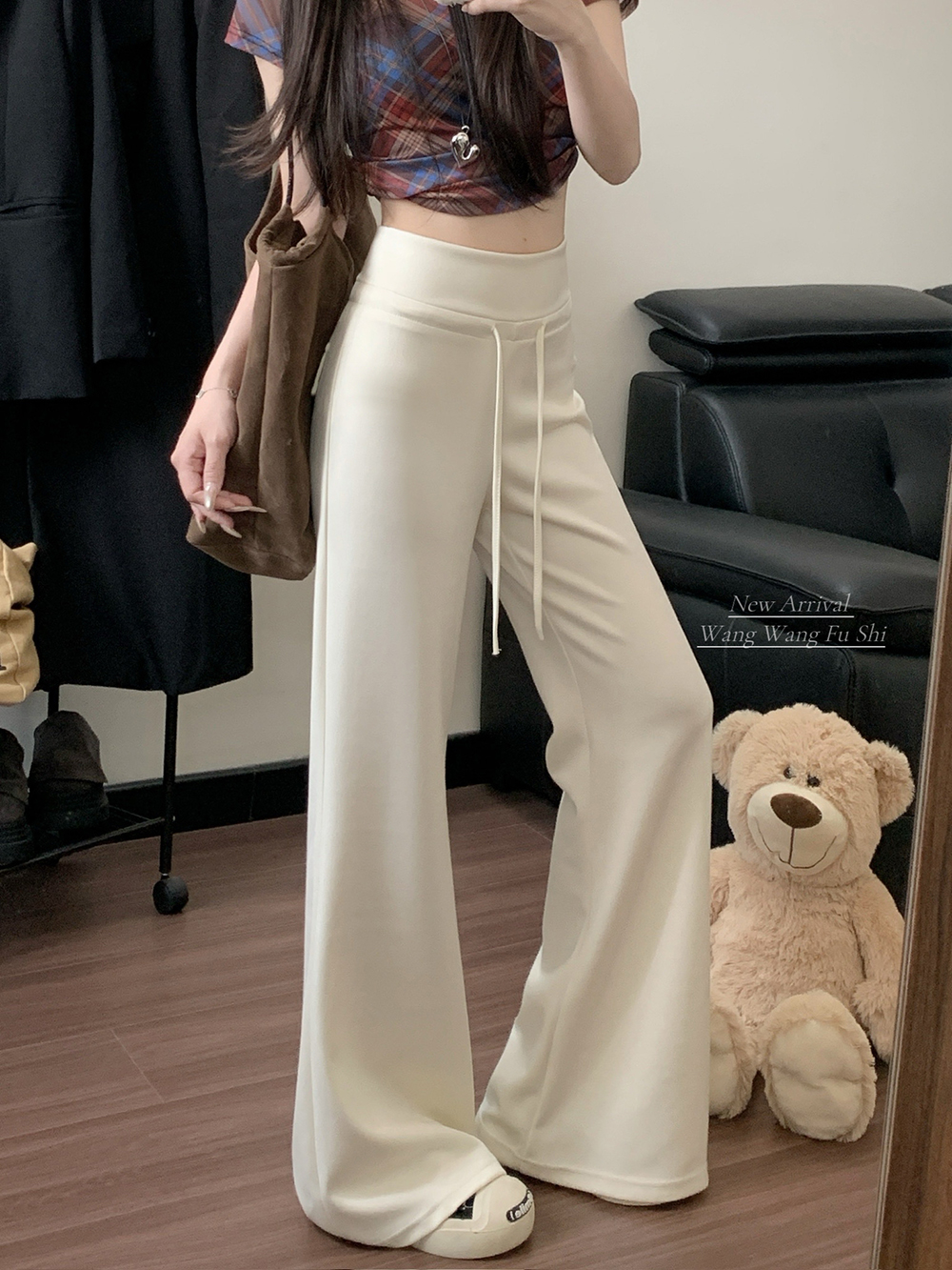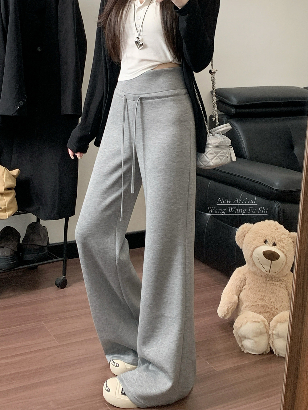 실사 새로운 허리밴드 슬림해 보이는 캐주얼 바지 여성 루즈핏 와이드 레그 팬츠
