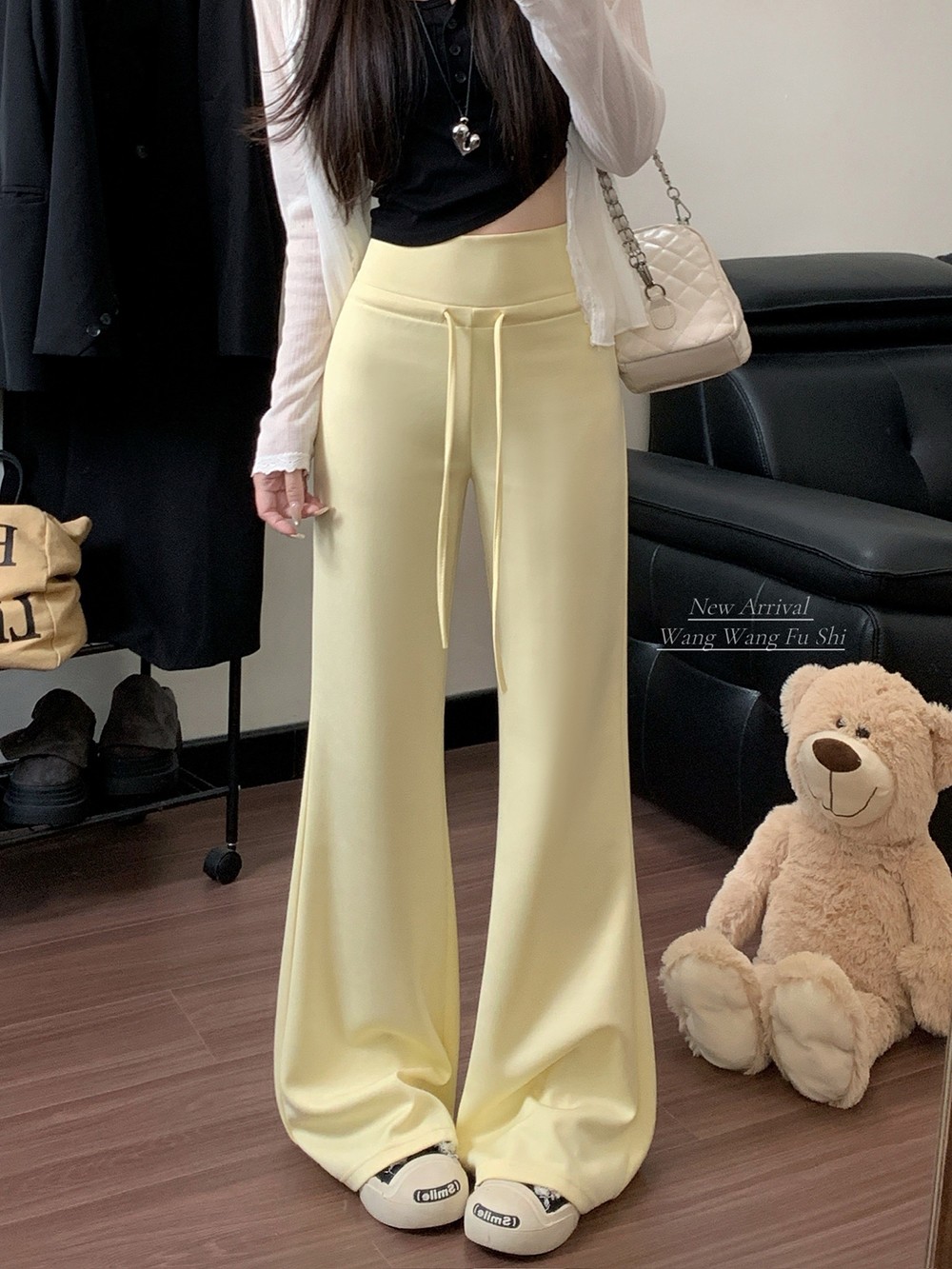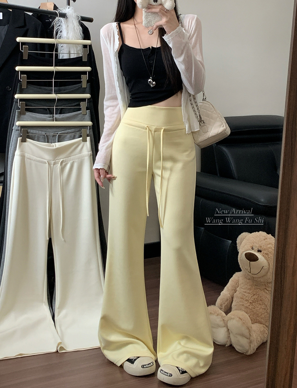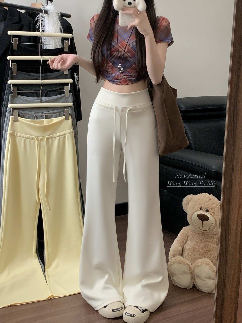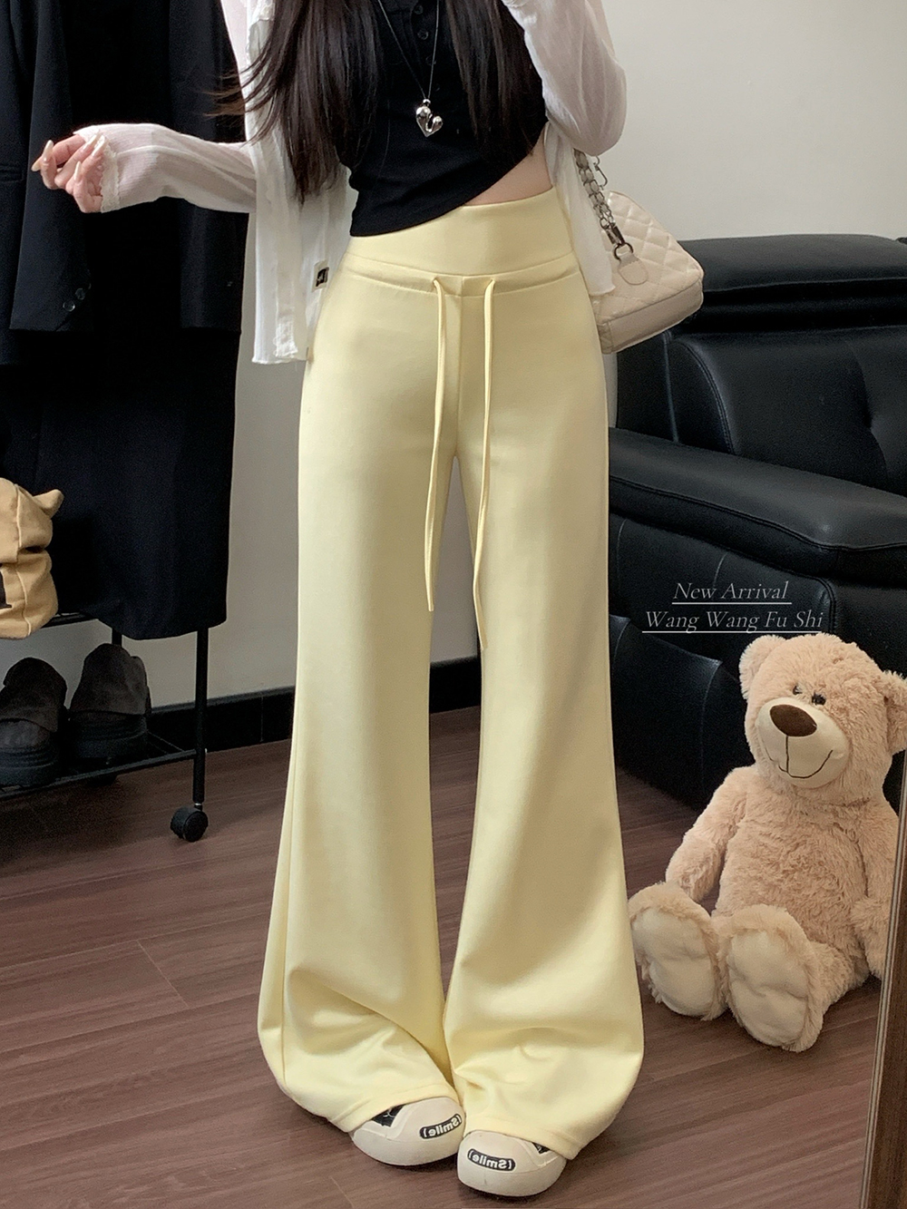 실사 새로운 허리밴드 슬림해 보이는 캐주얼 바지 여성 루즈핏 와이드 레그 팬츠