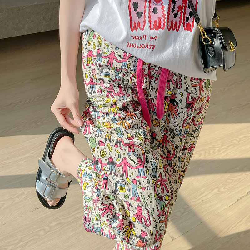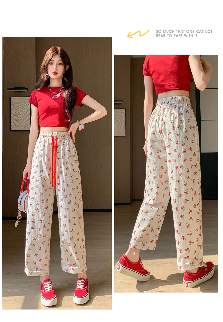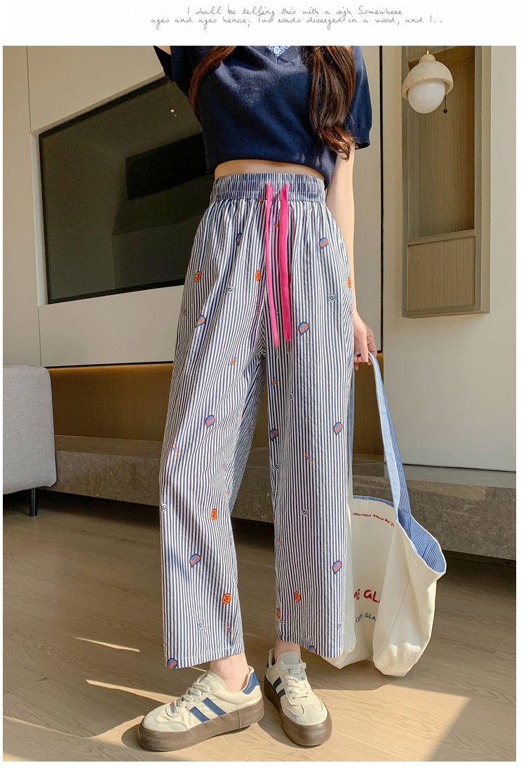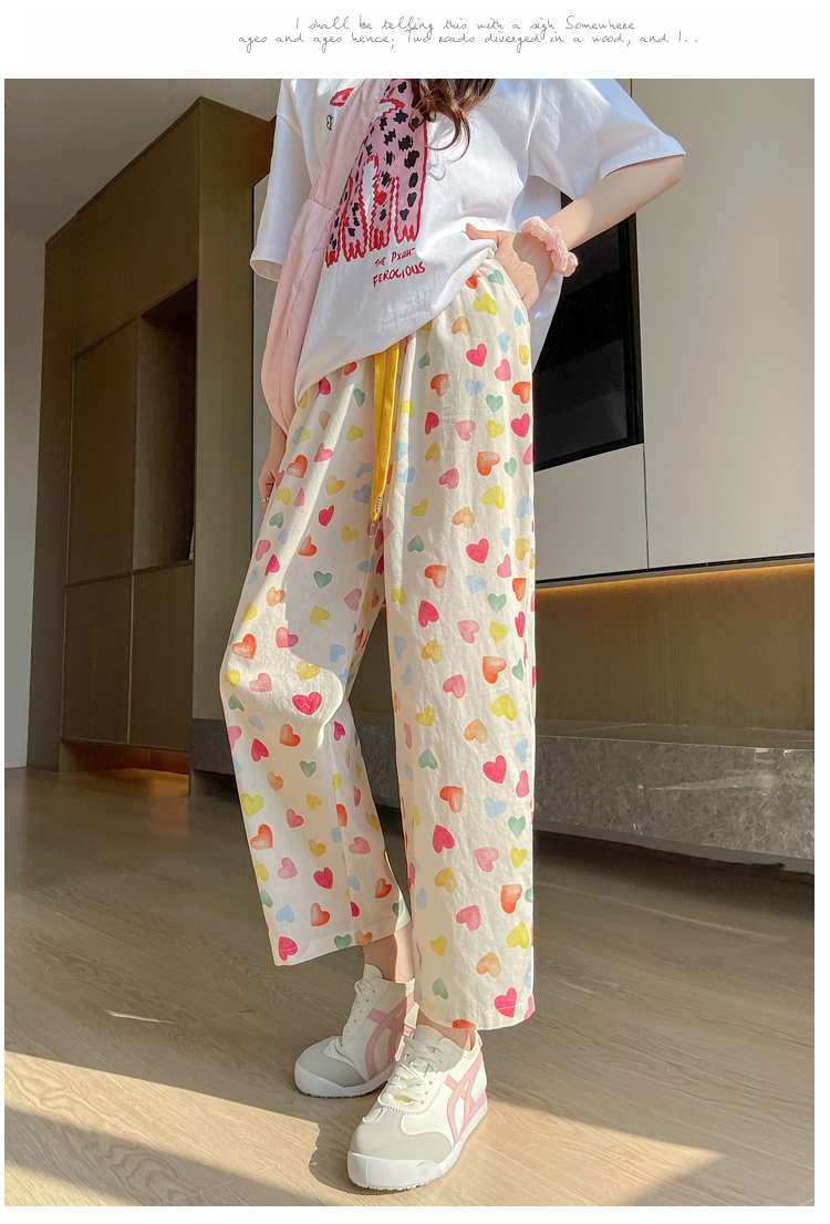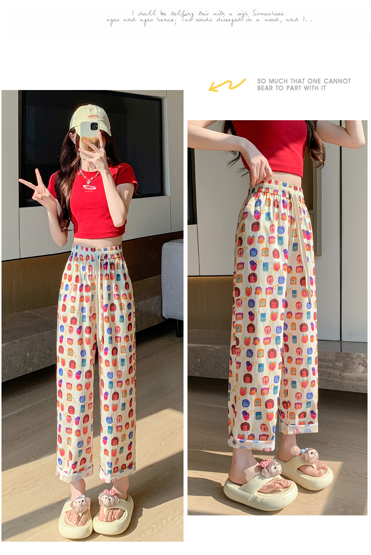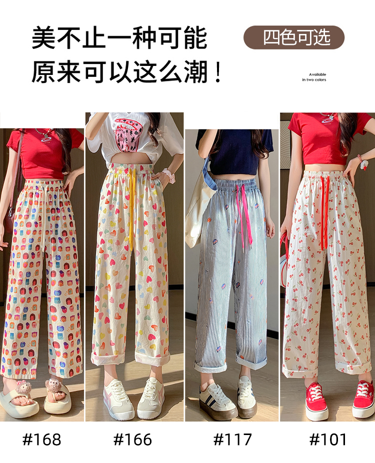 실사 여름 새로운 워시 물 면 밴딩 하이웨이스트 슬림해 보이는 루즈핏 캐주얼 스트레이트 도루 센스 와이드 레그 팬츠 9부 바지 여성