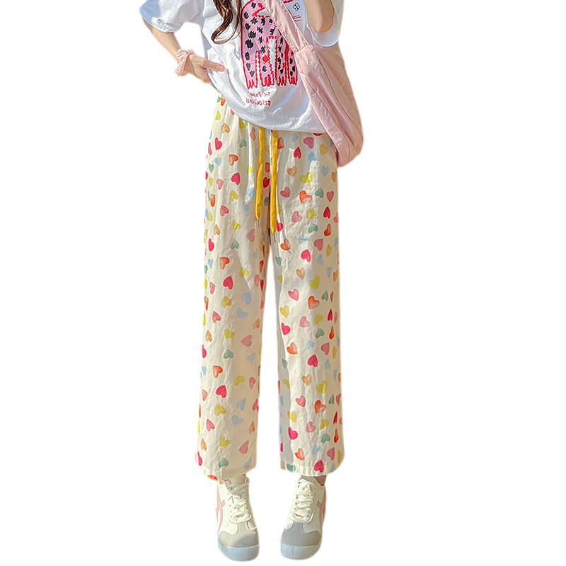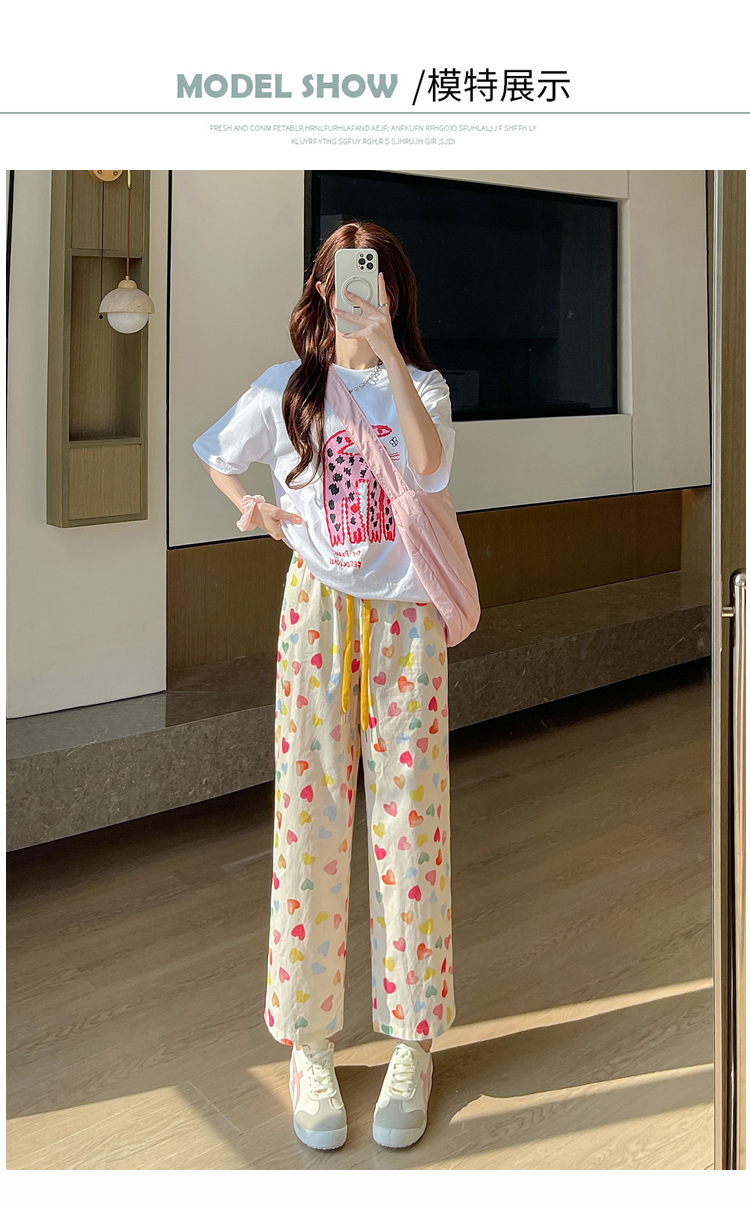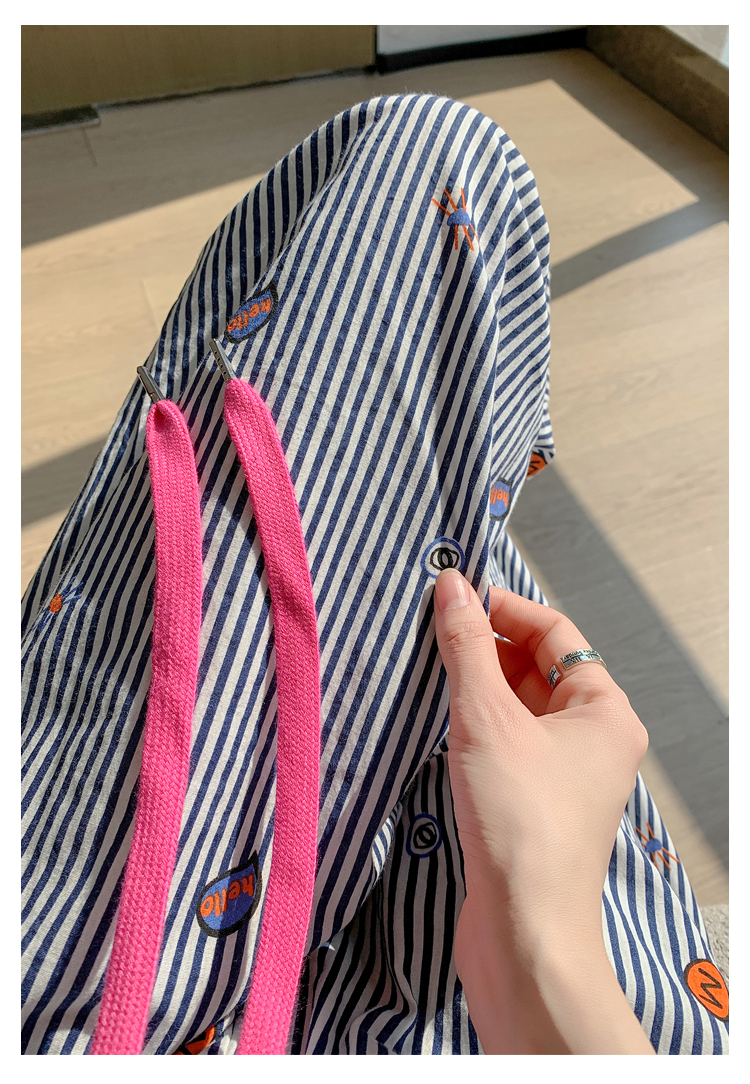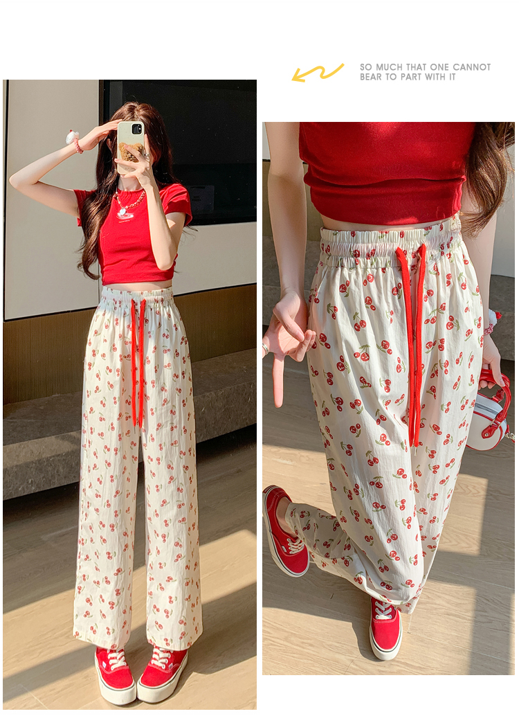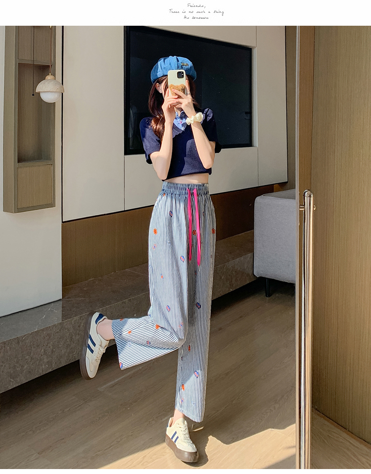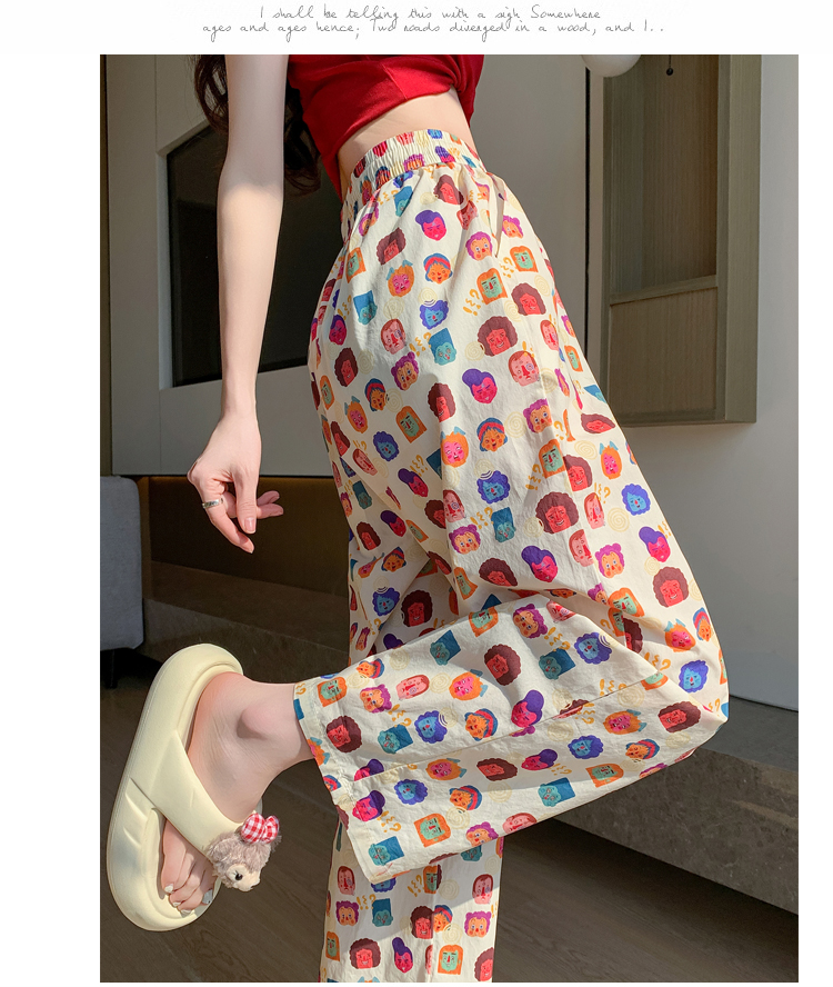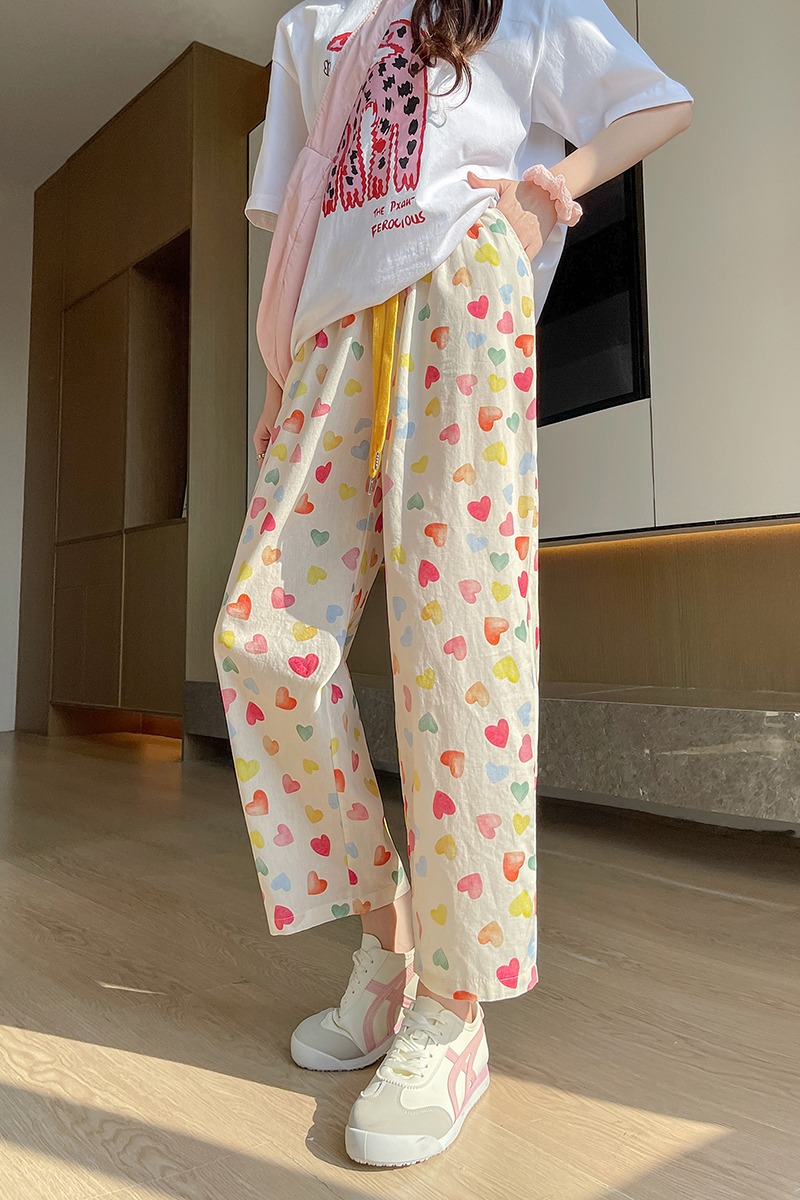 실사 여름 새로운 워시 물 면 밴딩 하이웨이스트 슬림해 보이는 루즈핏 캐주얼 스트레이트 도루 센스 와이드 레그 팬츠 9부 바지 여성