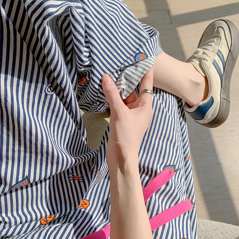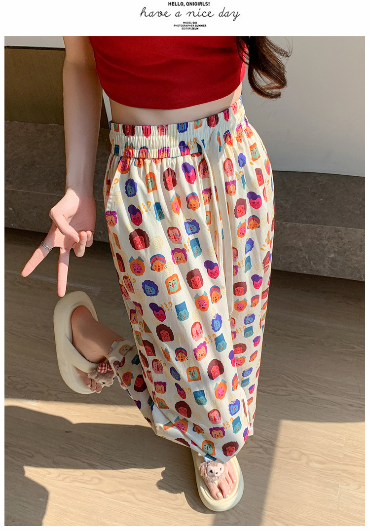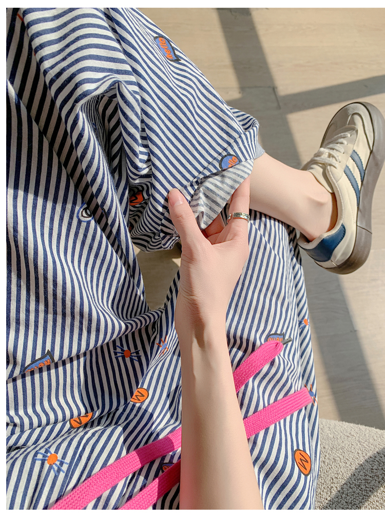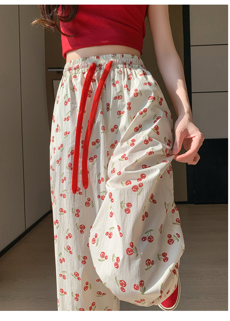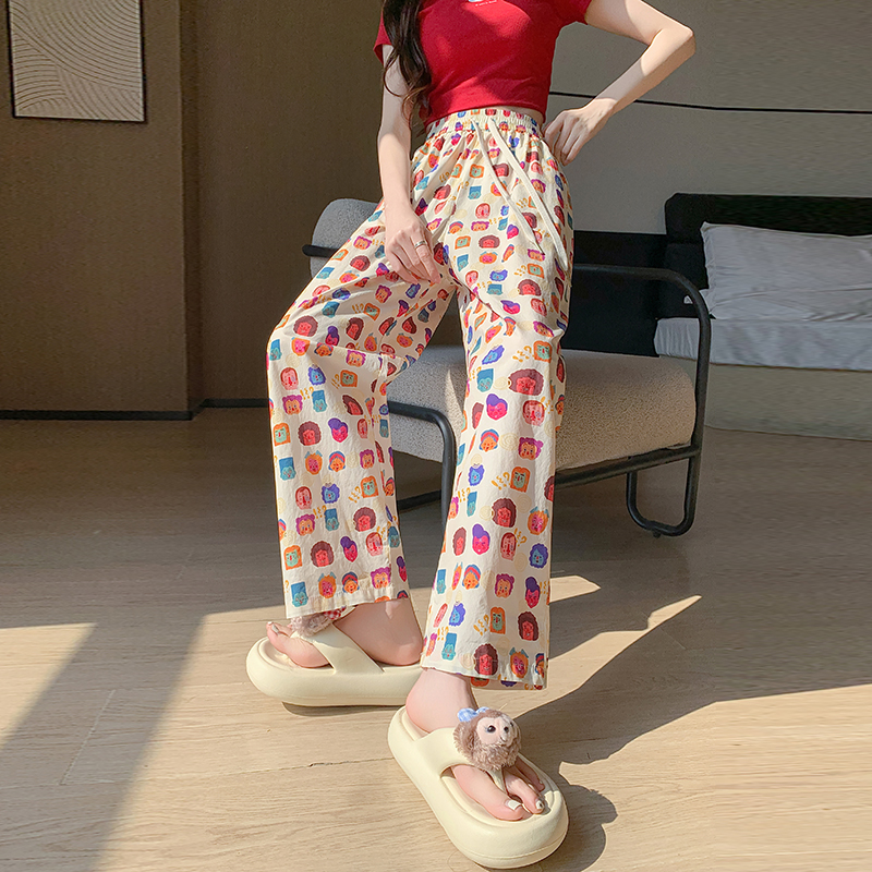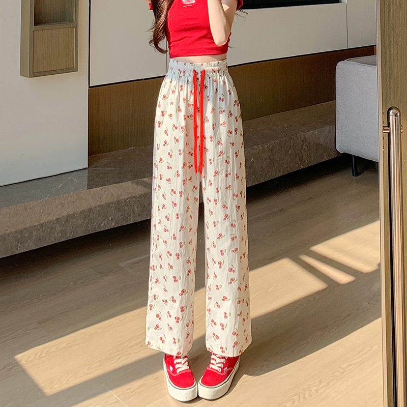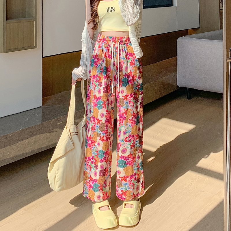 실사 여름 새로운 워시 물 면 밴딩 하이웨이스트 슬림해 보이는 루즈핏 캐주얼 스트레이트 도루 센스 와이드 레그 팬츠 9부 바지 여성