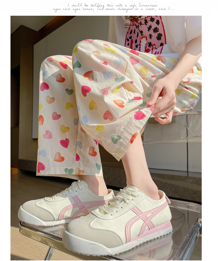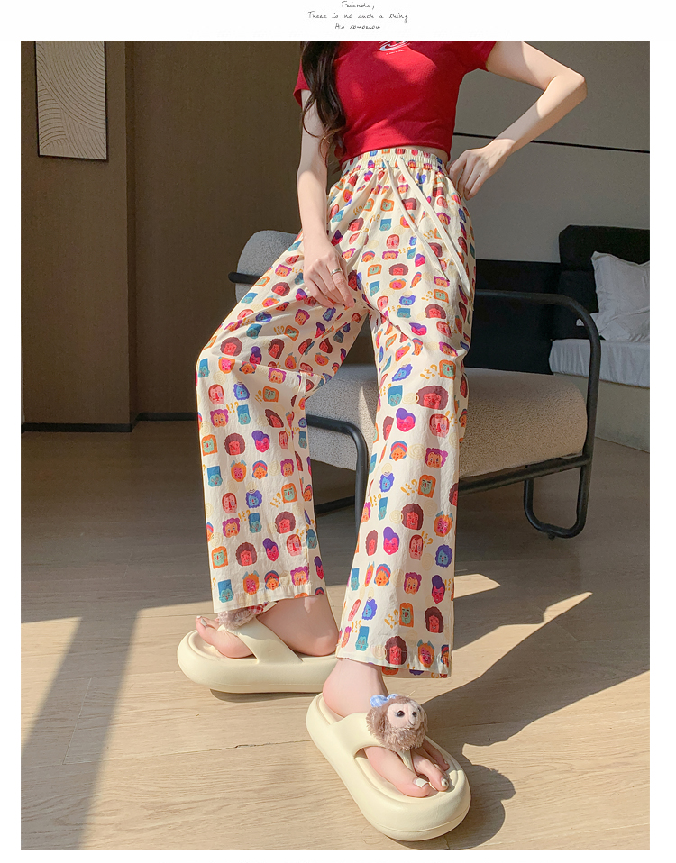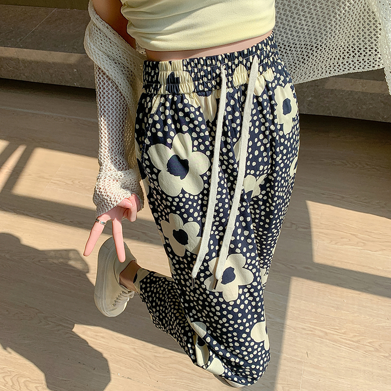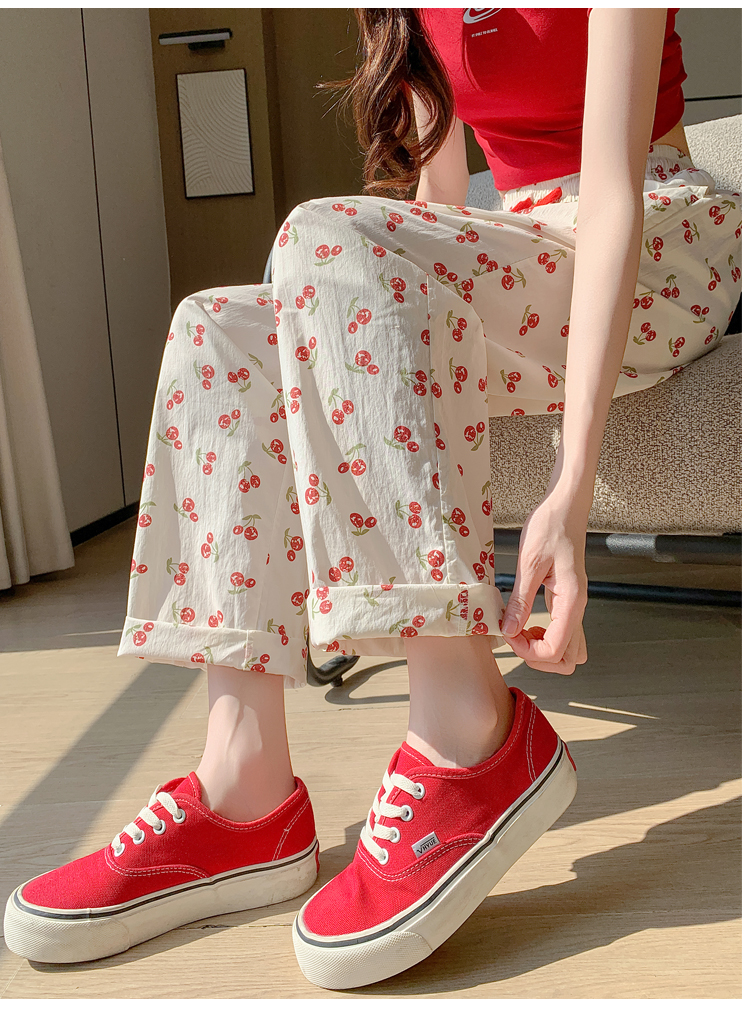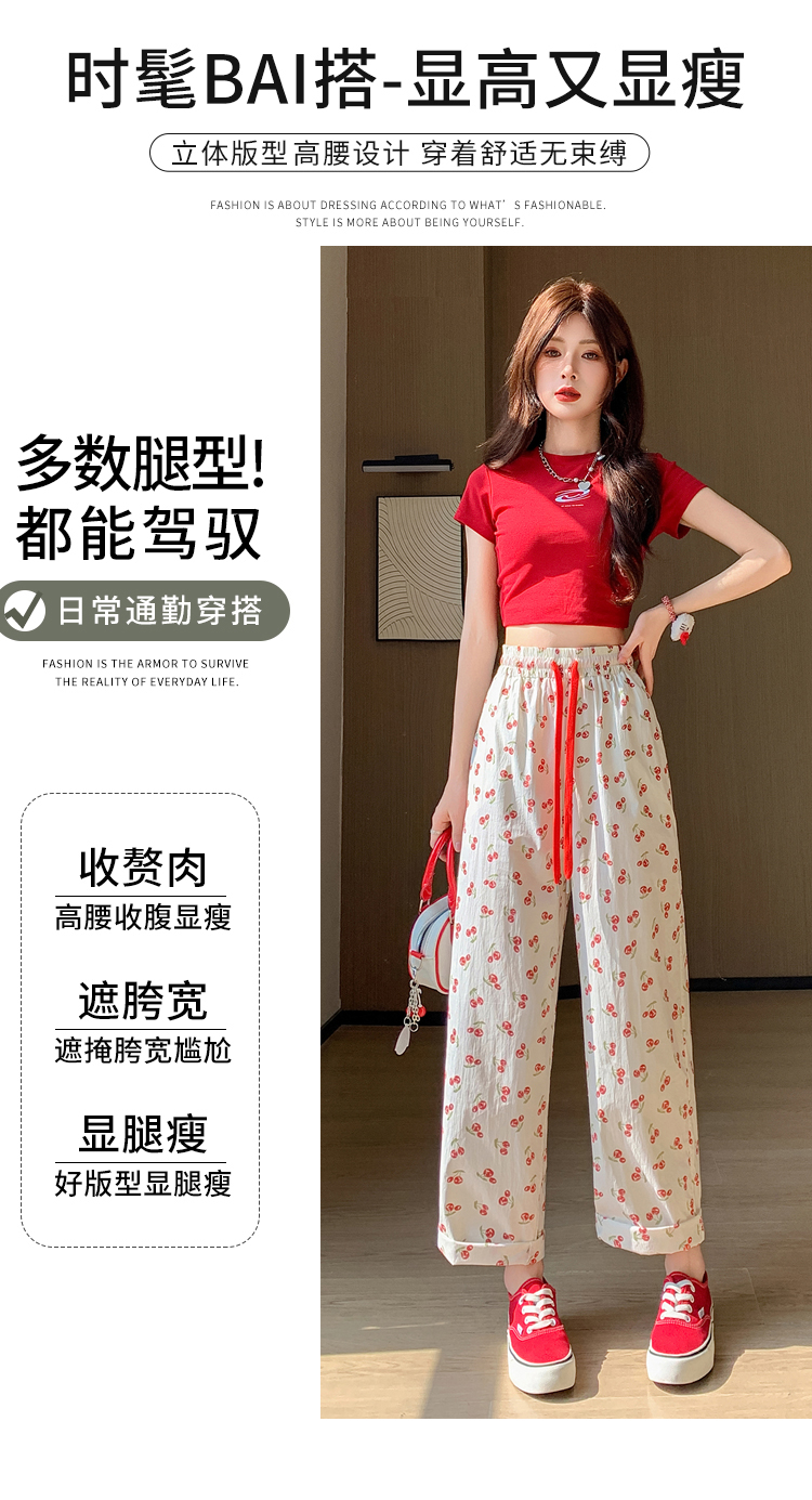 실사 봄 여름 새로운 목이버섯 레이스 레이스 넓은 다리 9부 바지 여성 루즈핏 얇은 스타일 작은 키 자외선 차단 캐주얼 바지