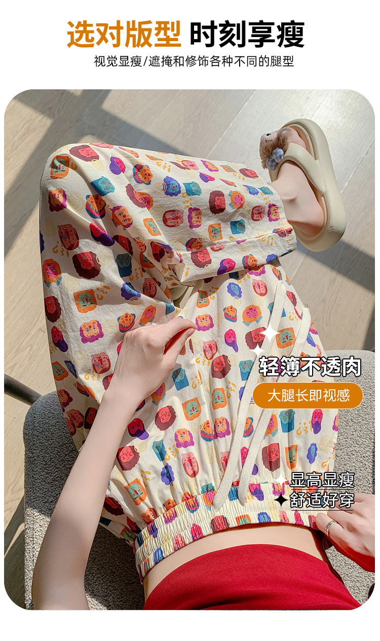실사 여름 새로운 얇은 스타일 워시 물 면 풍선 바지 할란 스트레이트 속도 건조한 하이웨이스트 작은 키 캐주얼 바지 여성