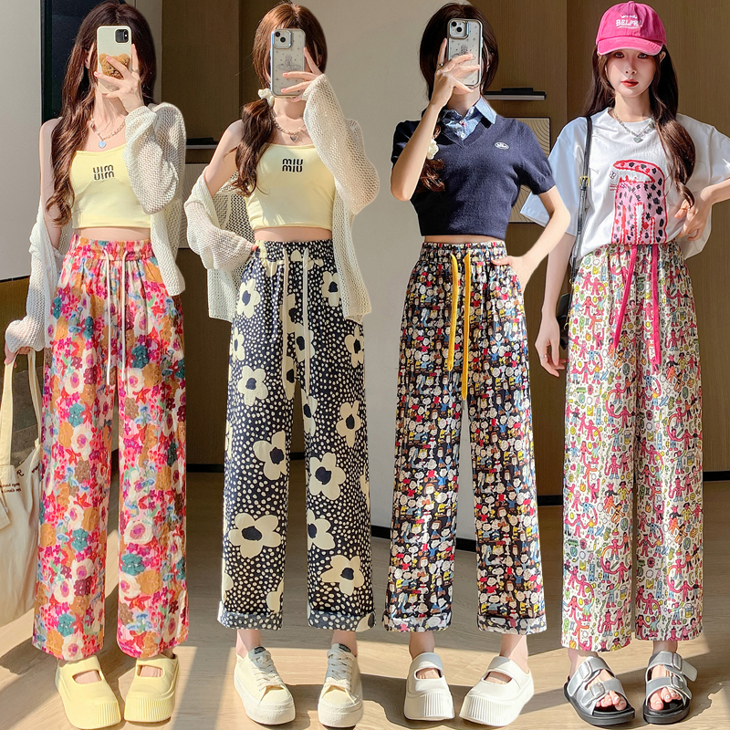 실사 얼음 실크 면 린넨 바지 펌프 로프 와이드 레깅스 바지 여름 도루 하이웨이스트 루즈핏 느긋한 바람 캐주얼 스트레이트 바닥 청소 바지