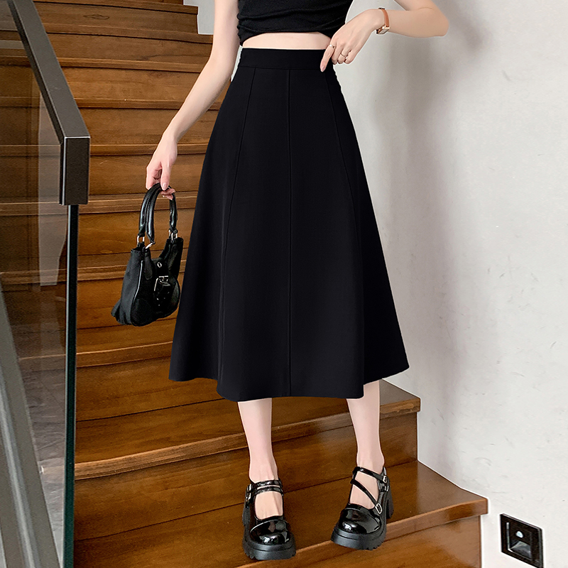 봄 여름 새로운 중간 길이 정장 A라인 스커트 여성 의류 새로운 하이웨이스트 우산 치마 단색 다용도