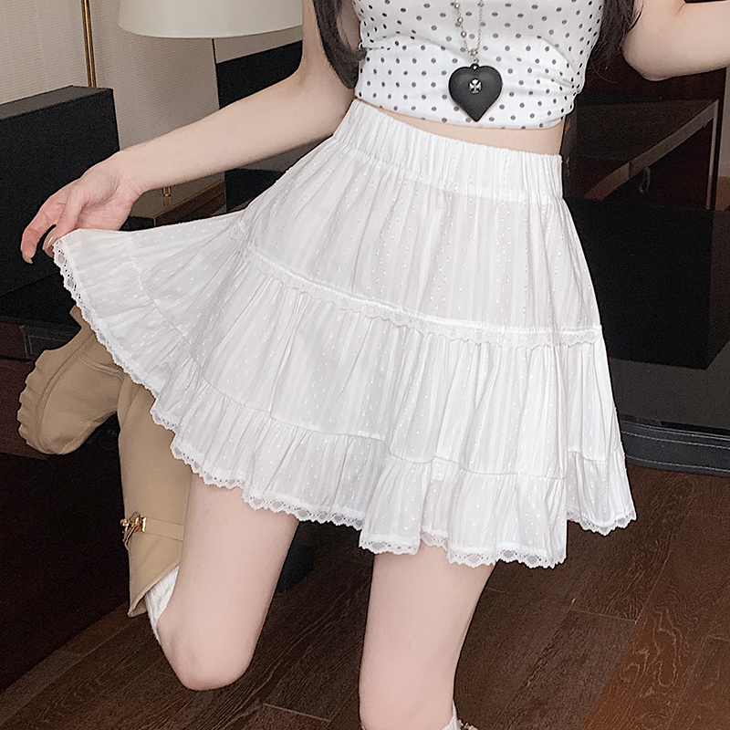 실사 레트로 소녀 센스 식물 플러시 도트 무늬 하이웨이스트 슬림해 보이는 반신 스커트 여성 한 마디 미니 스커트