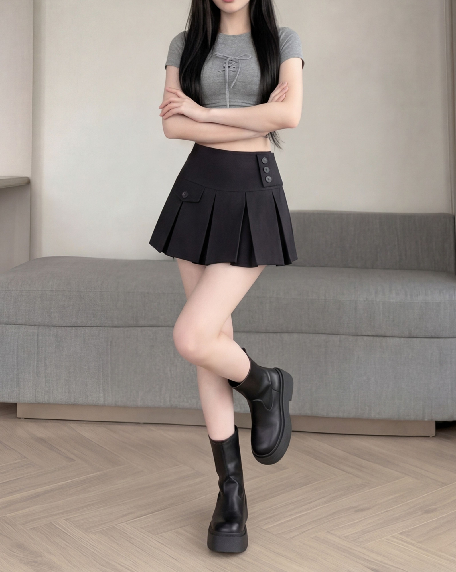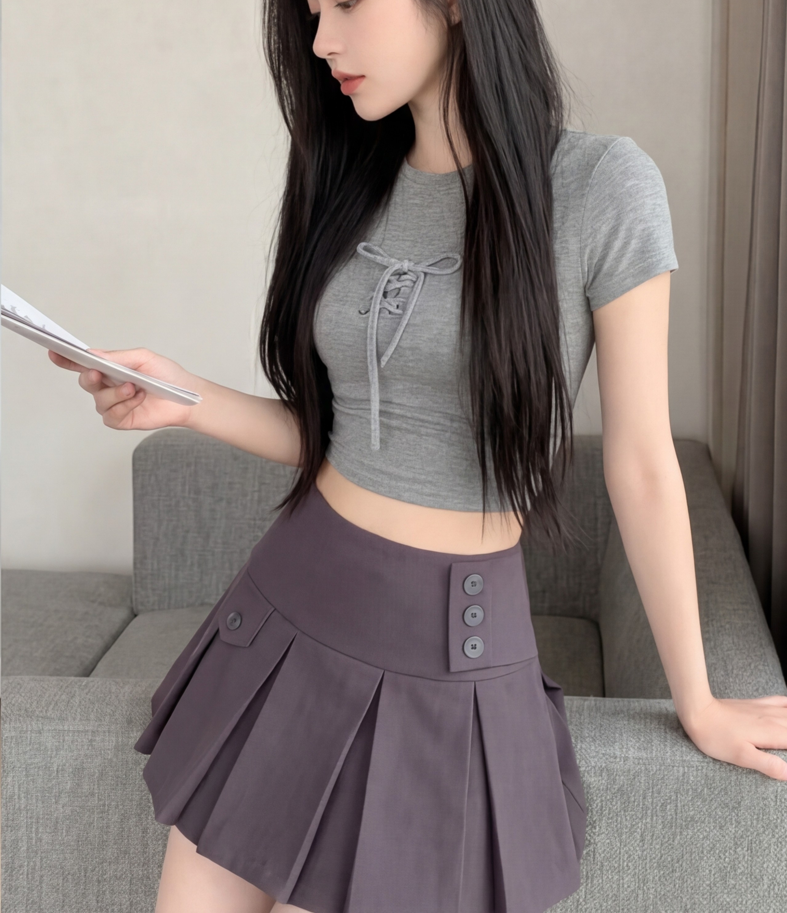 실사 2026 여름 새로운 반신 스커트 패션 한국 스타일 몸매 가꾸기 정장 미니 스커트