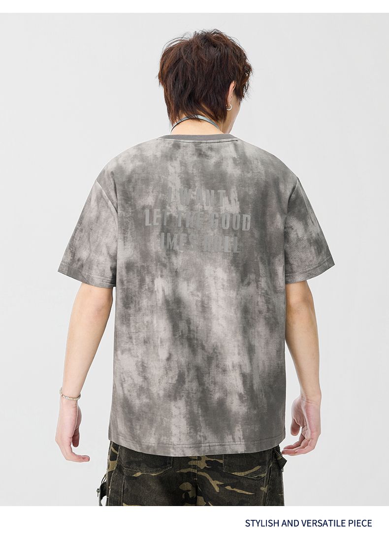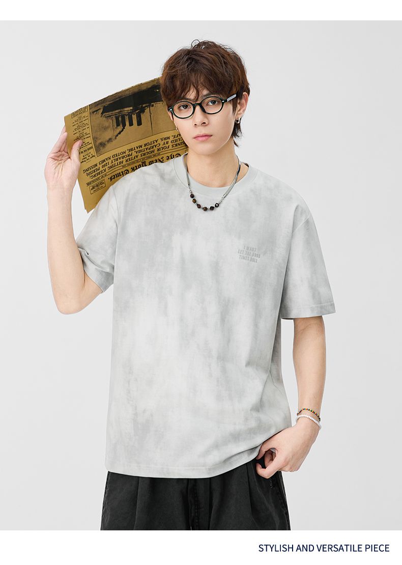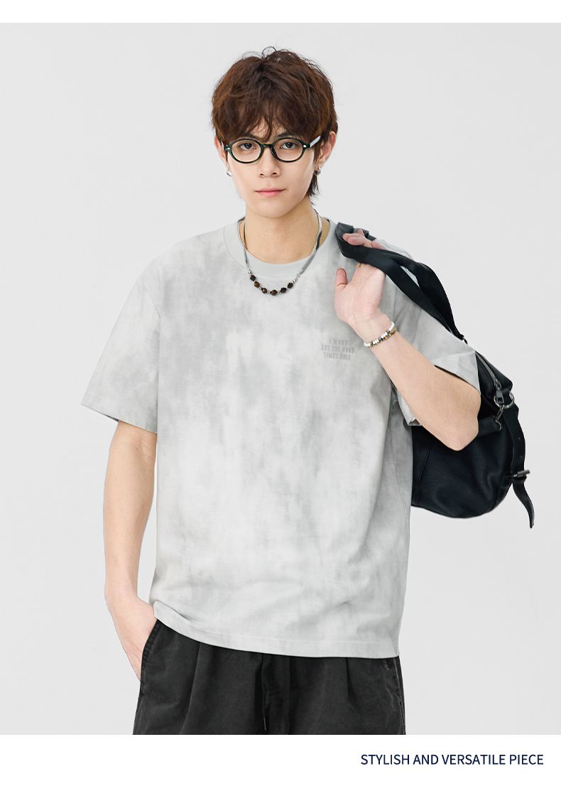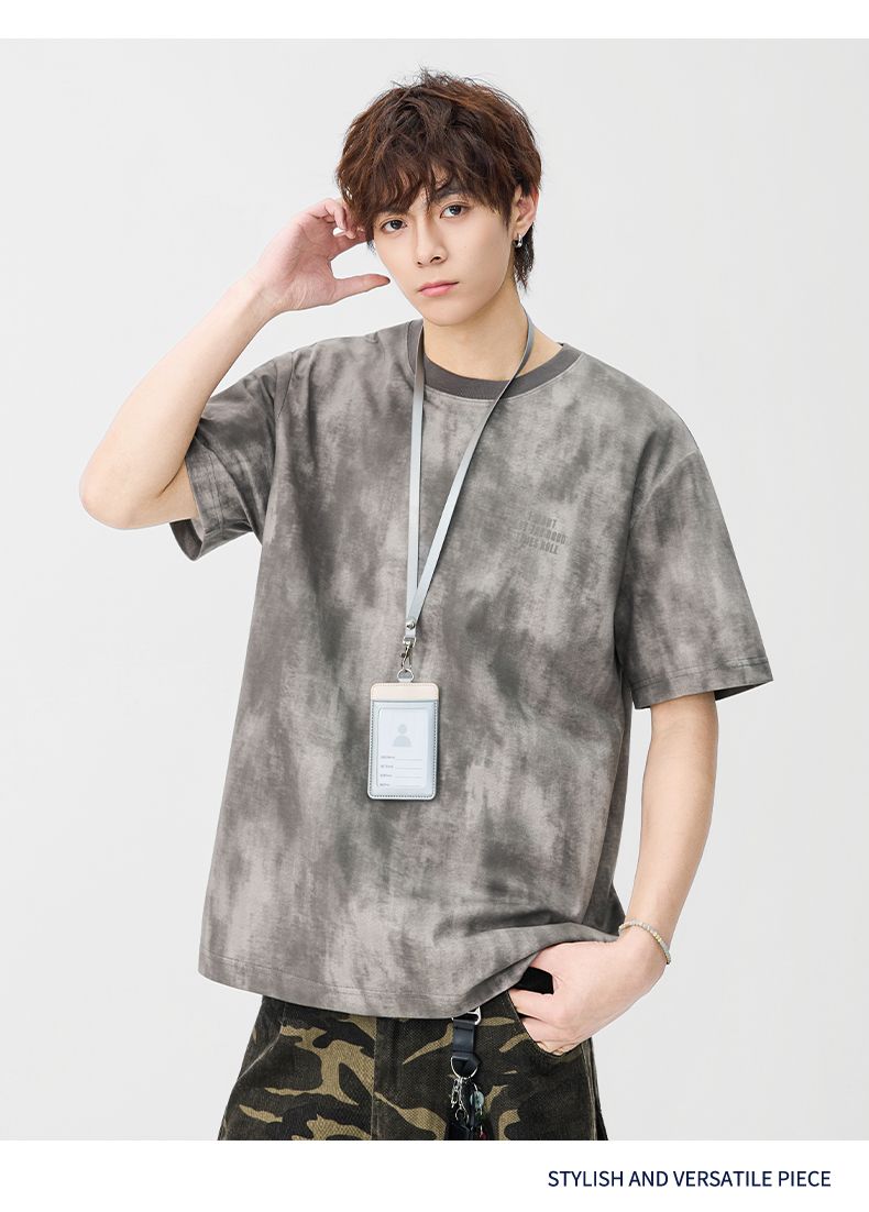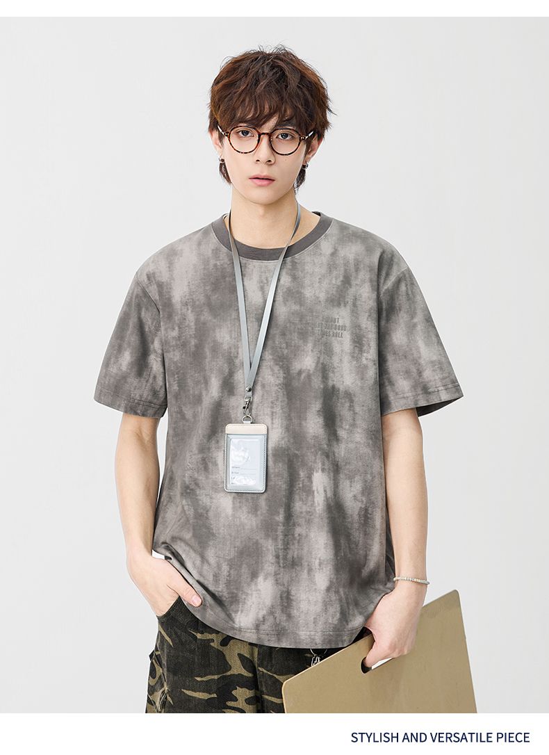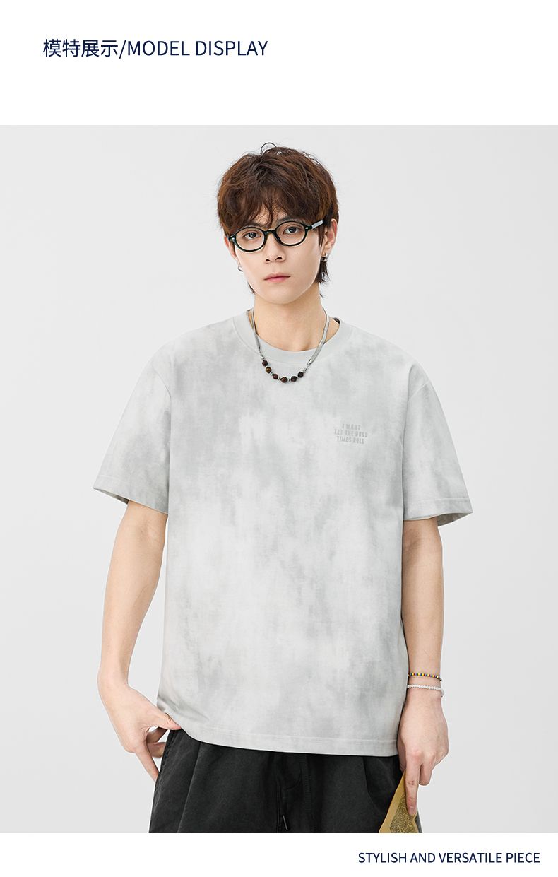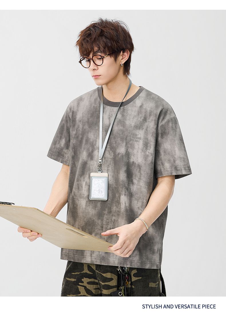 반팔 티셔츠 남성 2026 여름 새로운 알파벳 홀치기 염색 프린트 루즈핏 트렌드 기본 셔츠 청년 티셔츠