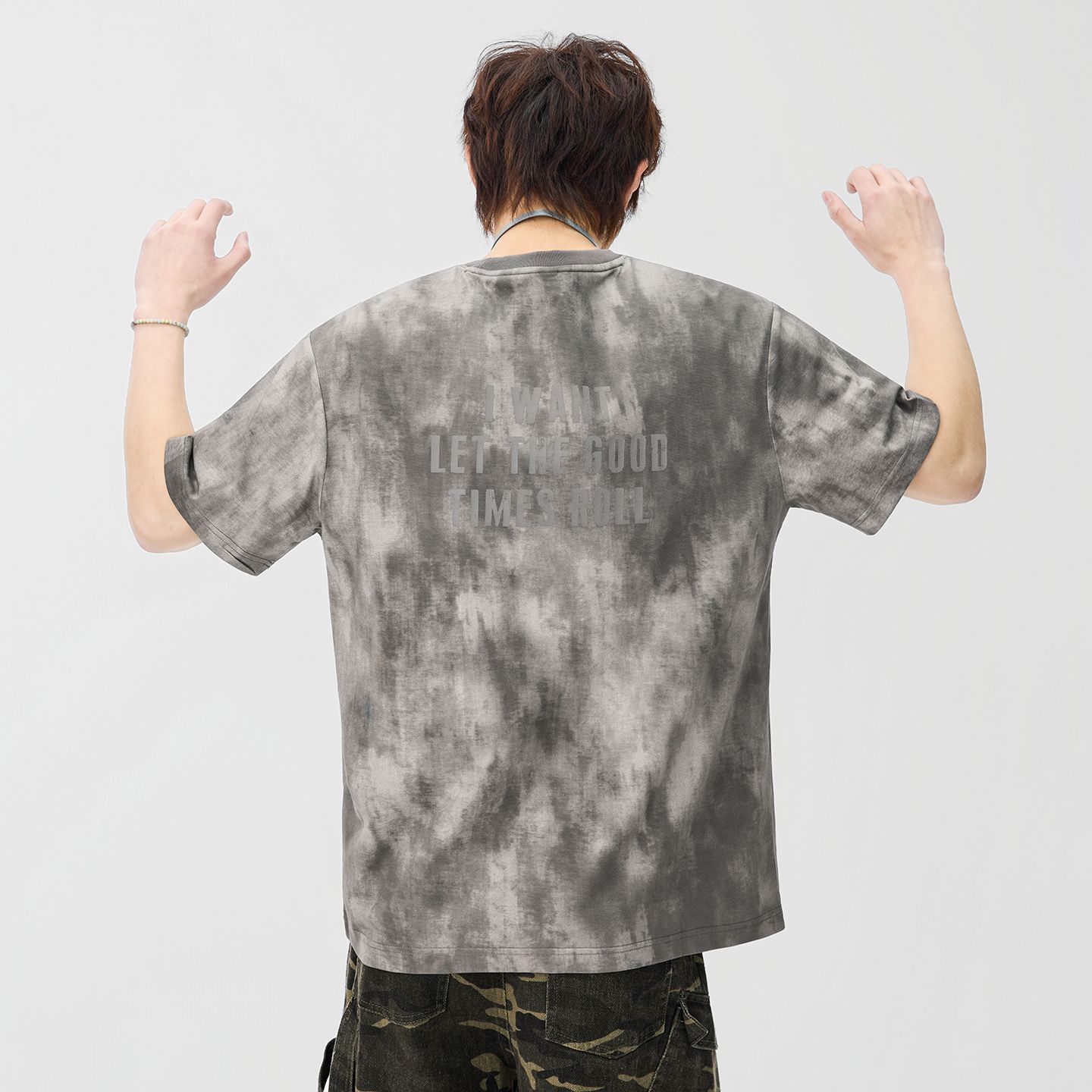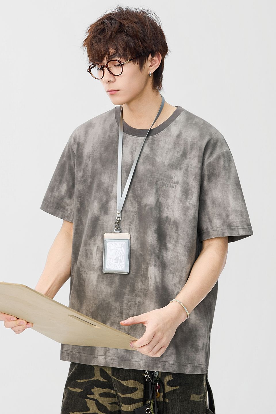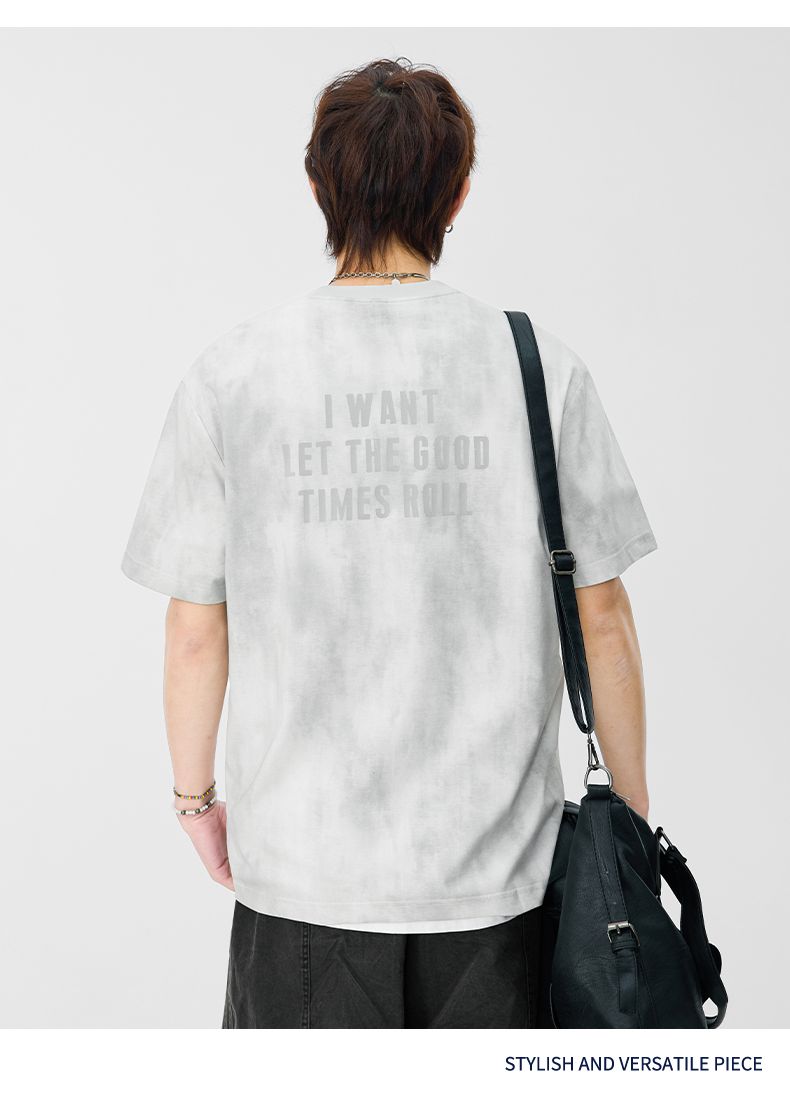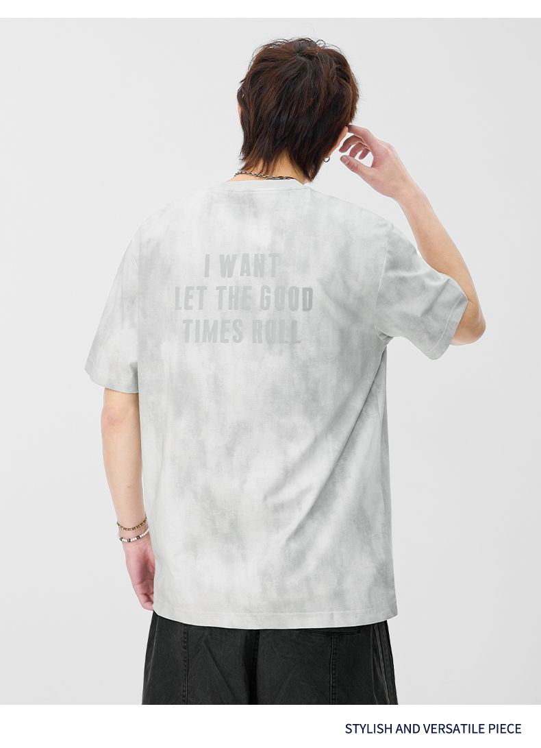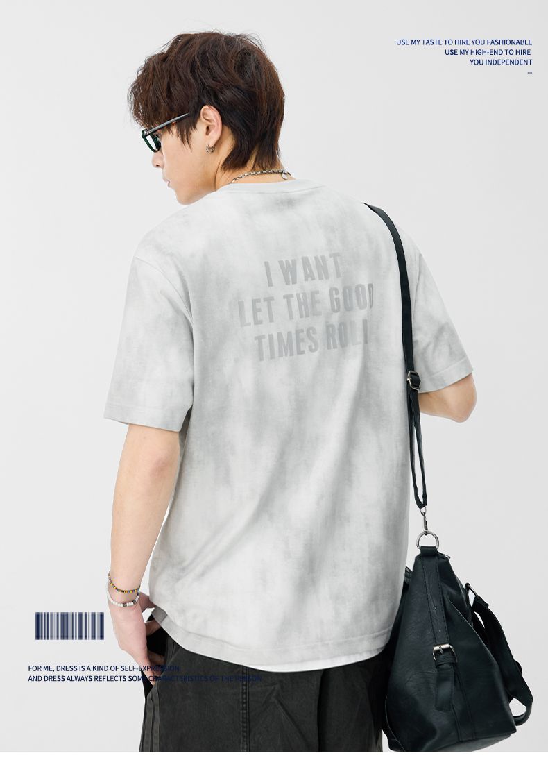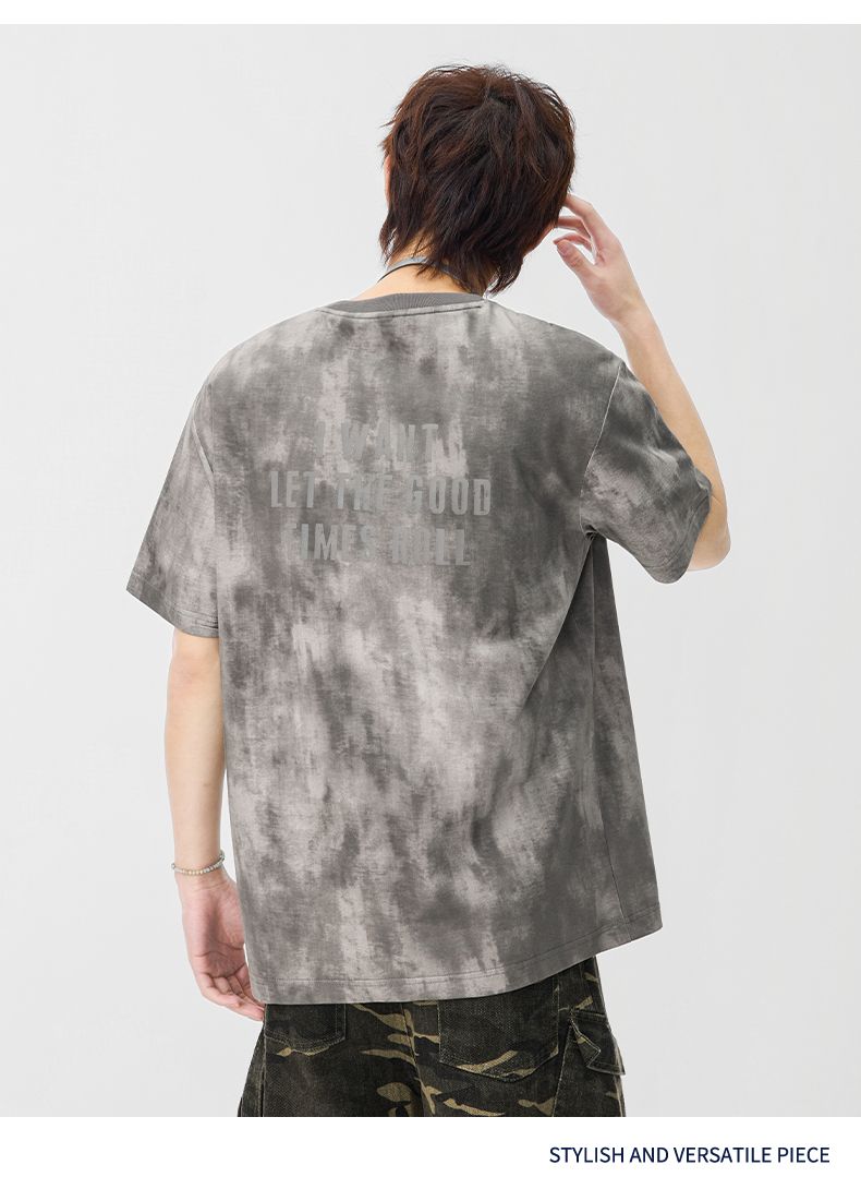 반팔 티셔츠 남성 2026 여름 새로운 알파벳 홀치기 염색 프린트 루즈핏 트렌드 기본 셔츠 청년 티셔츠