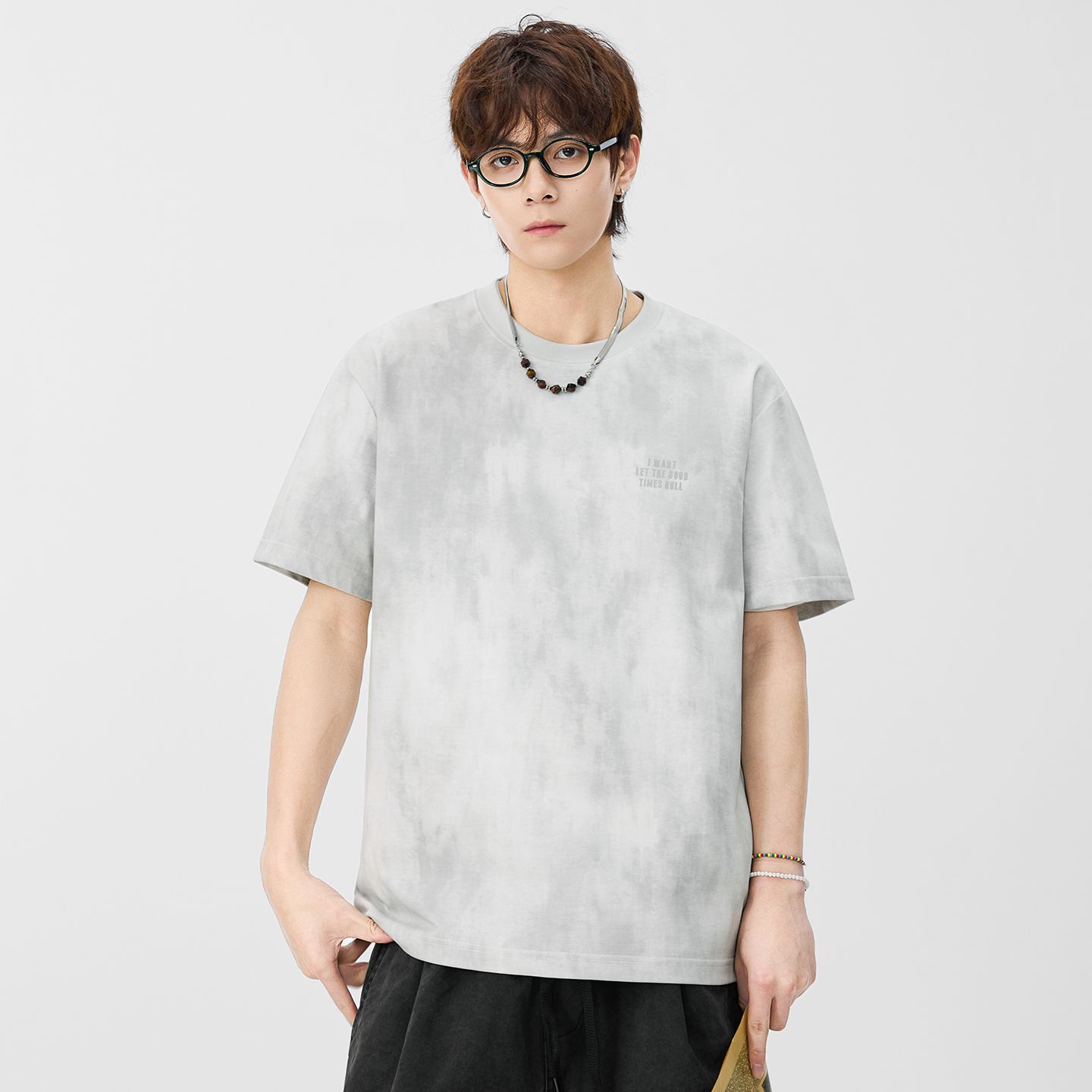 실사 2026 여름 새로운 얼음 센스 일본식 라운드 넥 반팔 티셔츠 남자 루즈핏 다용도 한국 스타일 미니멀리즘 티셔츠