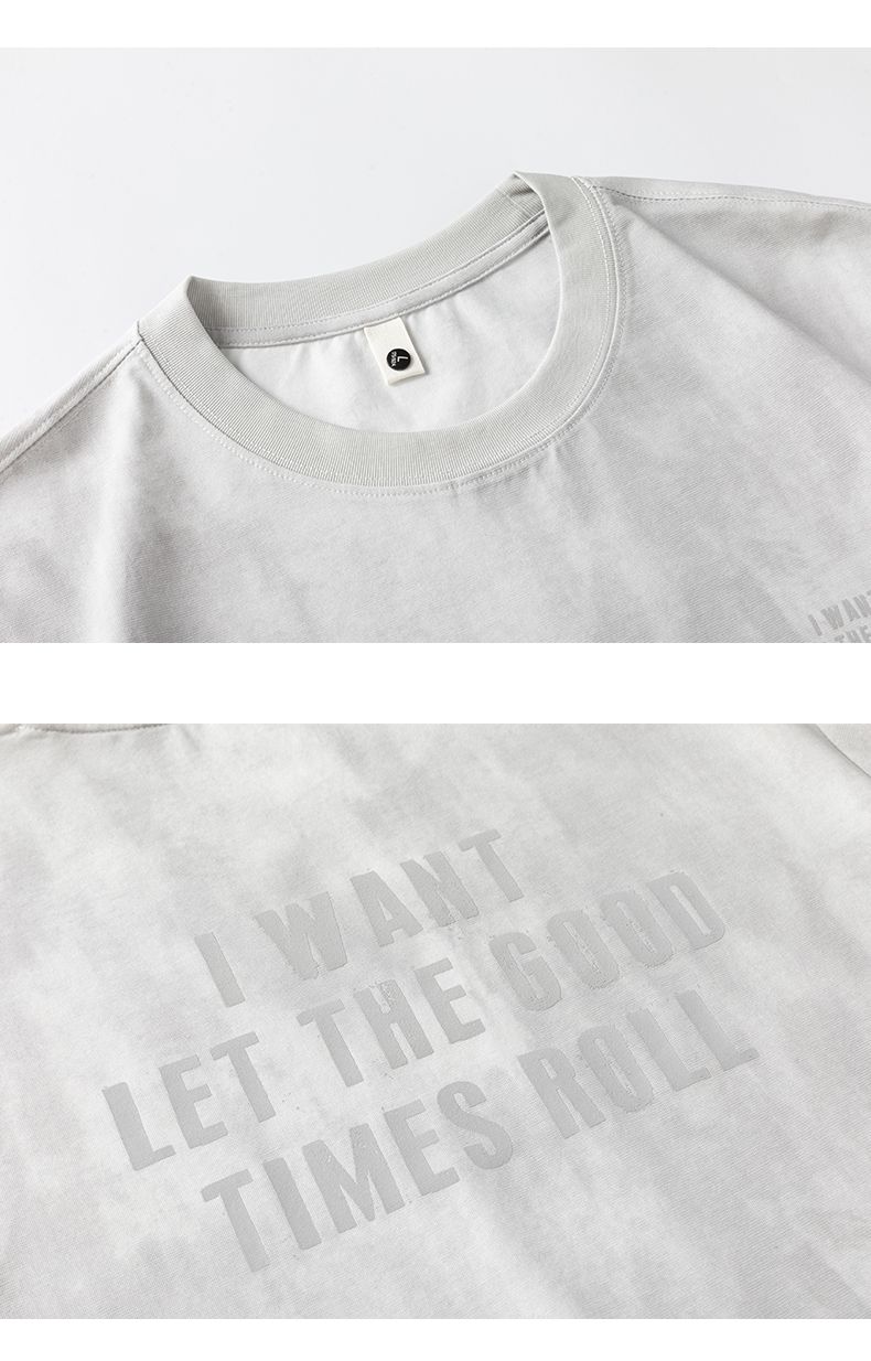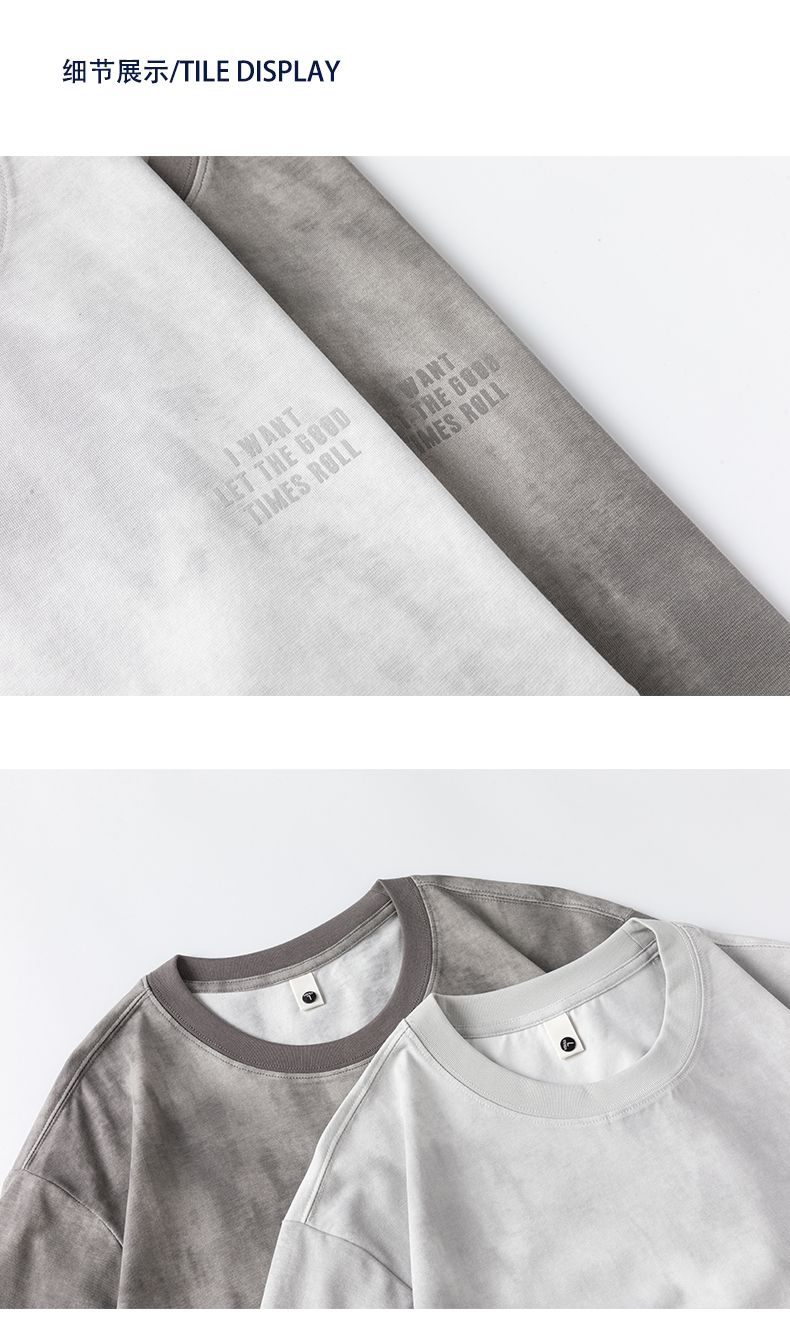 실사 2026 여름 새로운 티셔츠 남성 고급 라운드 넥 프린트 미니멀리즘 캐주얼 다용도 티셔츠