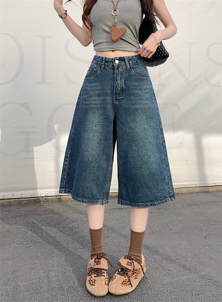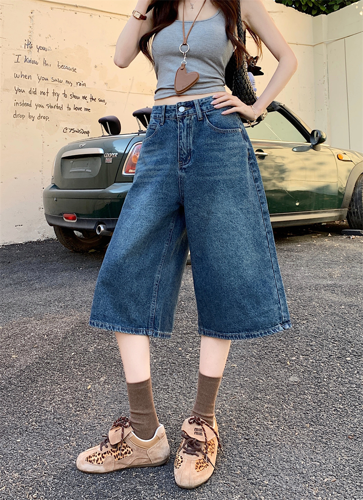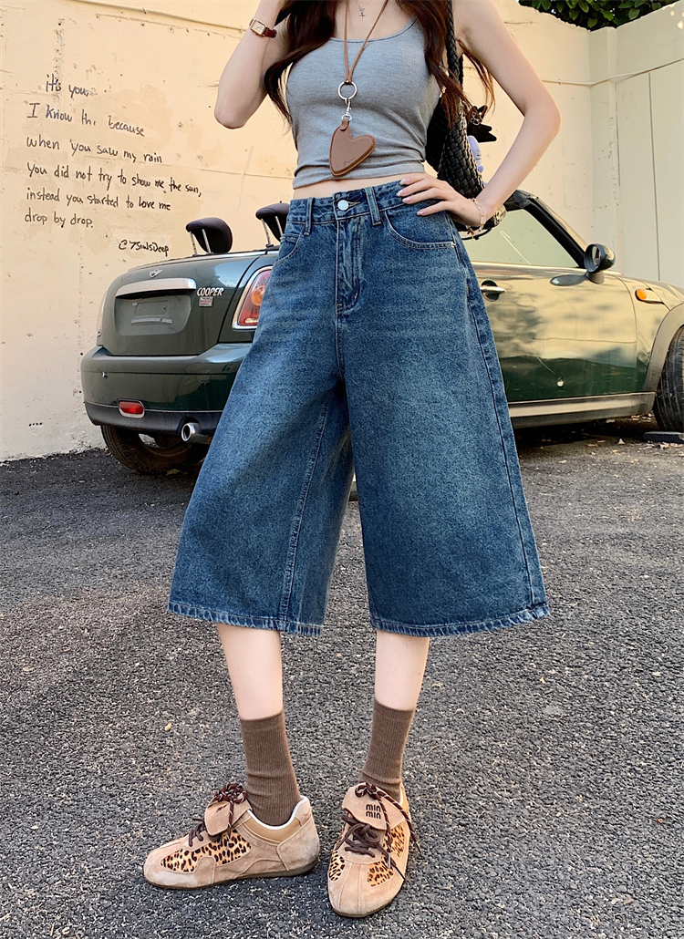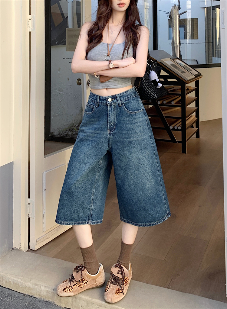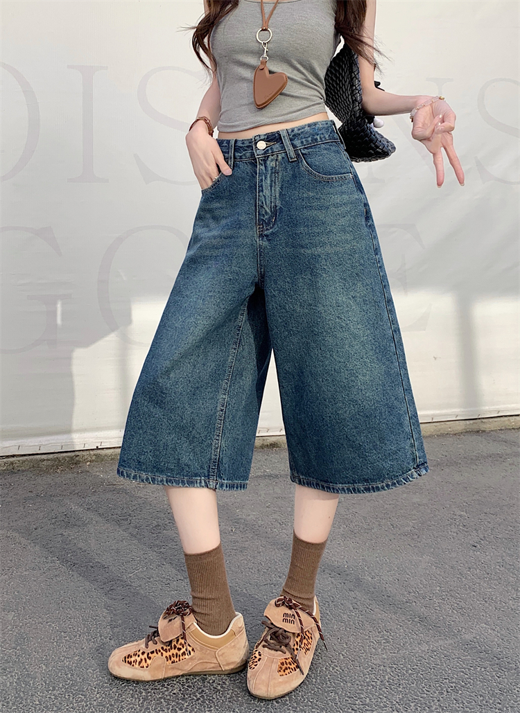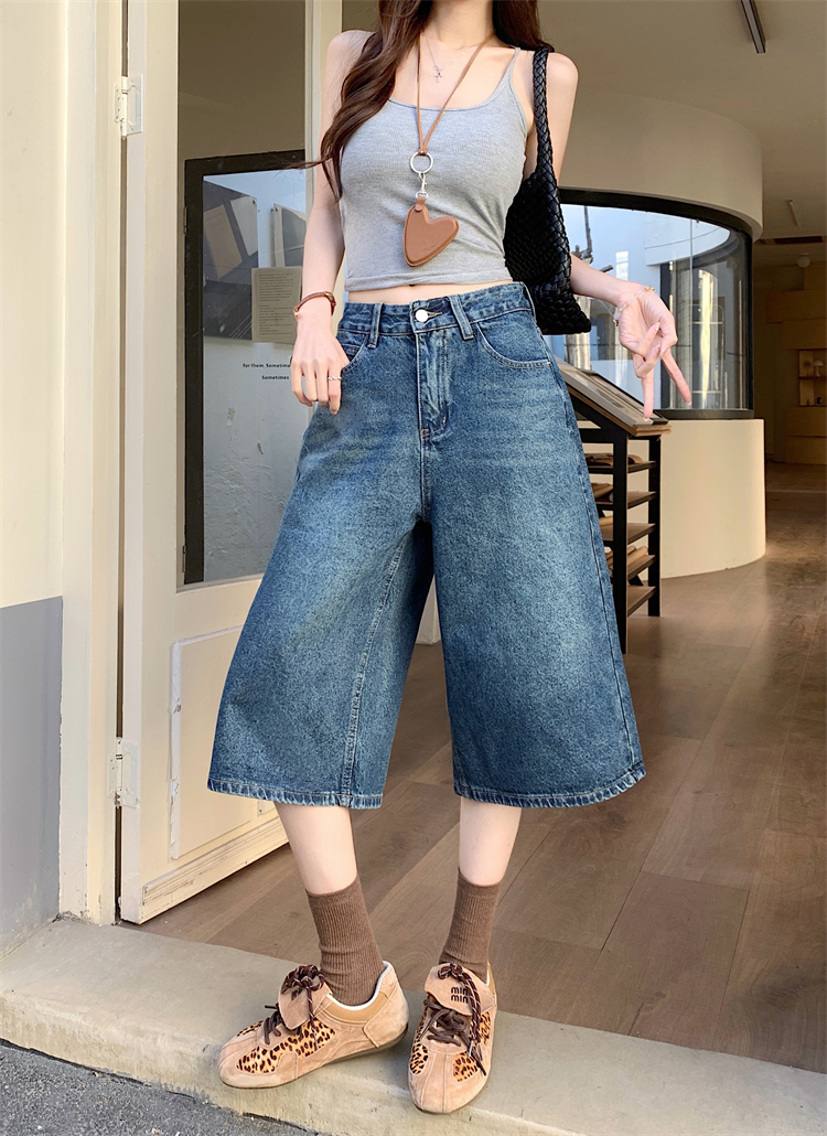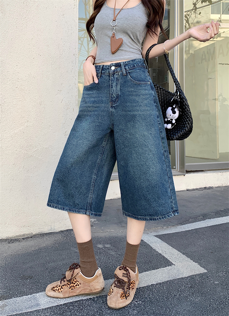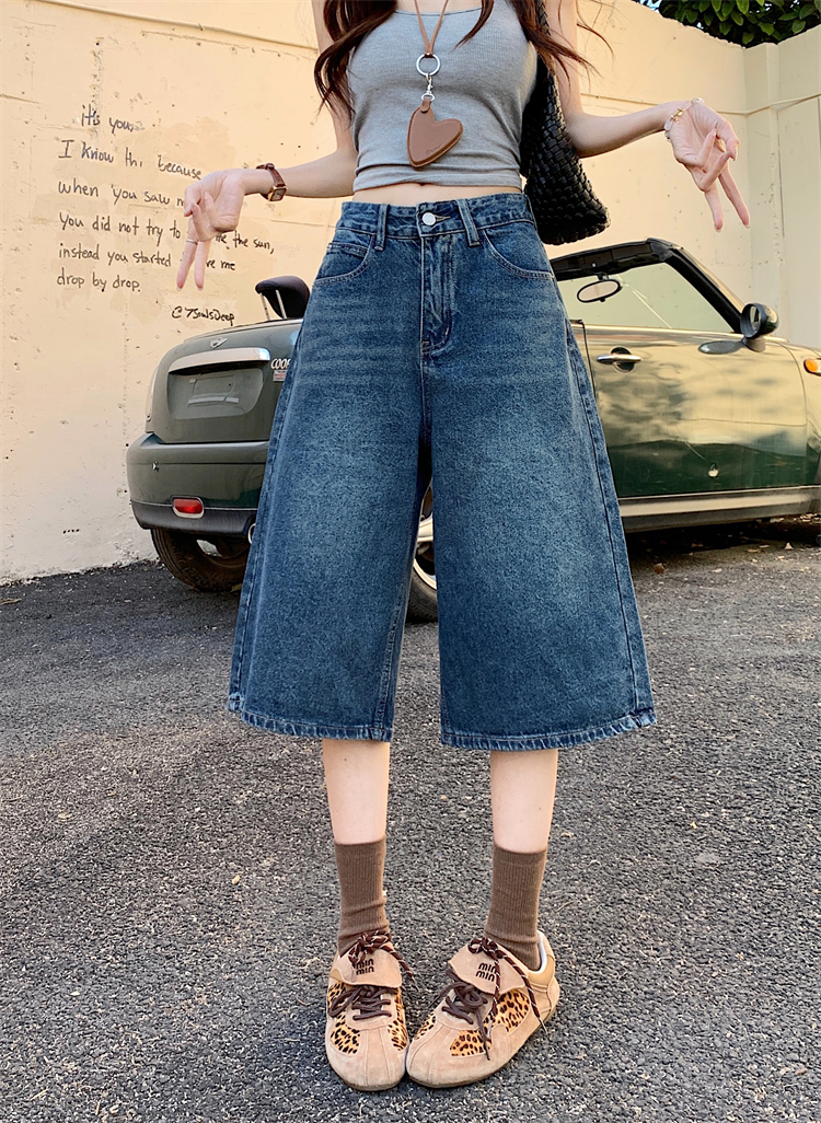 실사 아메리칸 넓은 다리 7 점 청바지 여성 여름 새로운 하이웨이스트 느슨함 센스 느긋한 바람 스트레이트 팬츠 바지
