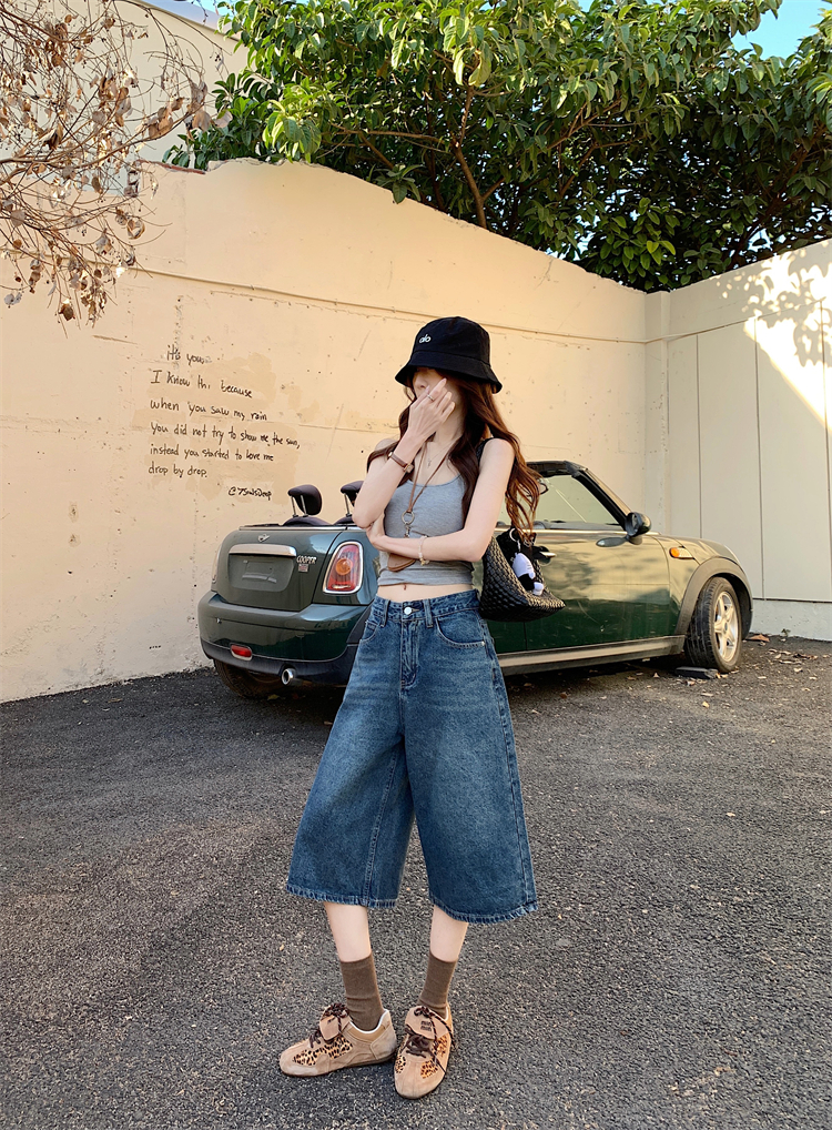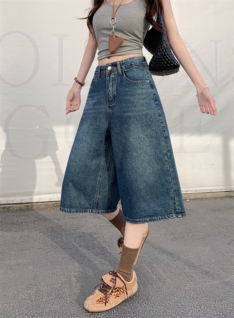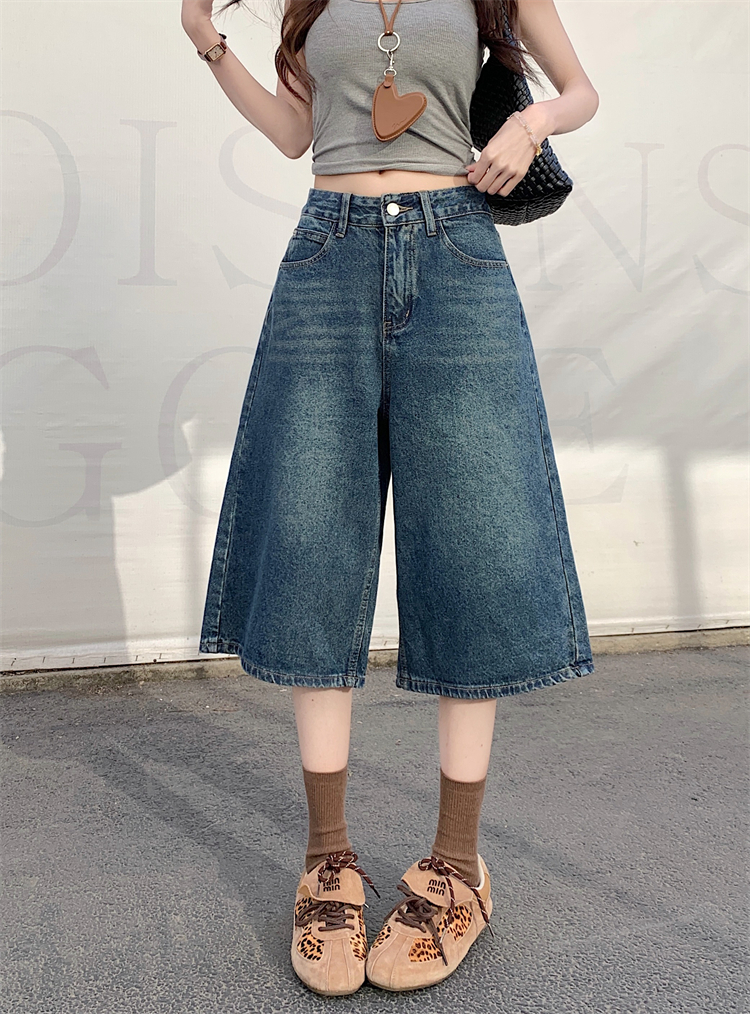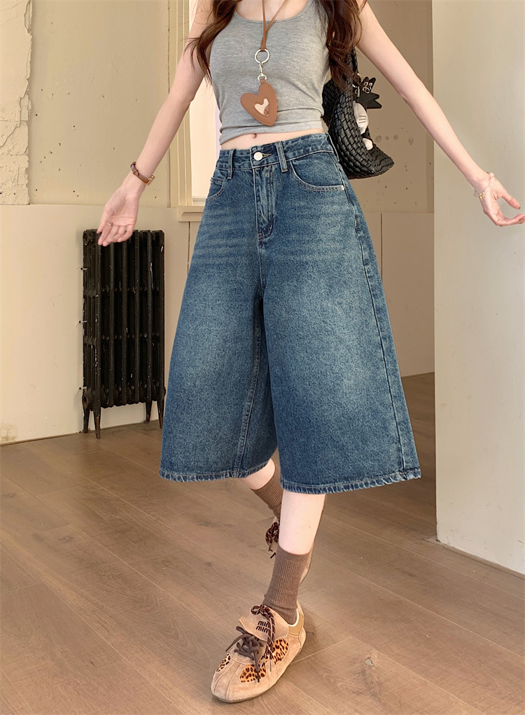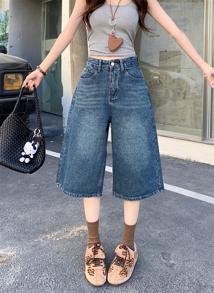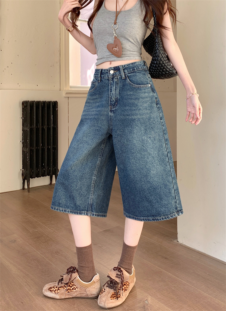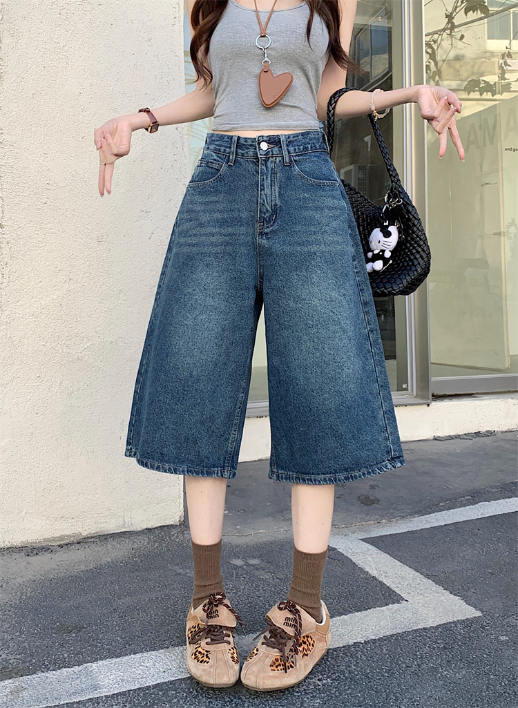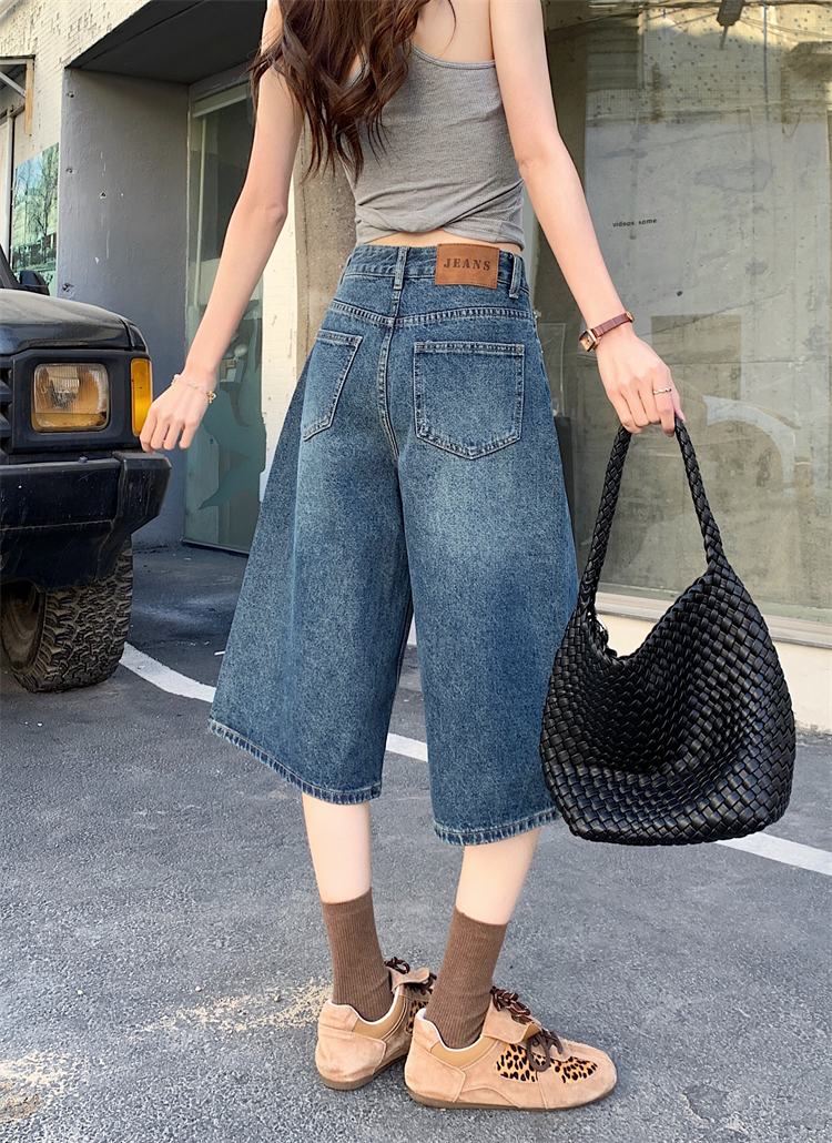 실사 아메리칸 넓은 다리 7 점 청바지 여성 여름 새로운 하이웨이스트 느슨함 센스 느긋한 바람 스트레이트 팬츠 바지