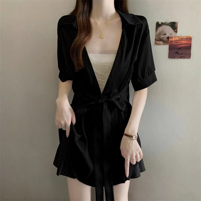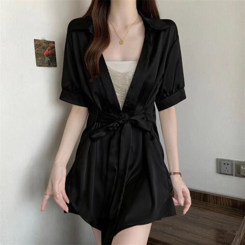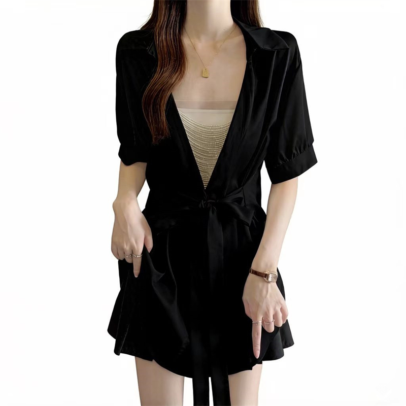 빅 사이즈 검정색 셔츠 세트 여성 2026 새로운 여름 폭발 작은 키 셔츠 다용도 반바지 투피스 세트
