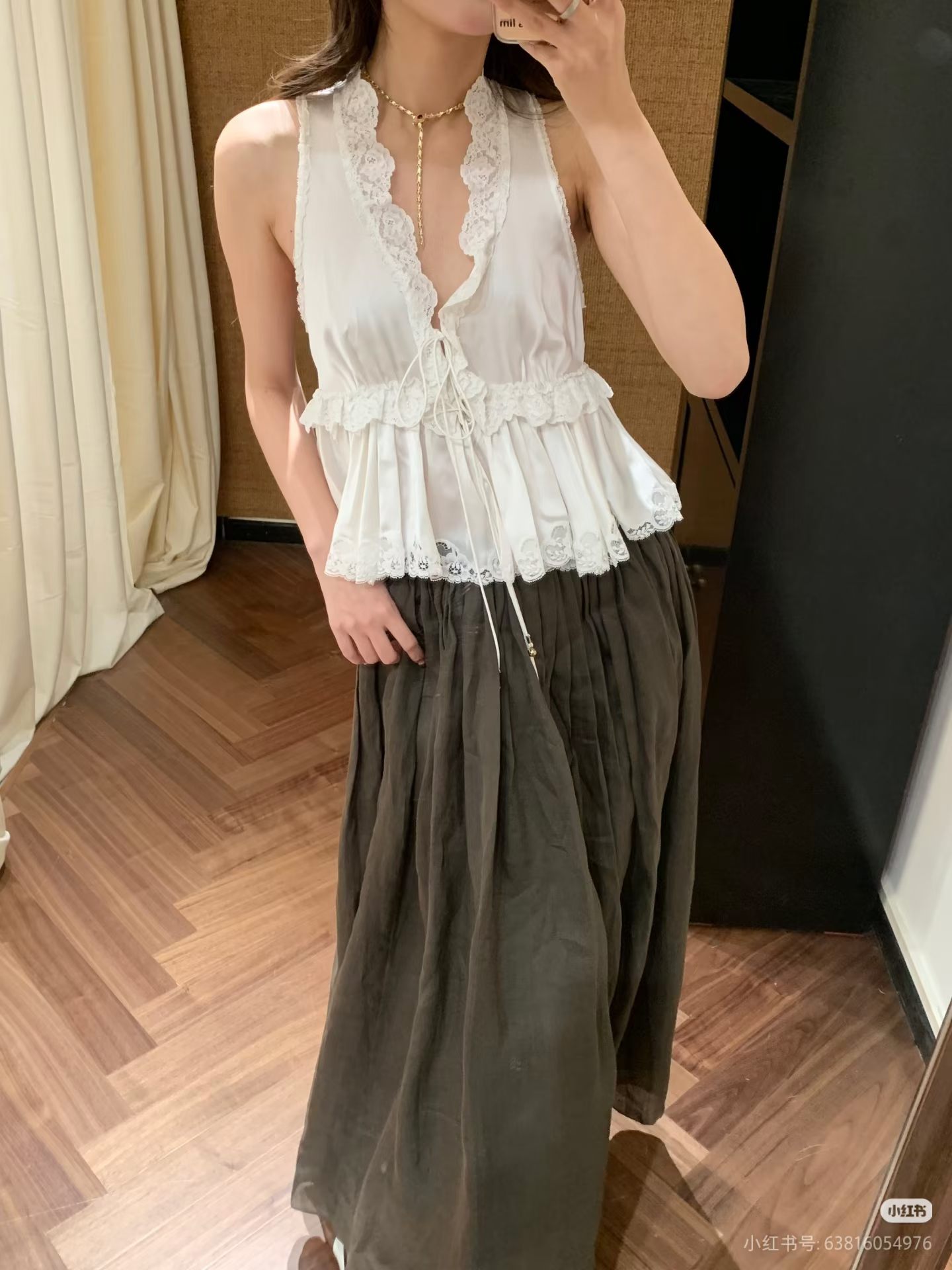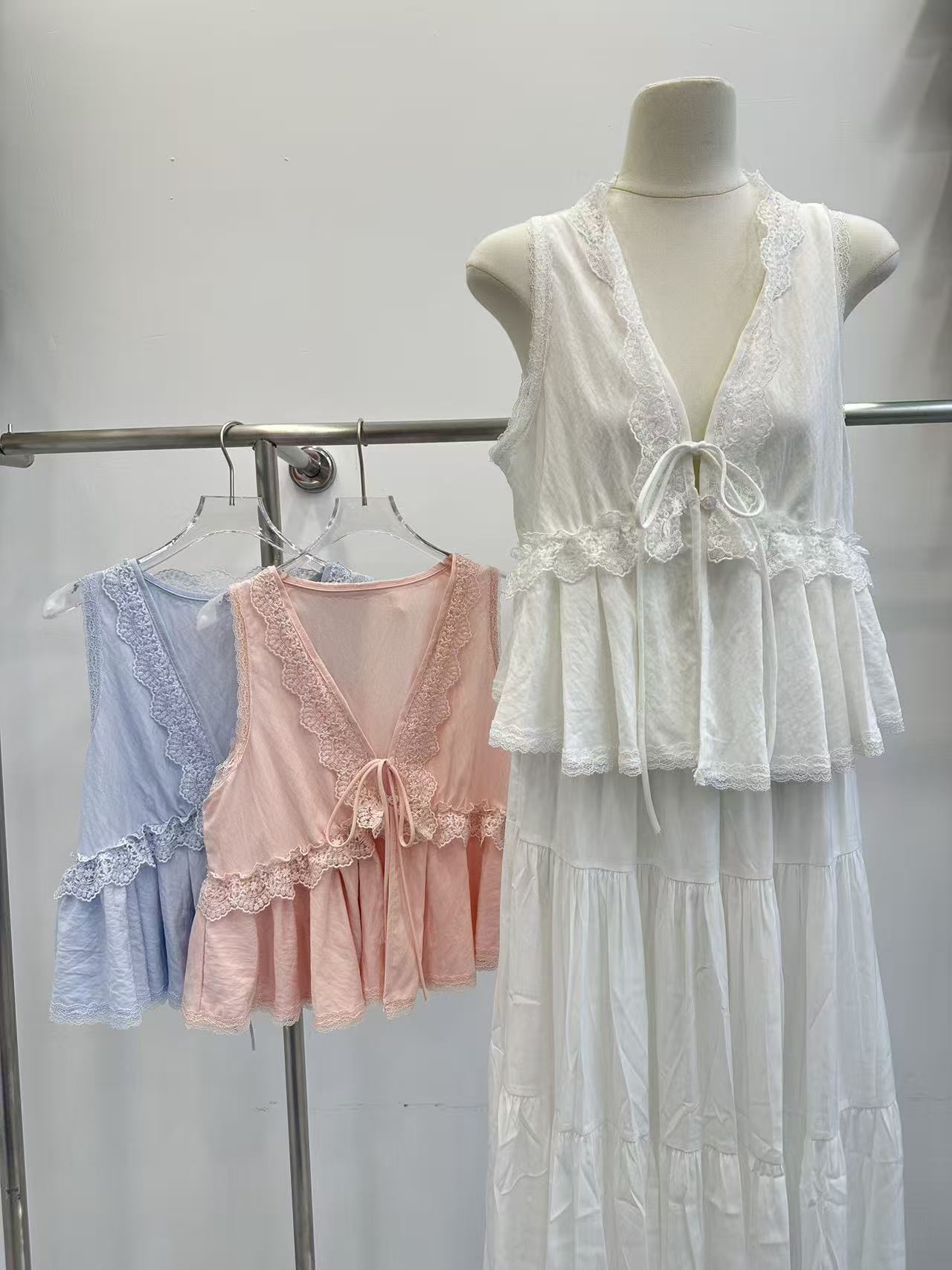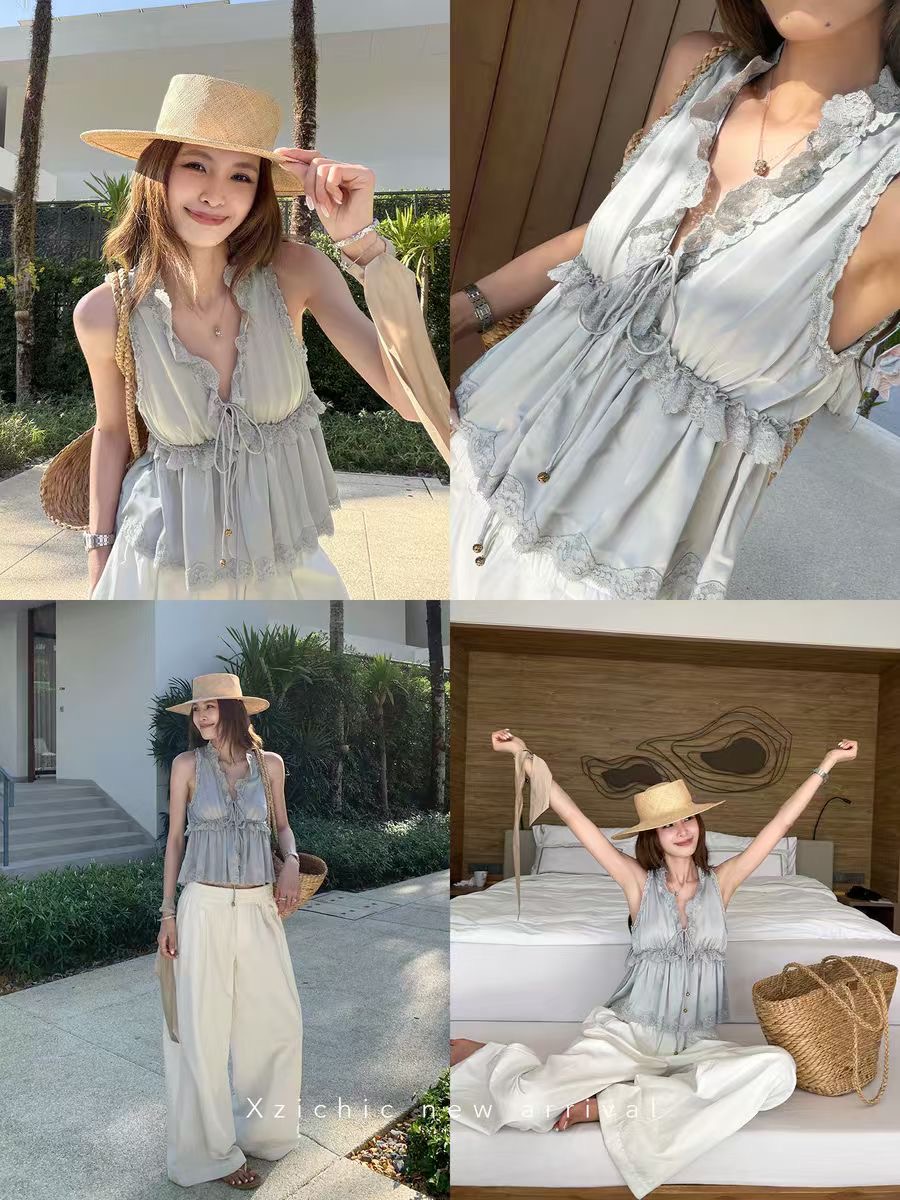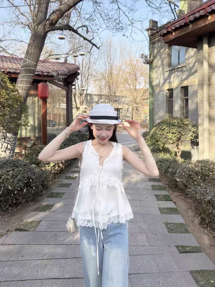 2026 여름 새로운 검정색 캐미솔 프랑스식 홀로우 아웃 자수 인형 셔츠 달콤한 매운맛 바람 슬림해 보이는 맨위