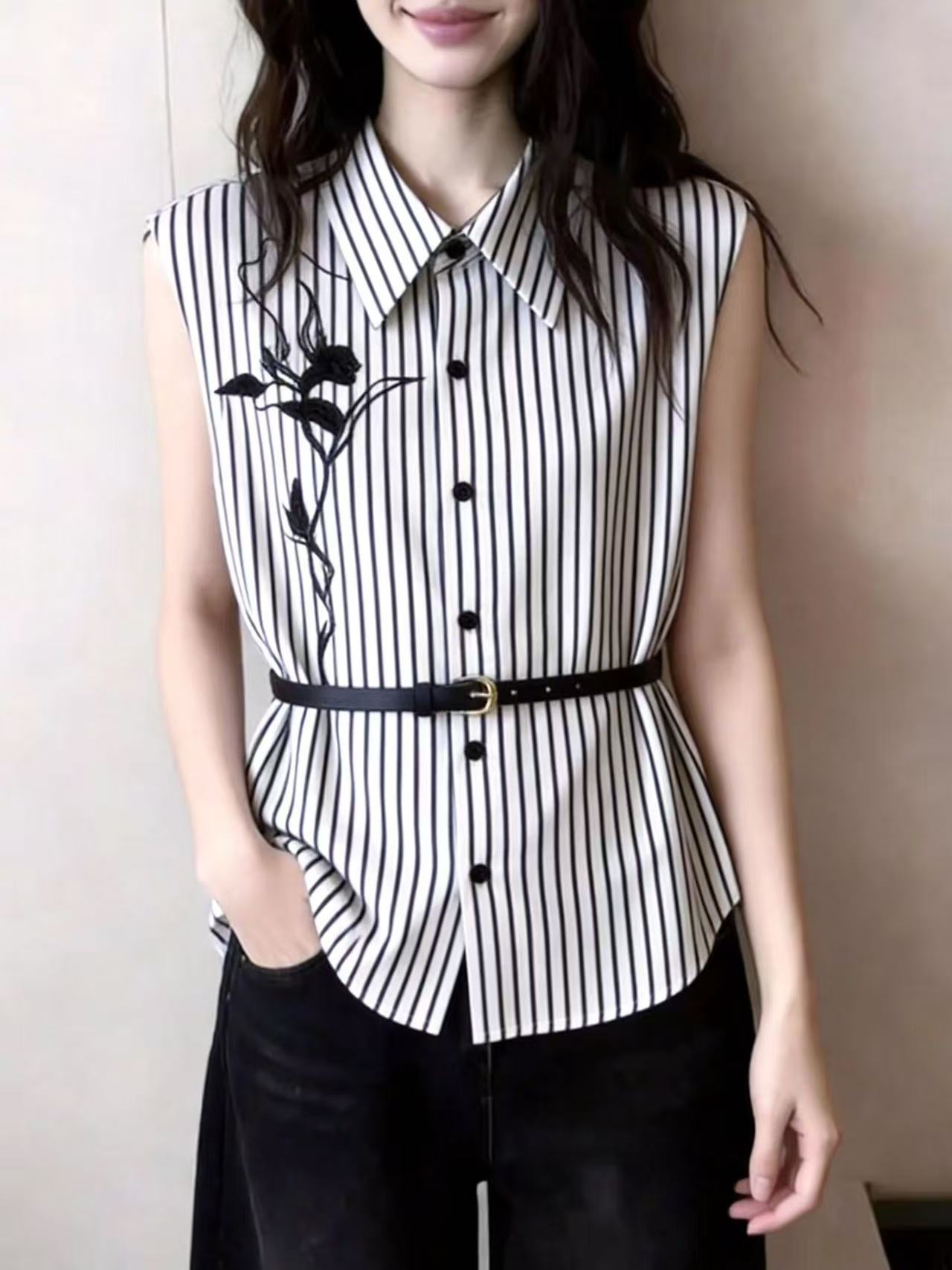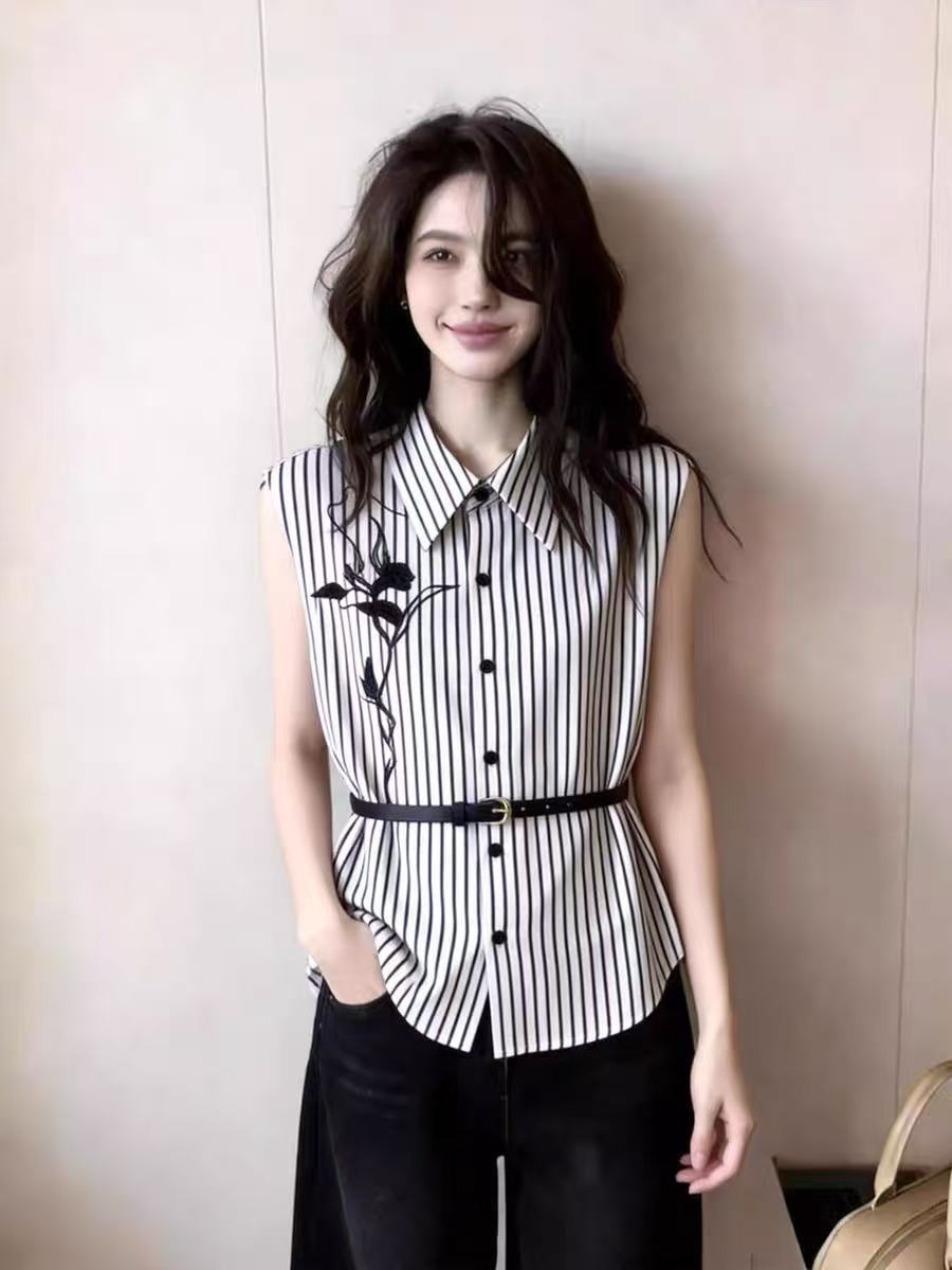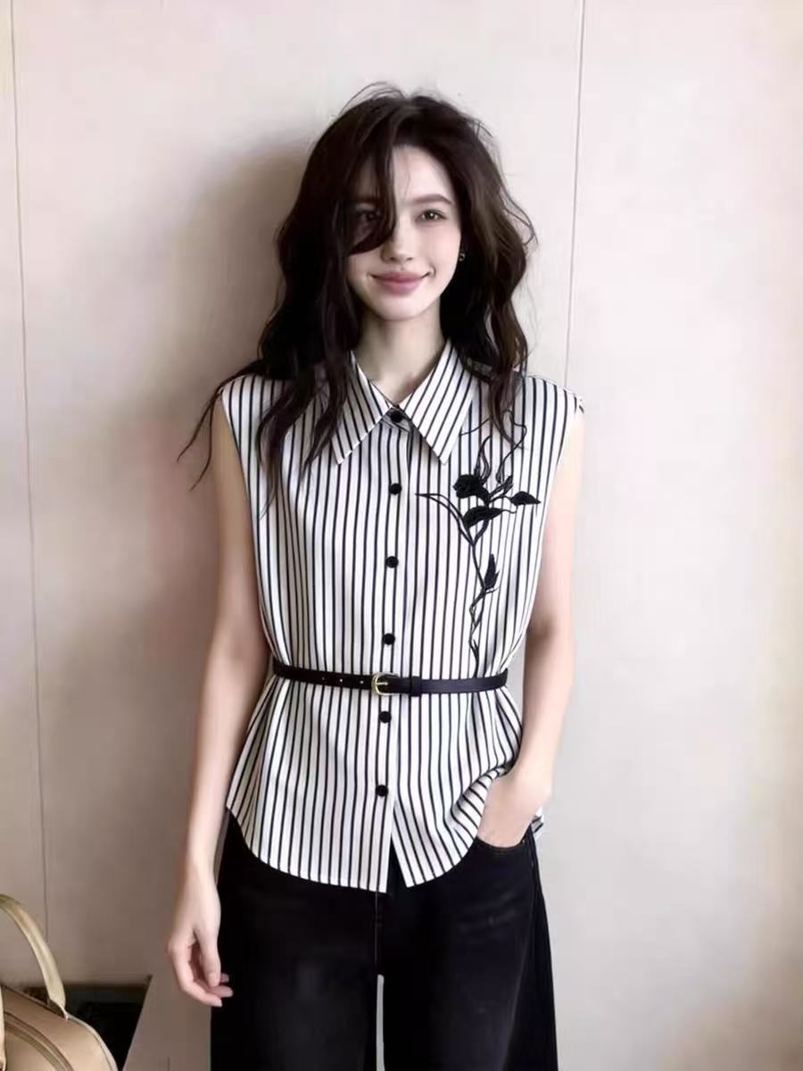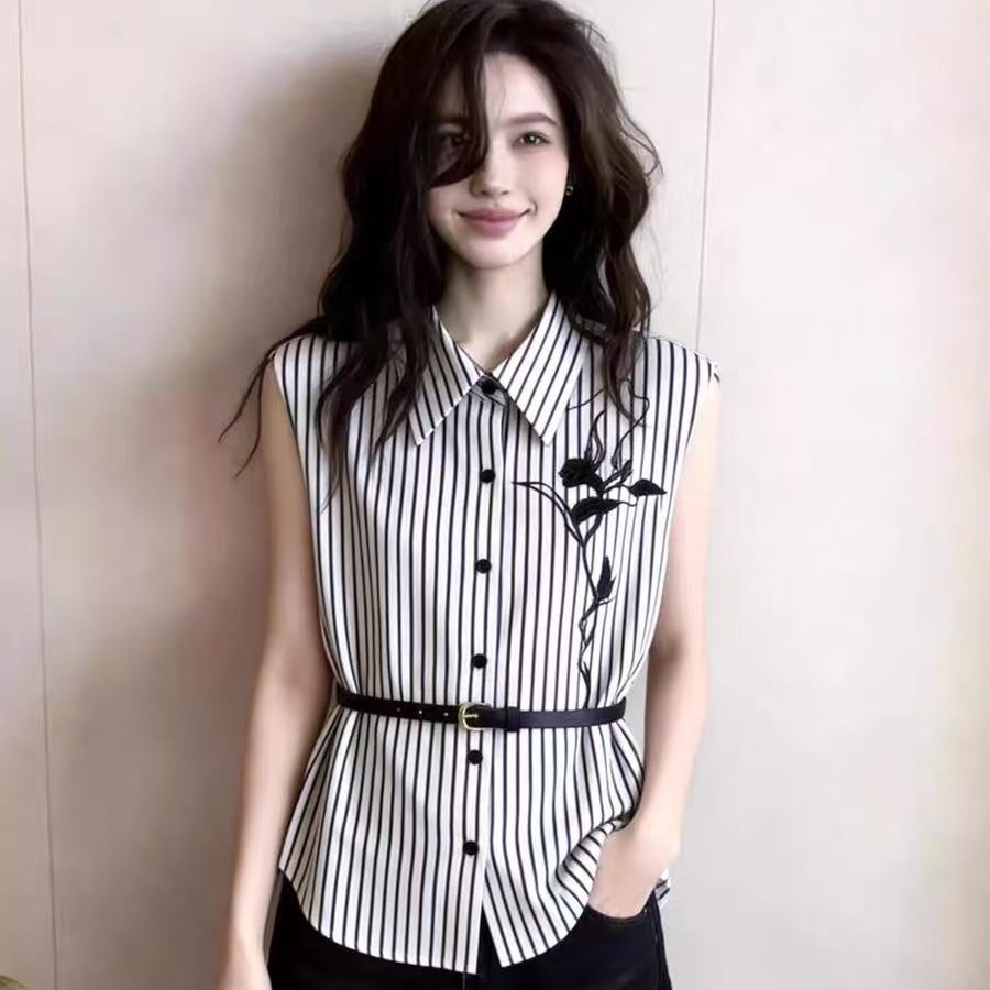 패션 화이트 V넥 민소매 여성 셔츠 2026 여름 새로운 고급 센스 허리 수축 슬림해 보이는 다용도 조끼 맨위