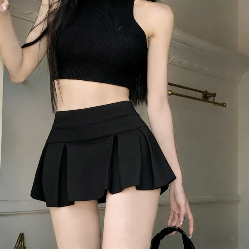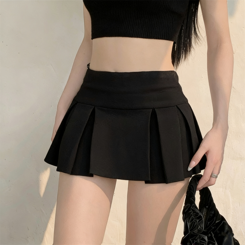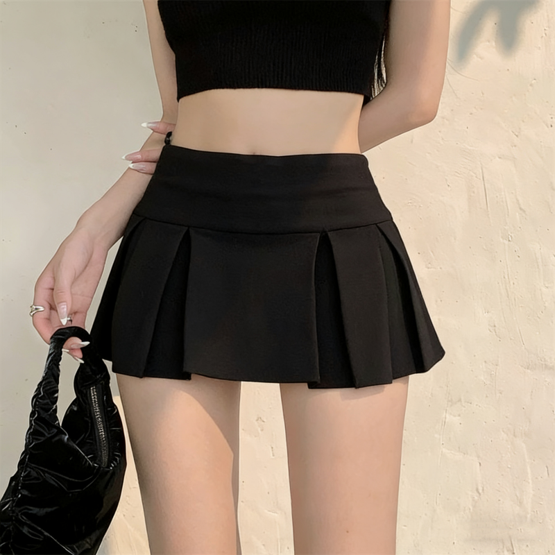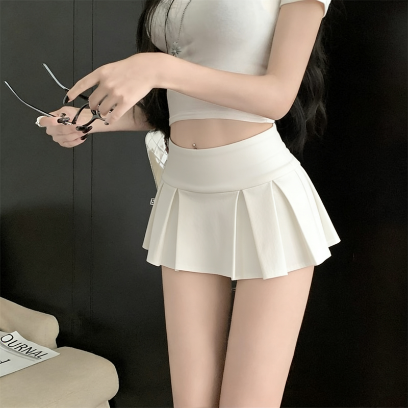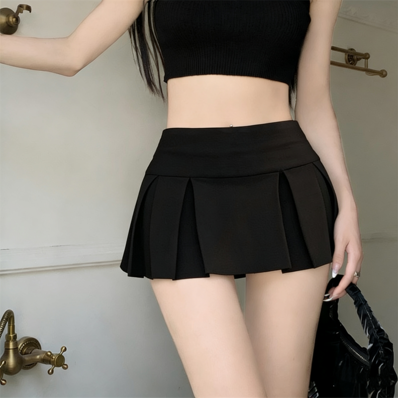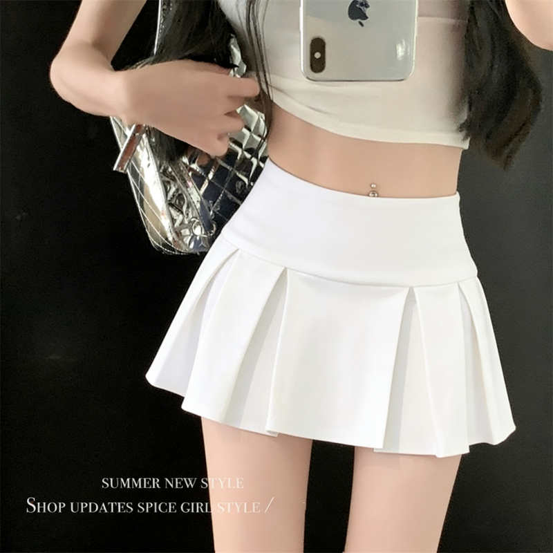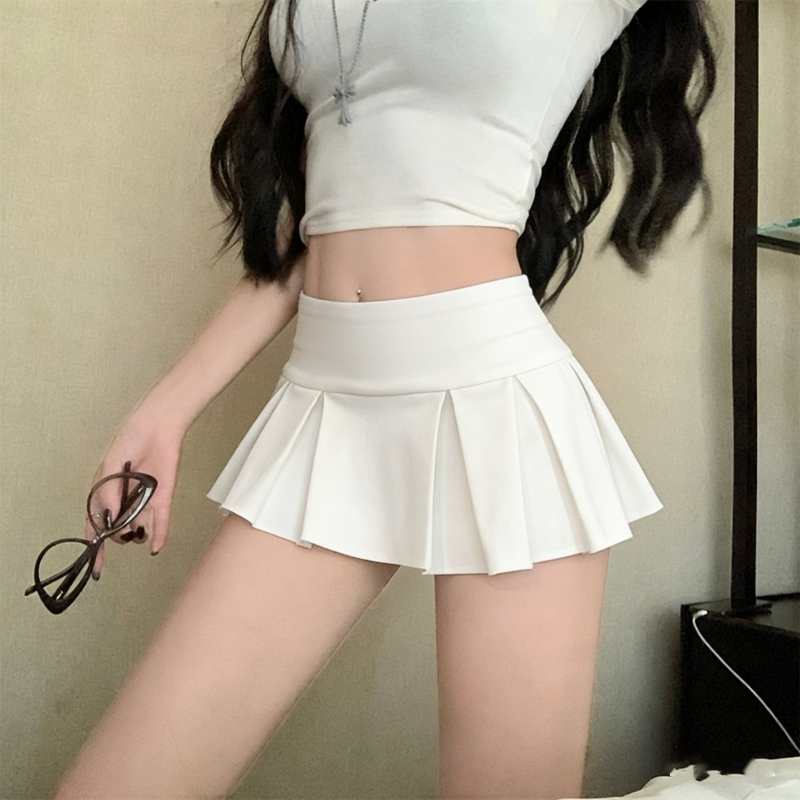 실사 정가 감소되지 않음 아메리칸 섹시함 로우 웨이스트 초단 스커트 A라인 스커트 노출 방지 순수한 욕망 플리츠 치마