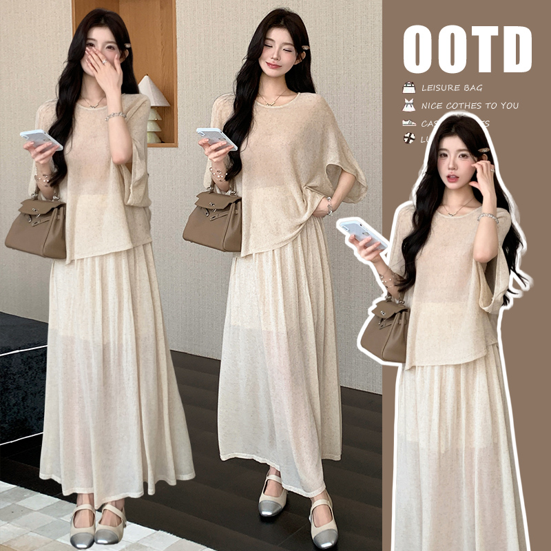 실사 xian 물품 느긋한 센스 배트윙 소매 라운드 넥 맨위 반 스커트 니트 임산부 세트