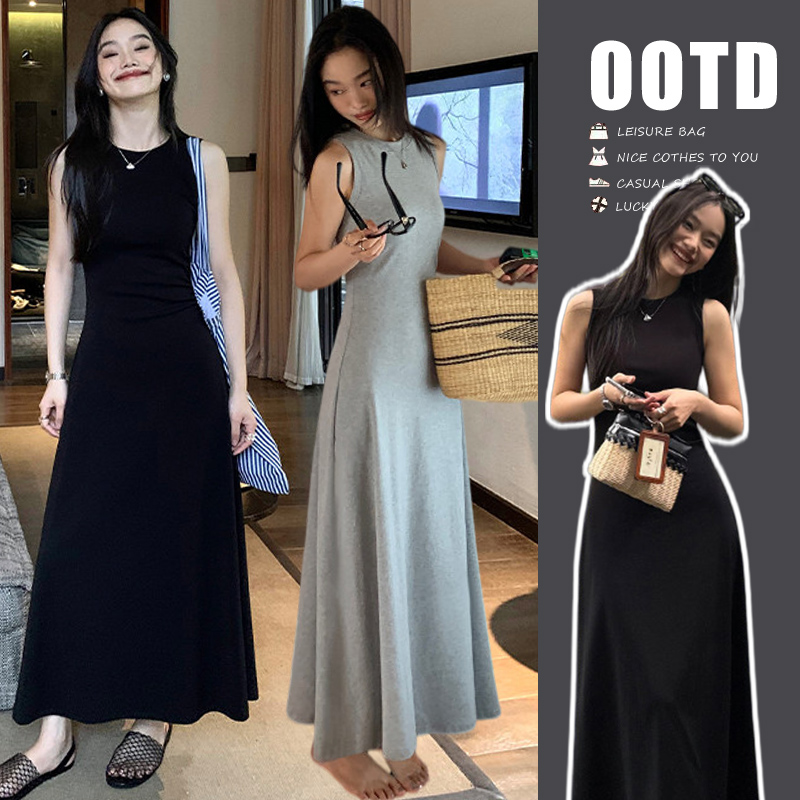 실사 여름 새로운 디자인 센스 허리 수축 슬림해 보이는 니트 조끼 임산부 드레스