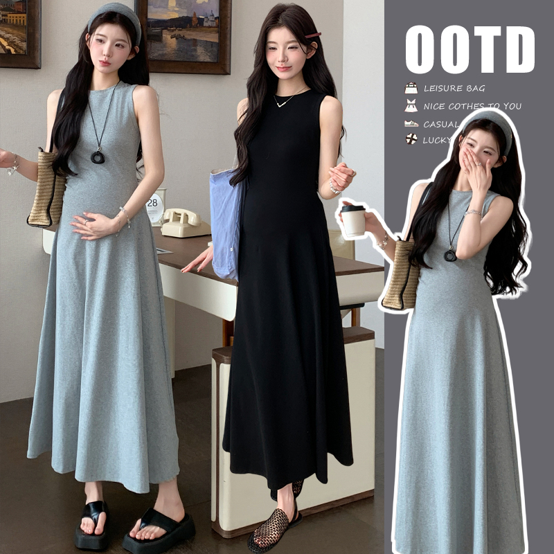 여름 디자인 센스 허리 수축 슬림해 보이는 니트 조끼 임산부 드레스