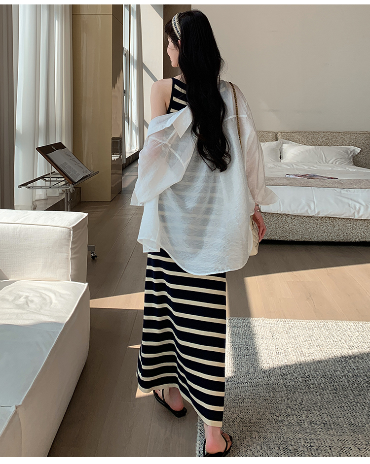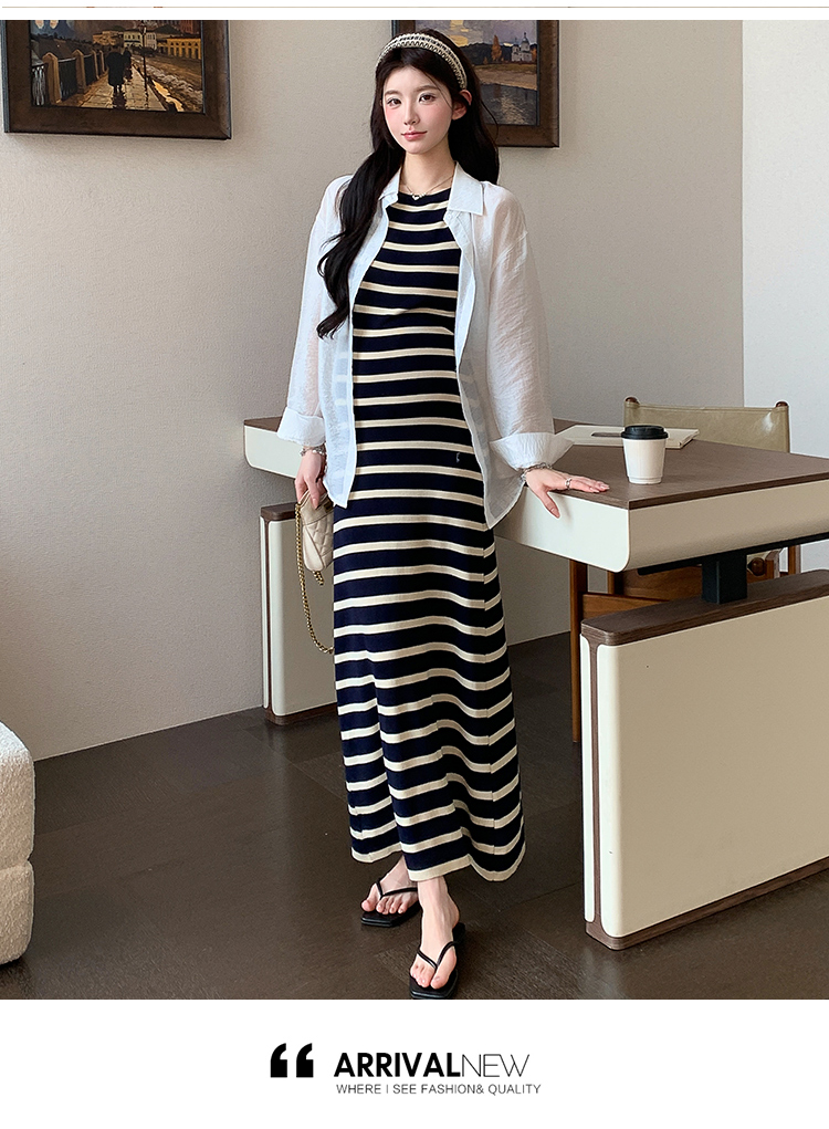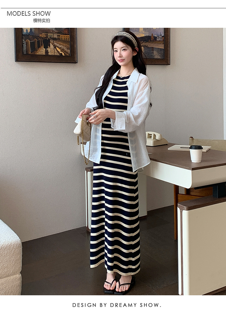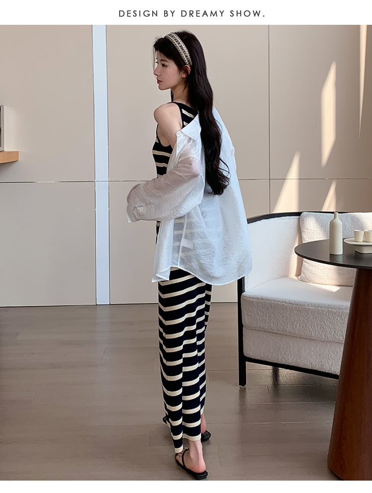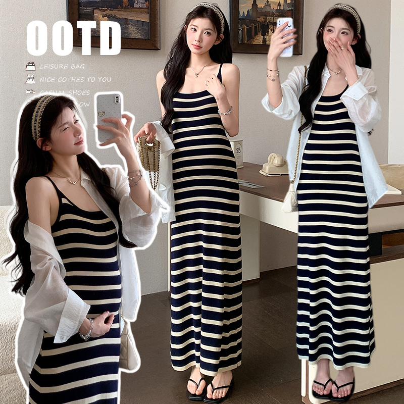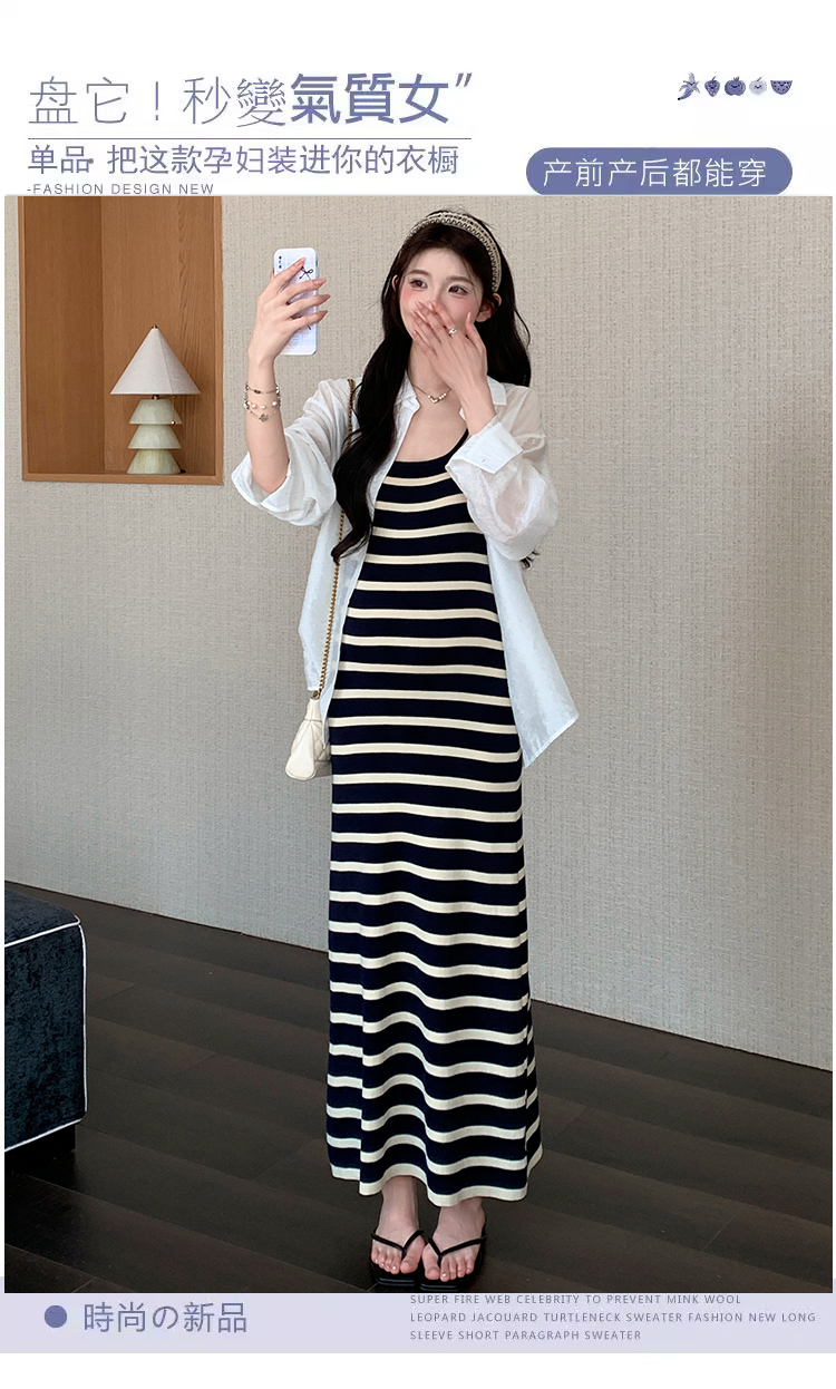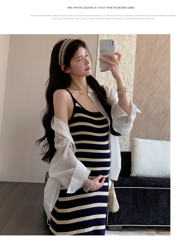 블루 스트라이프 자외선 차단 셔츠 회색 슬립 드레스 투피스 세트 한 부서 부드러운 바람 캐주얼 임산부 세트