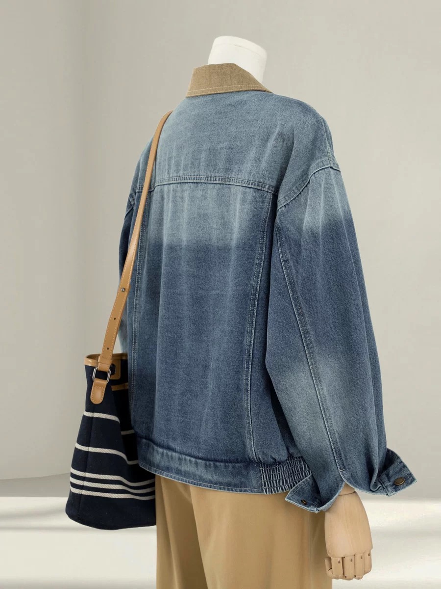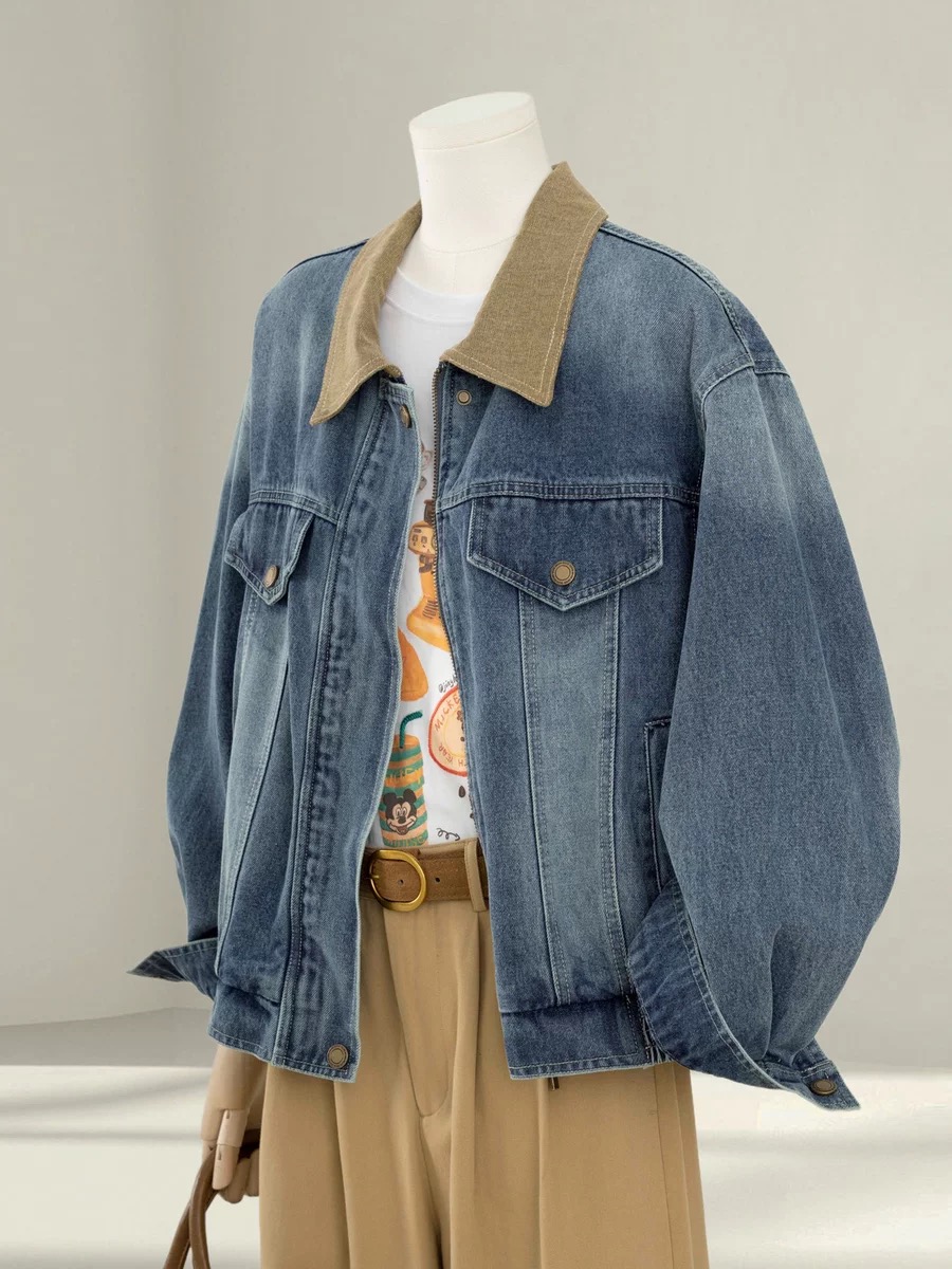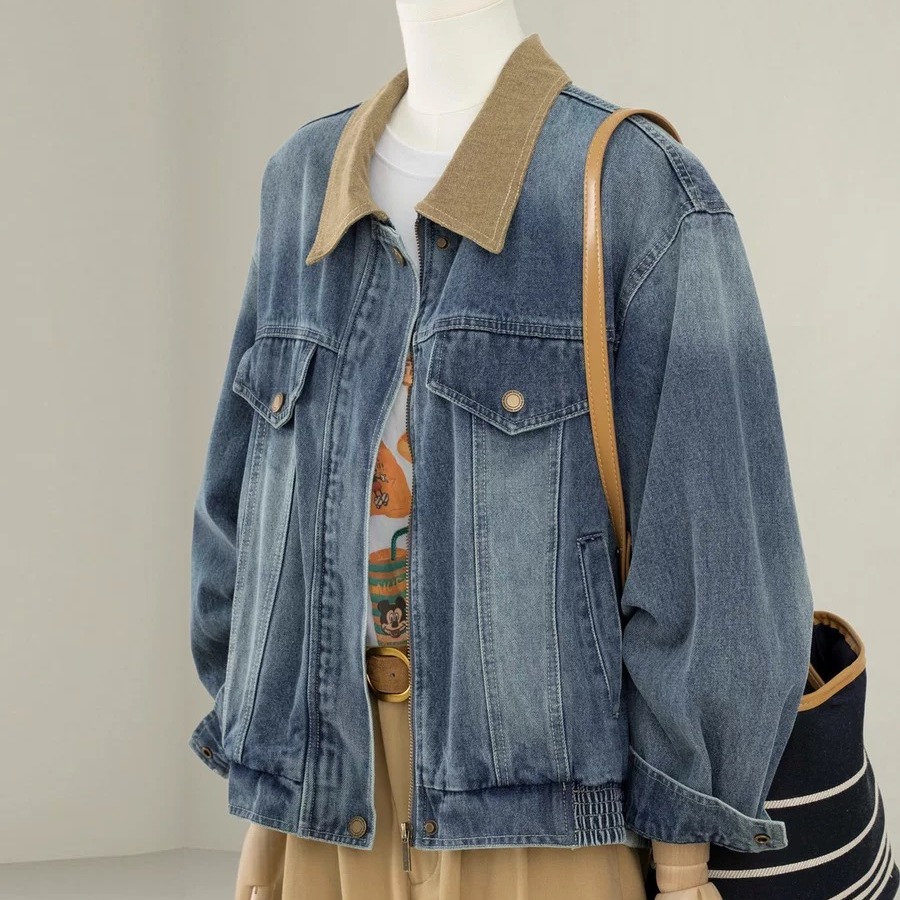 자이언트 잘 생긴 이른 봄 전체 집합 감기 느슨함 센스 miu 부서 착용 가져 가라. 파란색 데님 야구 유니폼 와이드 레그 팬츠 세트