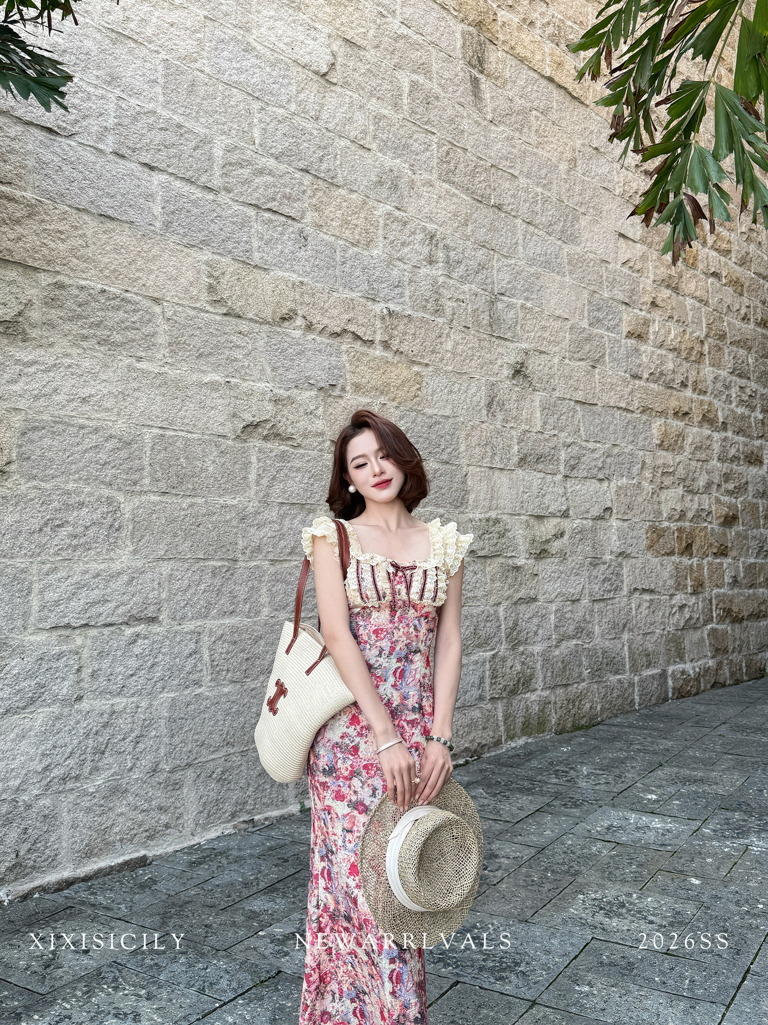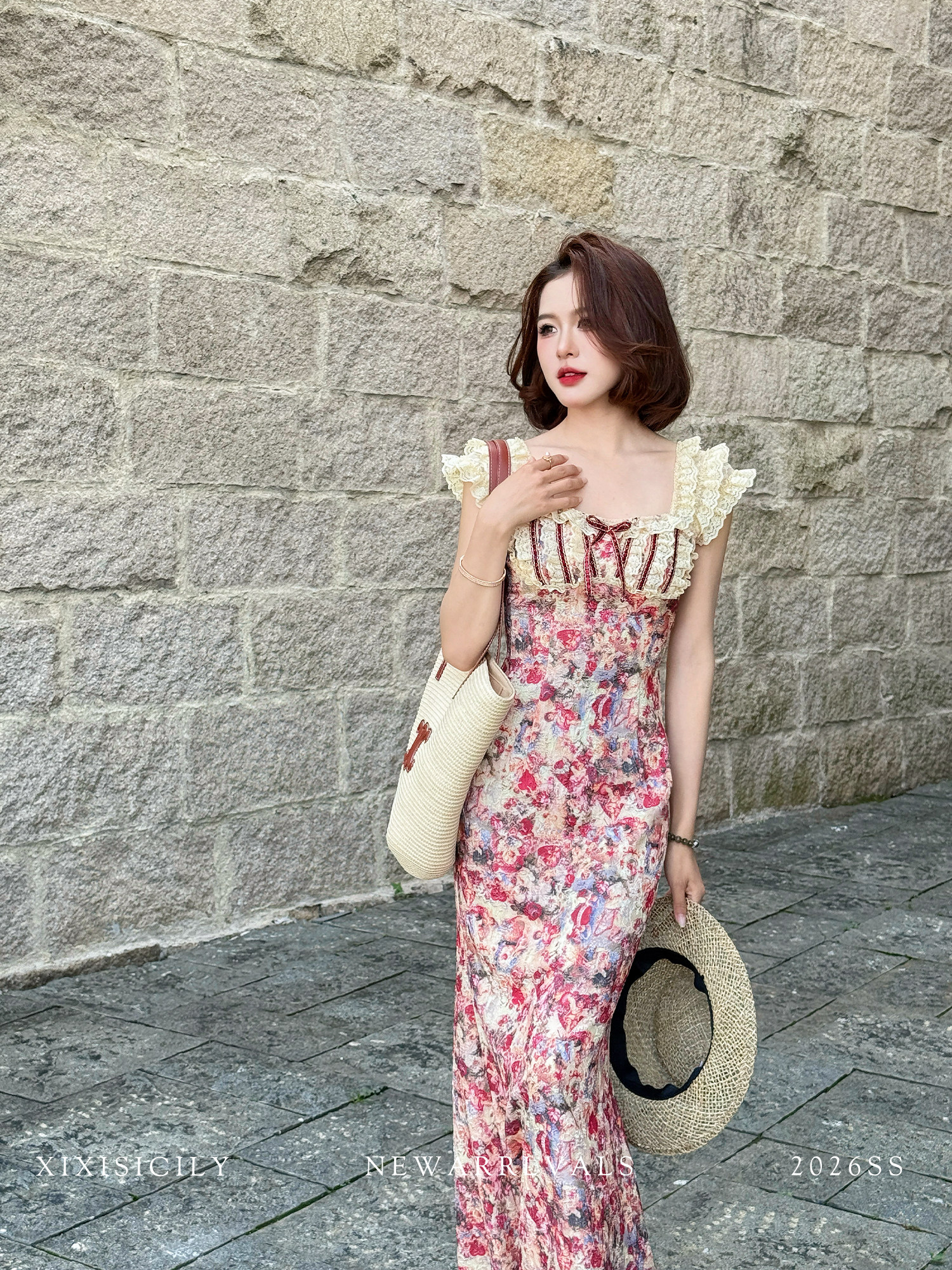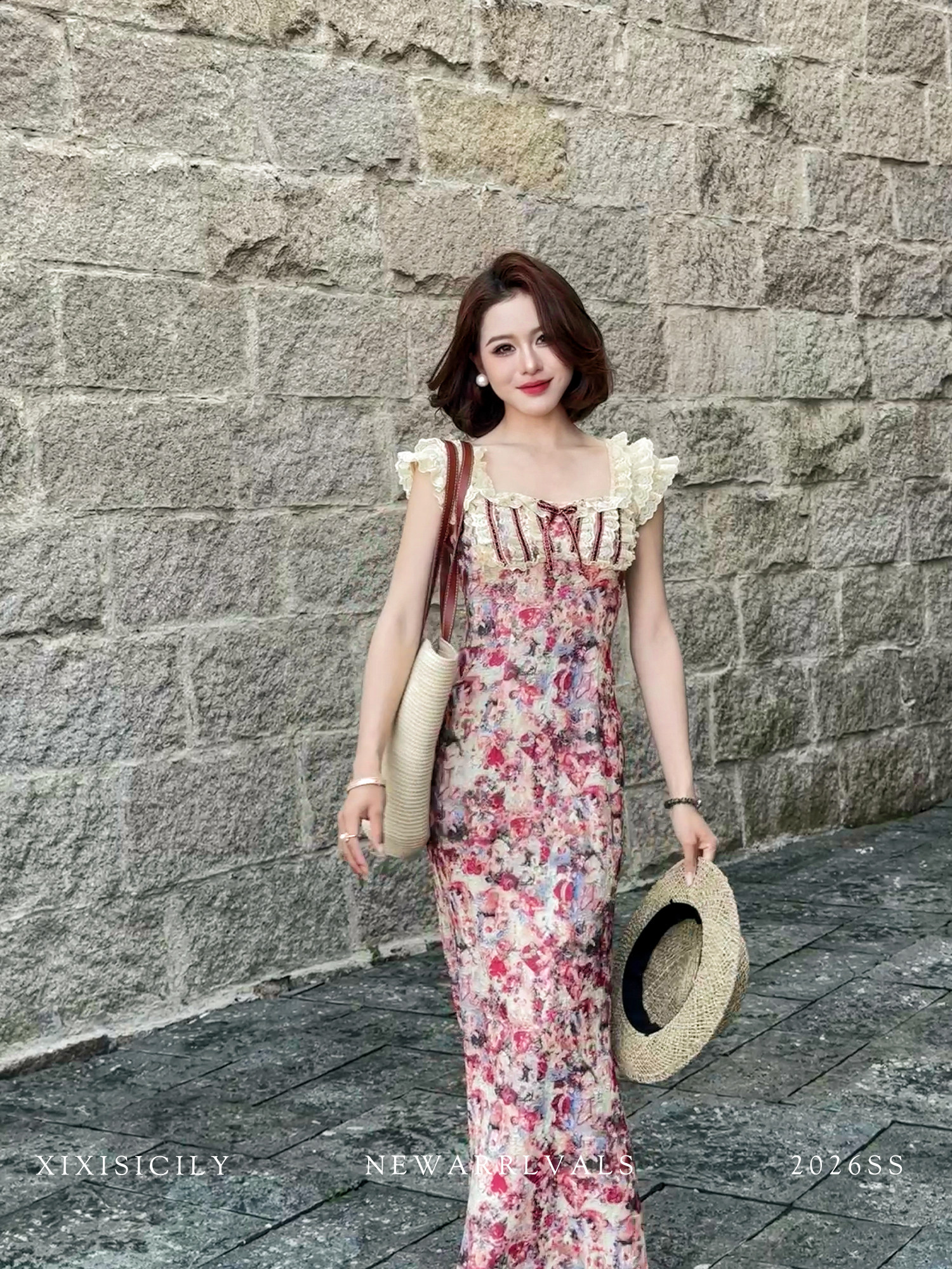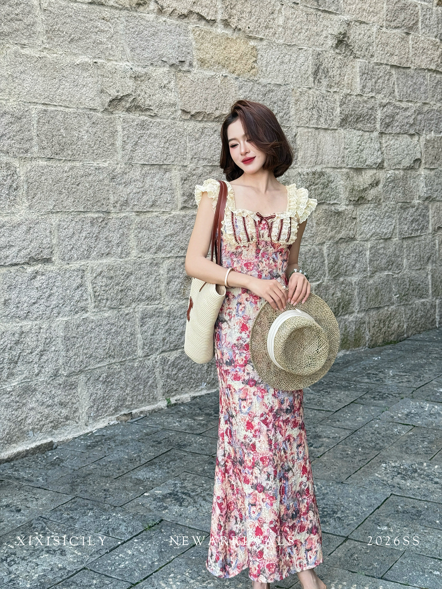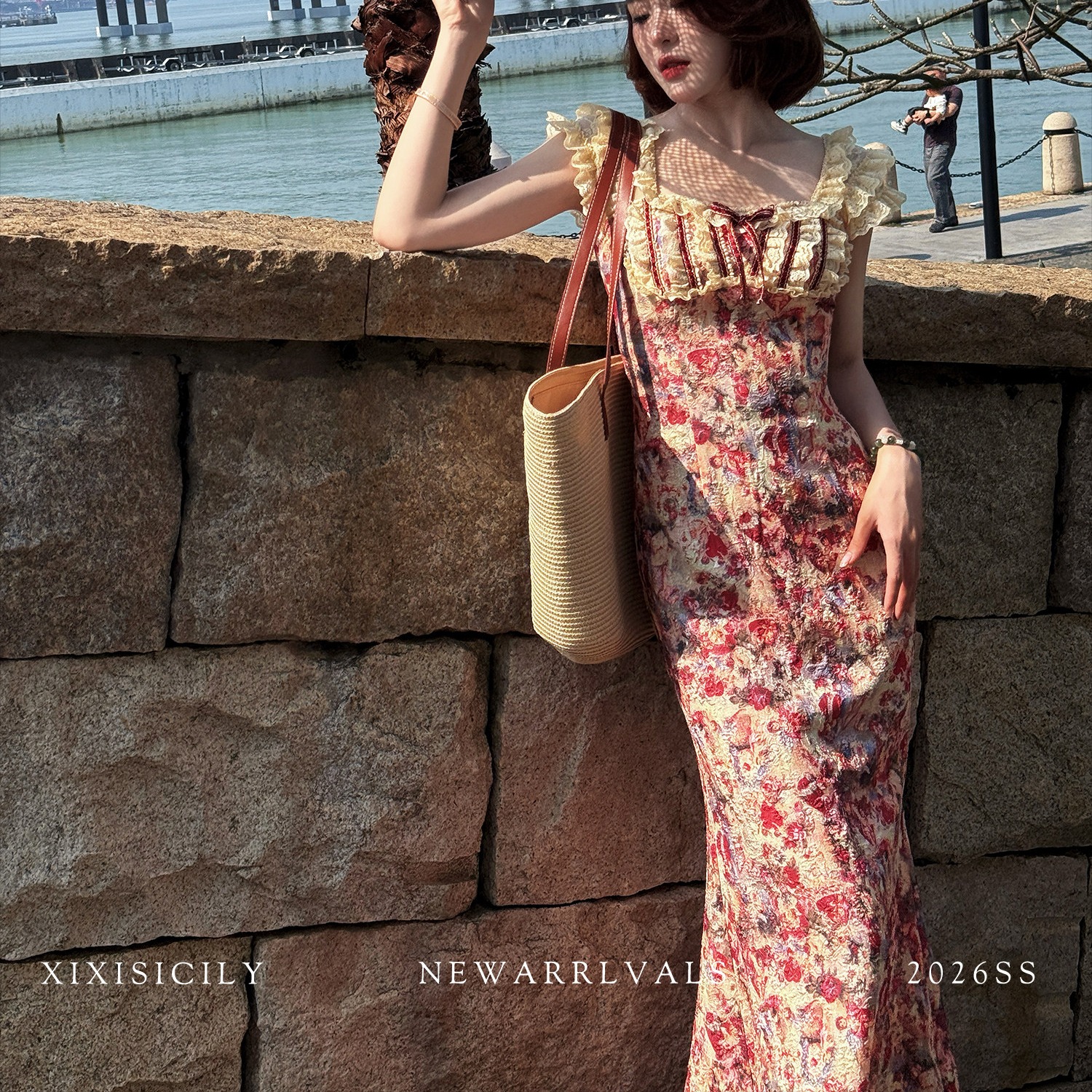 필드 크 사이 웨이 스타 같은 단락 2026 프랑스식 레트로 장미 여성 드레스 품격 슬림해 보이는 민소매 조끼 롱 스커트 여름